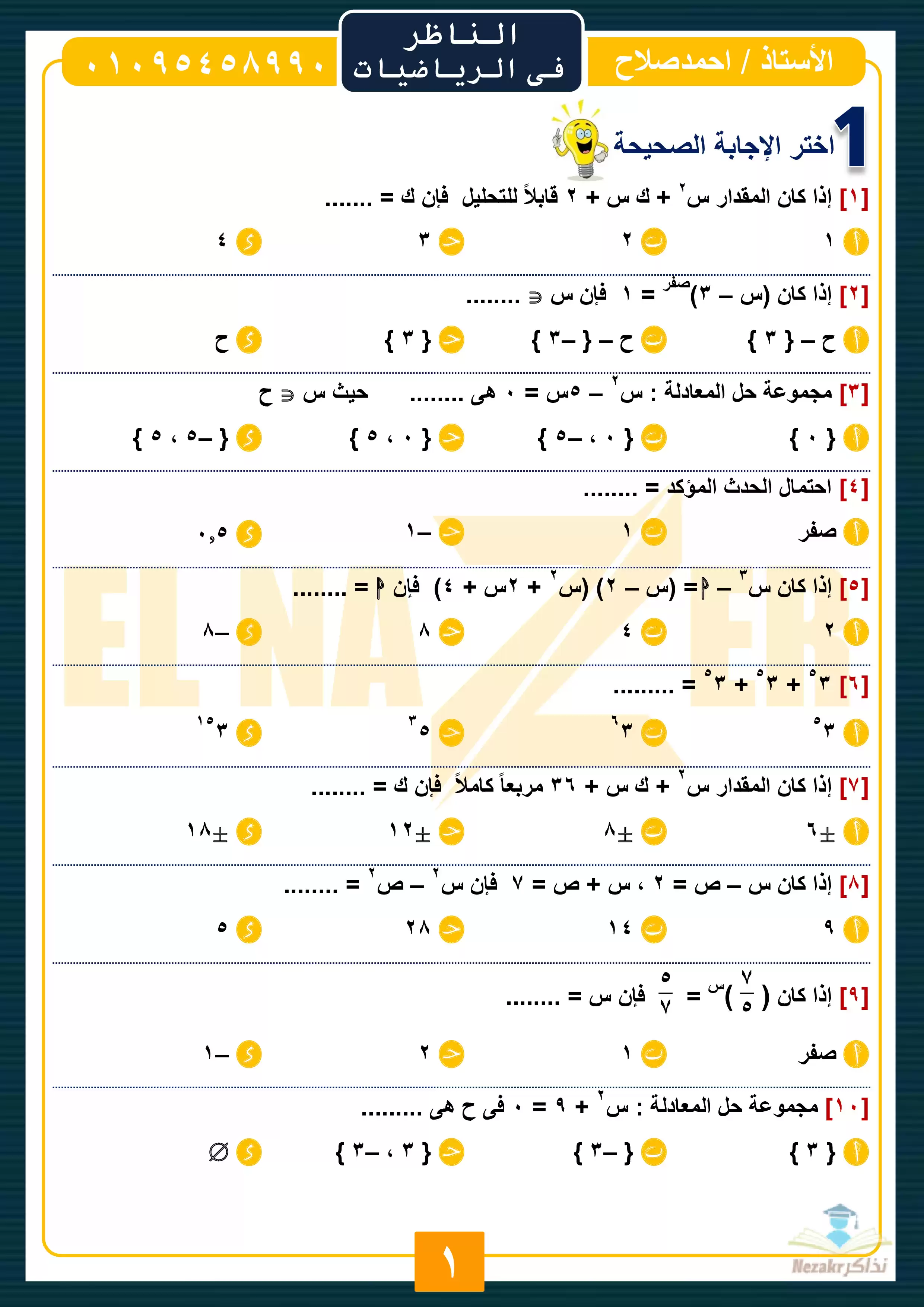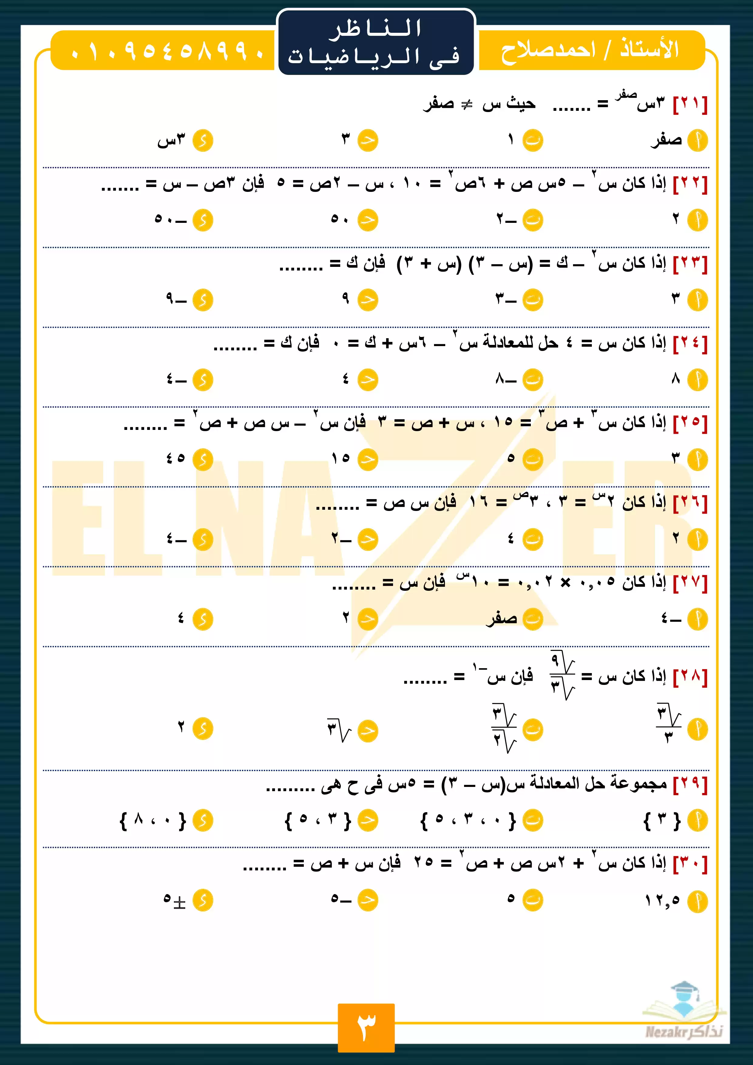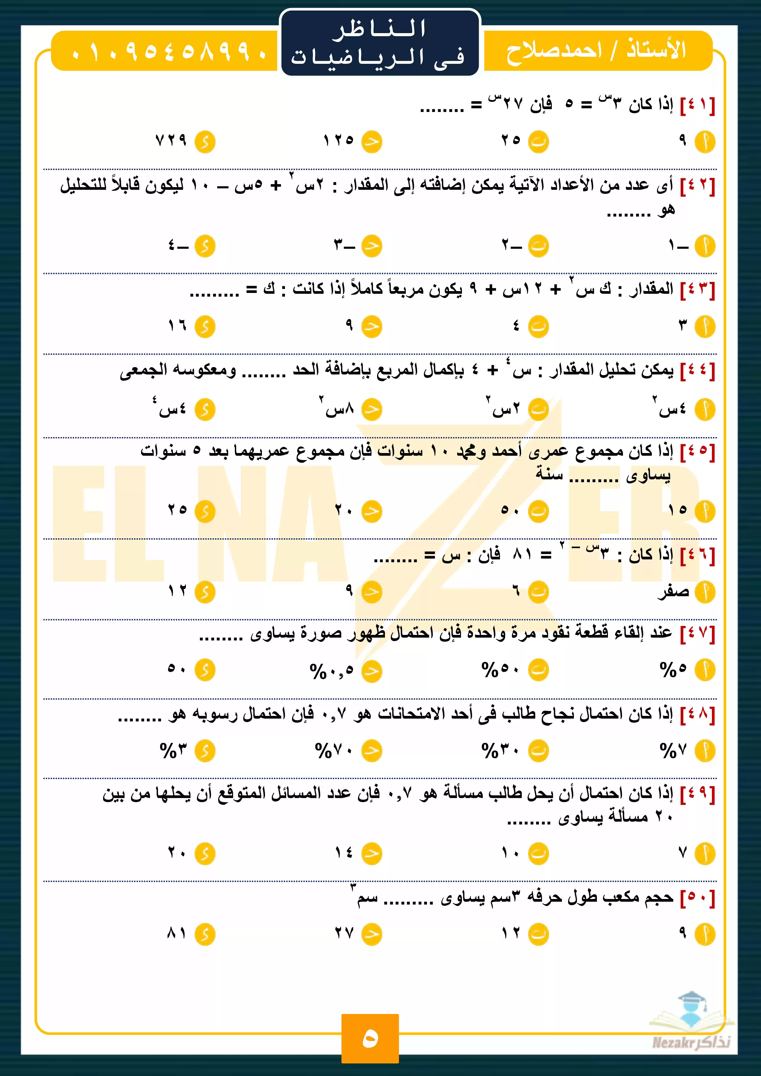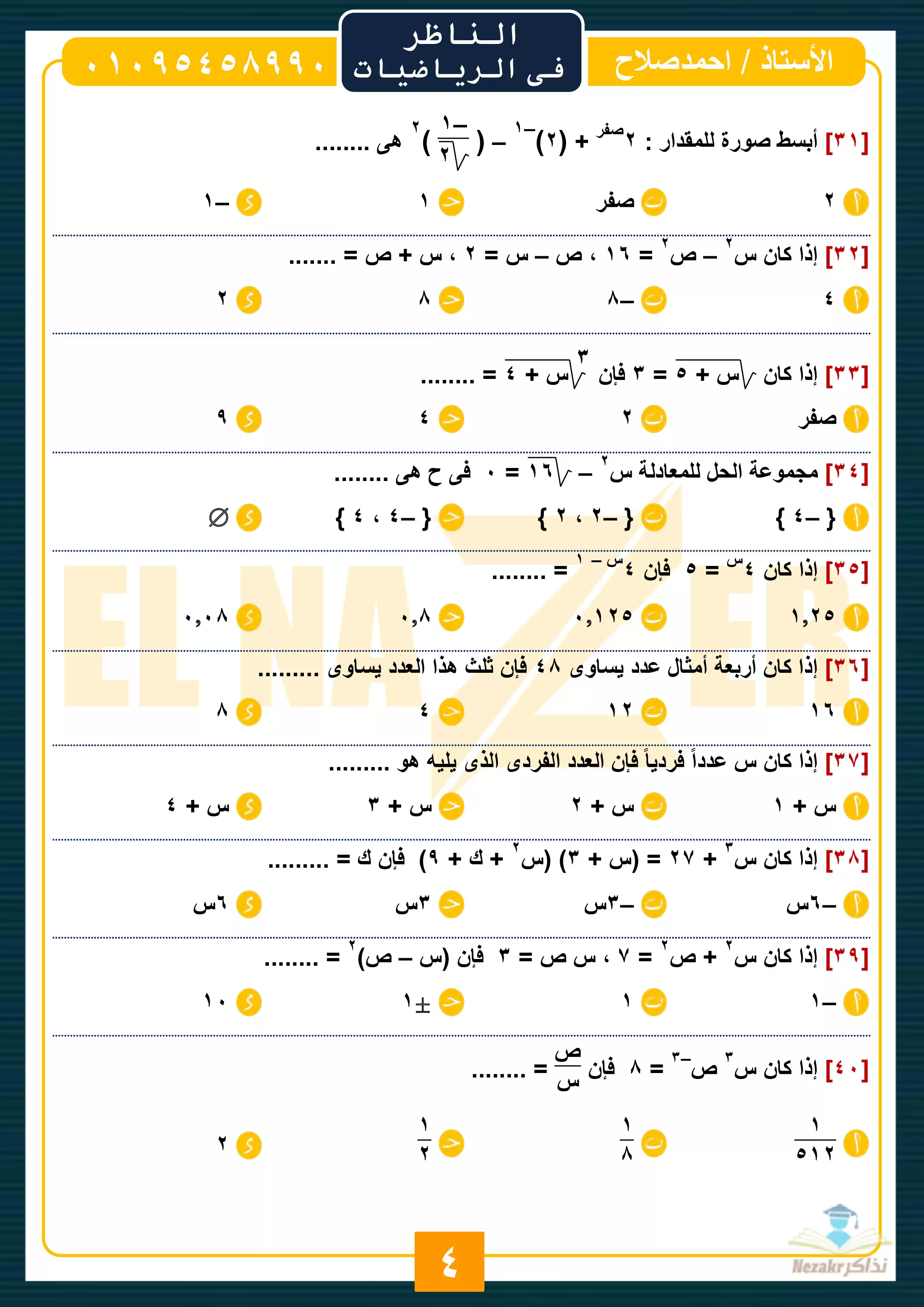 نقدم لكم المزيد من المحتوى من إعداد أحمد صلاح (سلسلة الناظر في الرياضيات) ومقدم إلى الصف الثاني الإعدادي للإطلاع عليه أو تحميله.