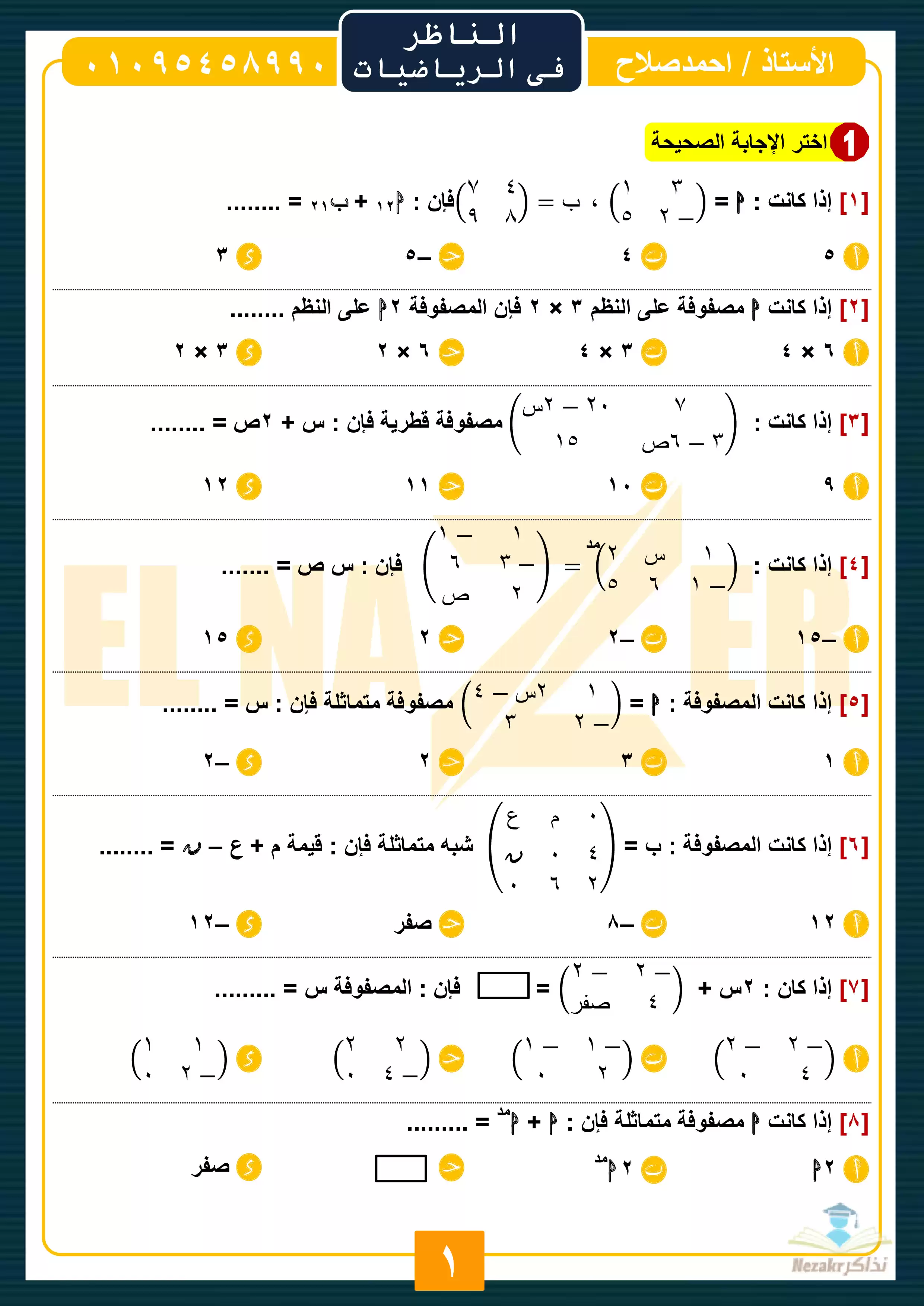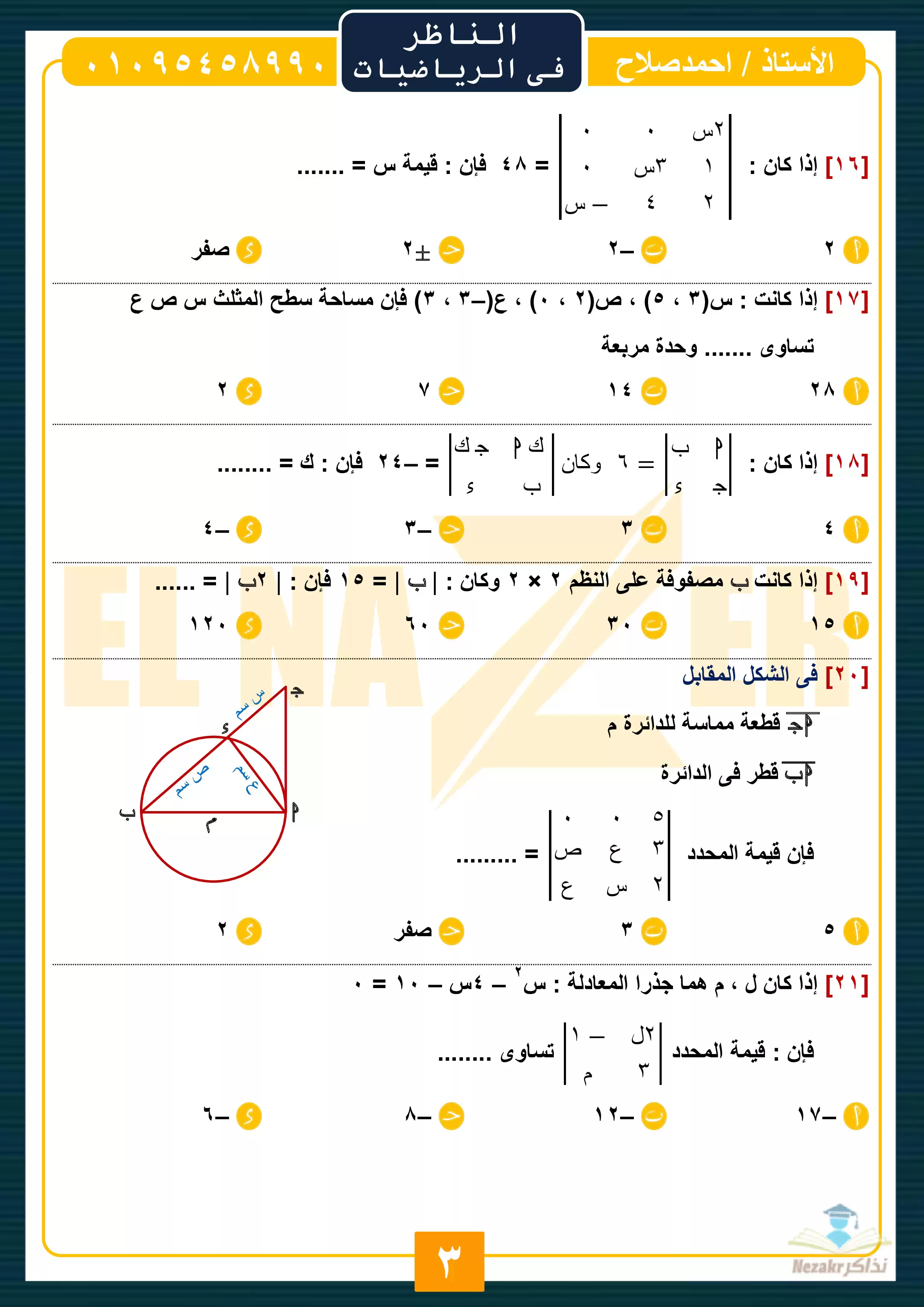 | بيانات الملف: (المراجعة النهائية في الرياضيات للصف الأول الثانوي الترم الثاني (سلسلة الناظر) - Nezakr) |