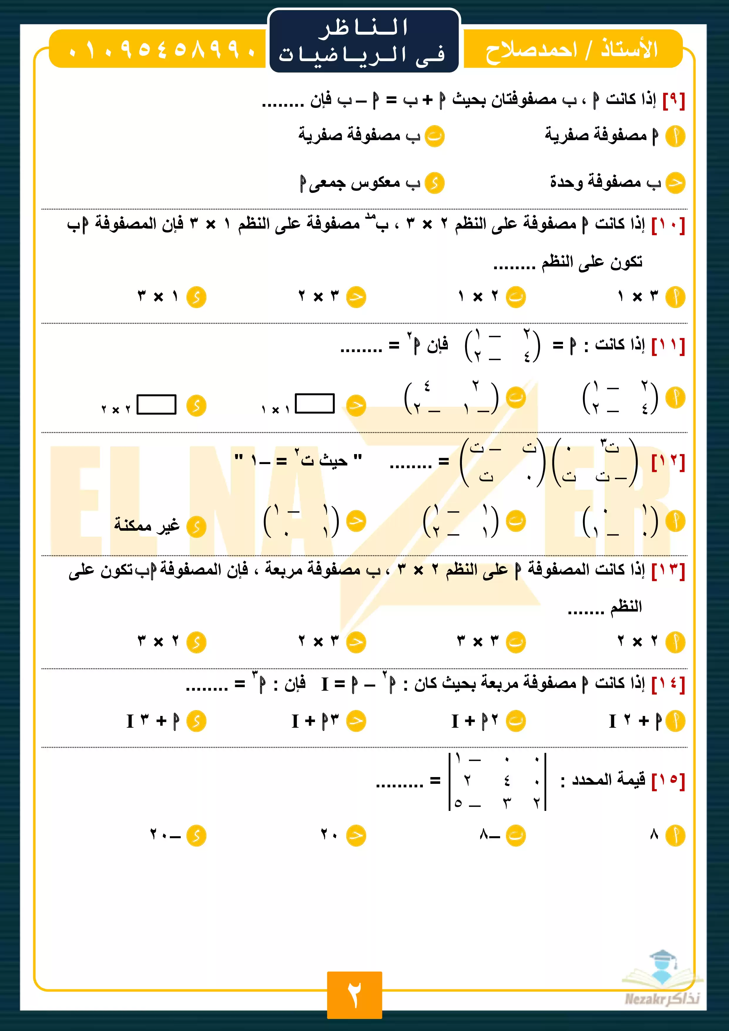 صفحة 2 من 28 صفحة من ملف: المراجعة النهائية في الرياضيات للصف الأول الثانوي الترم الثاني (سلسلة الناظر) - Nezakr