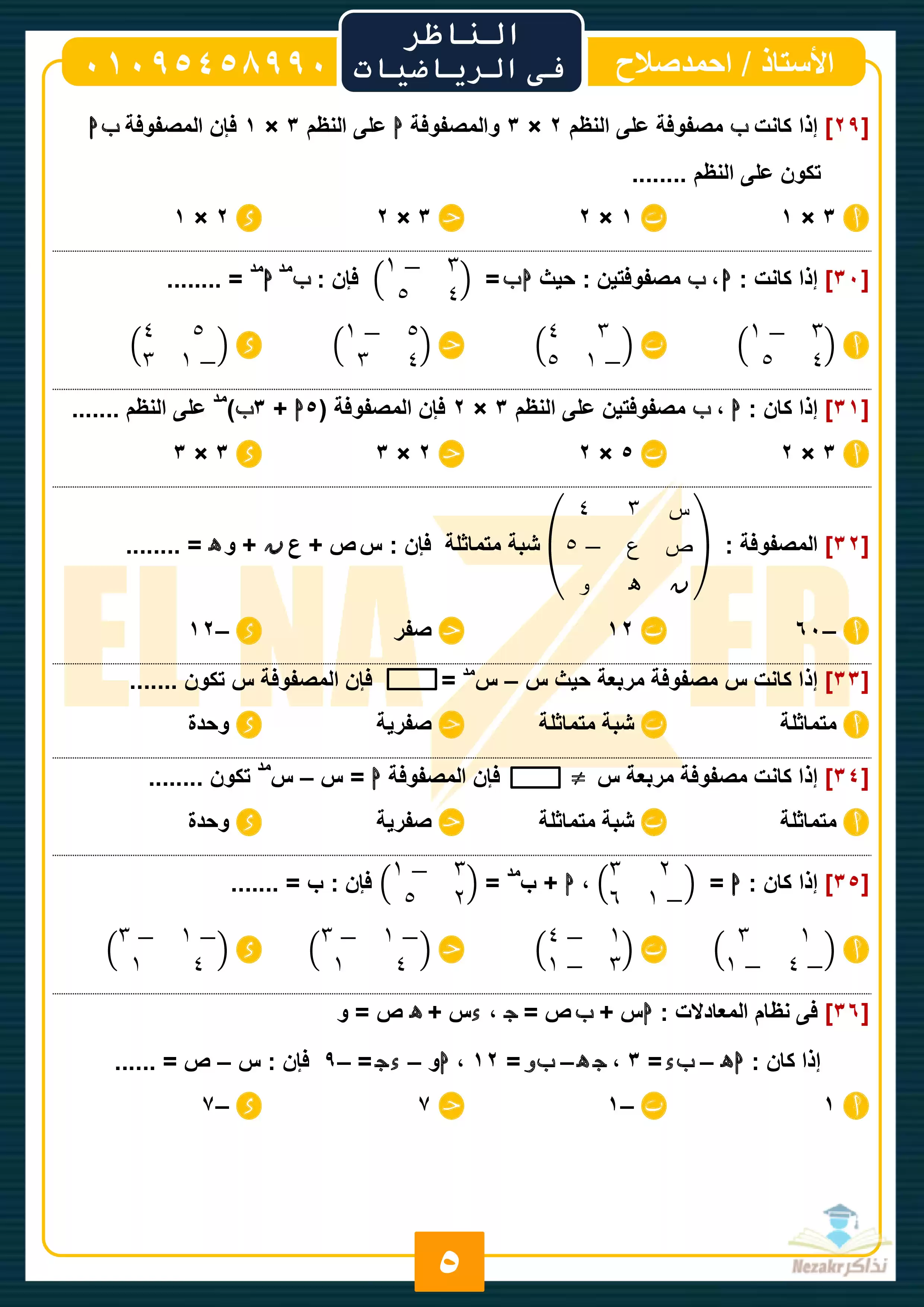 صفحة 5 من 28 صفحة من ملف: المراجعة النهائية في الرياضيات للصف الأول الثانوي الترم الثاني (سلسلة الناظر) - Nezakr