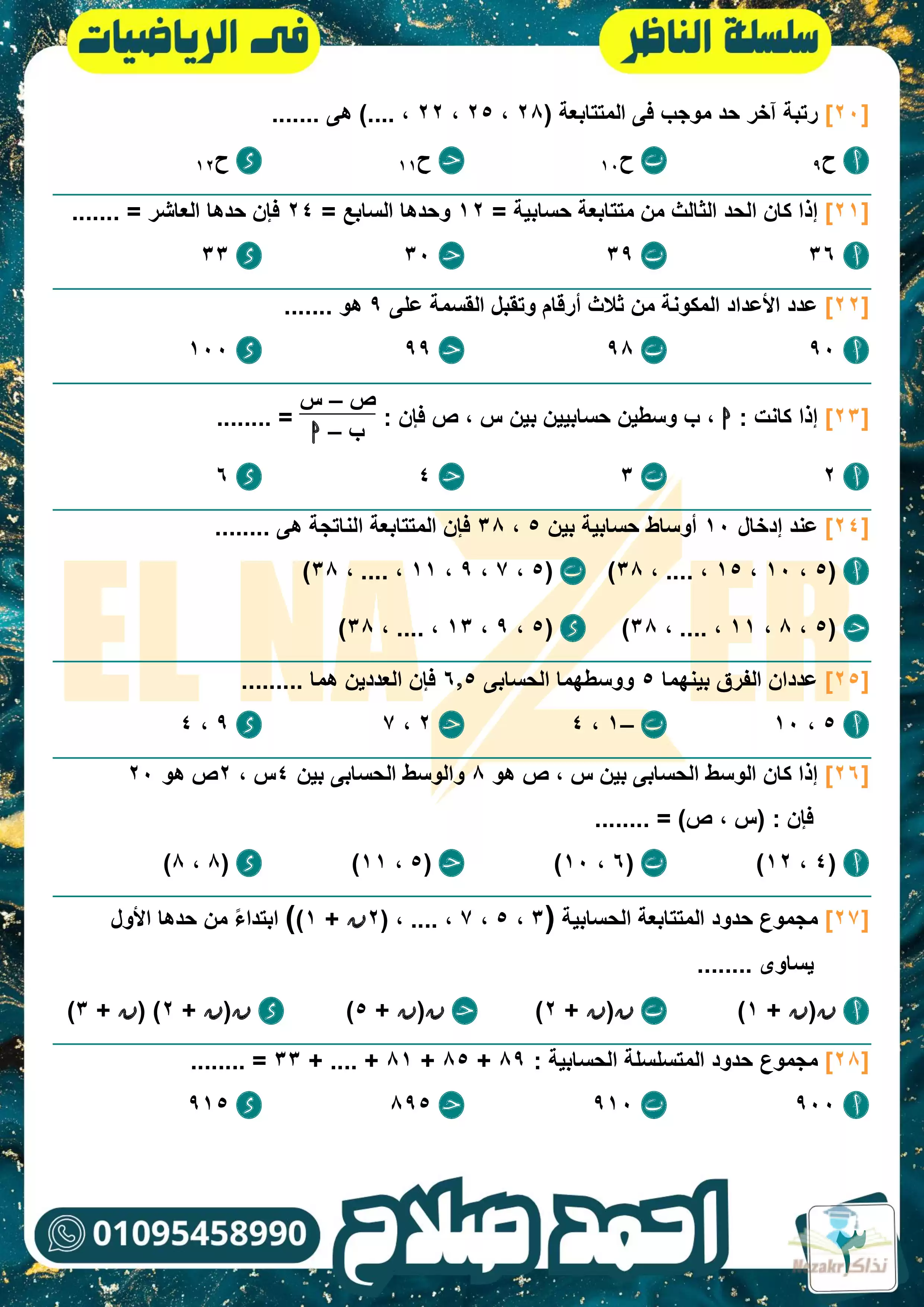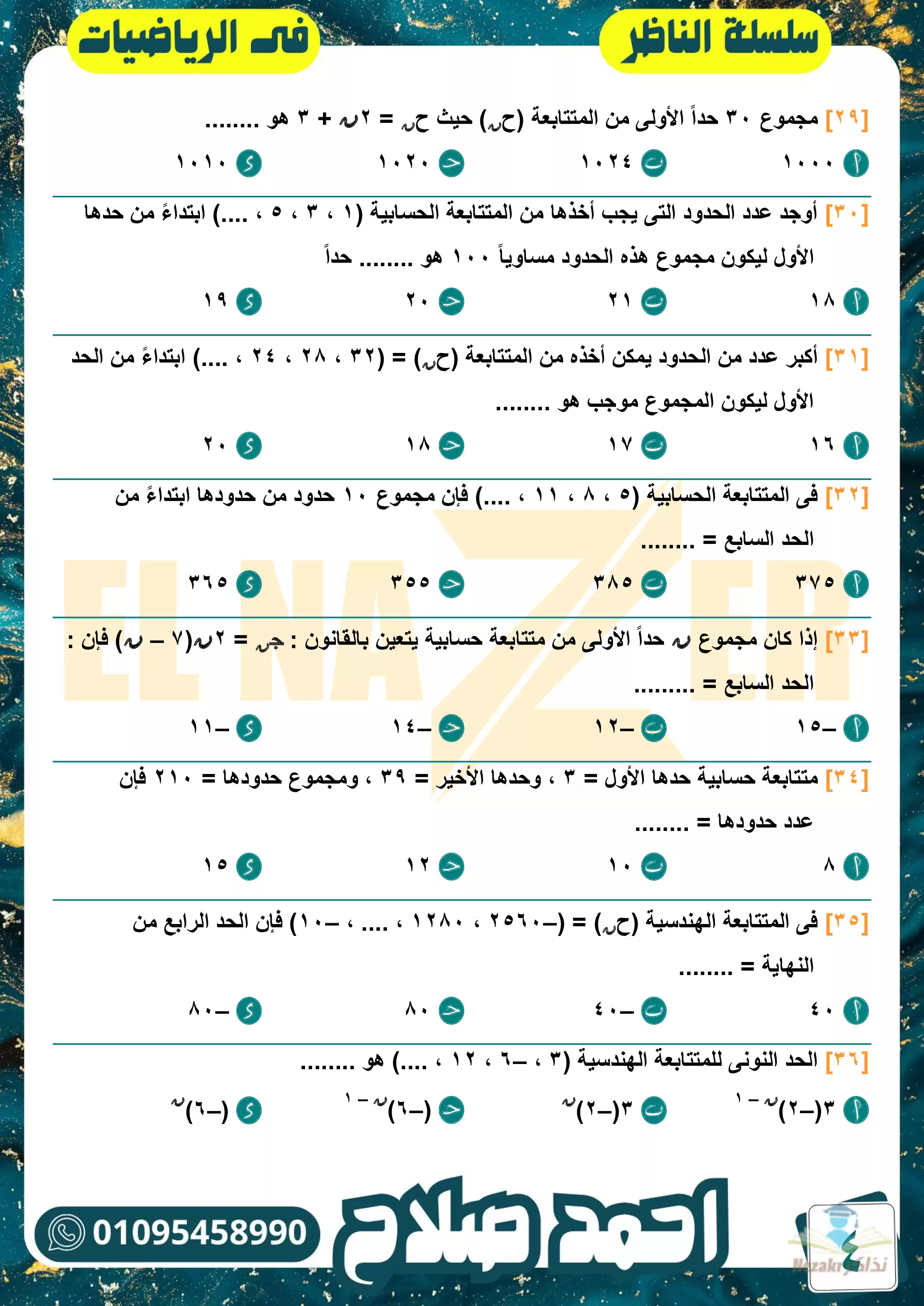 نقدم لكم المزيد من المحتوى من إعداد أحمد صلاح (سلسلة الناظر في الرياضيات) ومقدم إلى الصف الثاني الثانوي للإطلاع عليه أو تحميله.