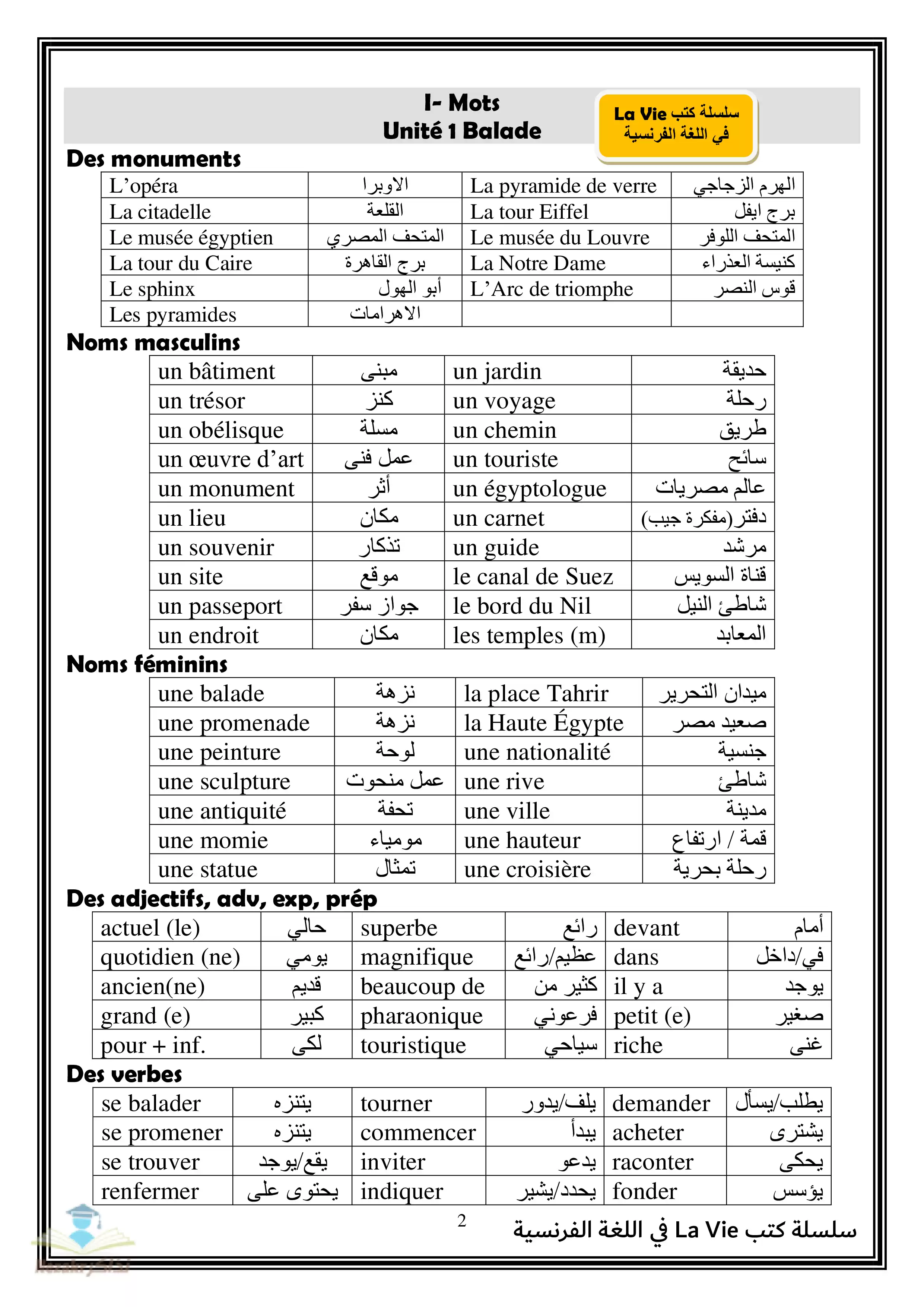 مرحباً بكم طلاب الصف الأول الثانوي، نقدم لكم من خلال هذا المقال مذكرة مراجعة ليلة الامتحان النهائية في مادة اللغة الفرنسية من كتاب La Vie، المذكرة مخصصة للطلاب الدارسين في مدارس اللغات أو المدارس الخاصة، والمذكرة تتكون من: