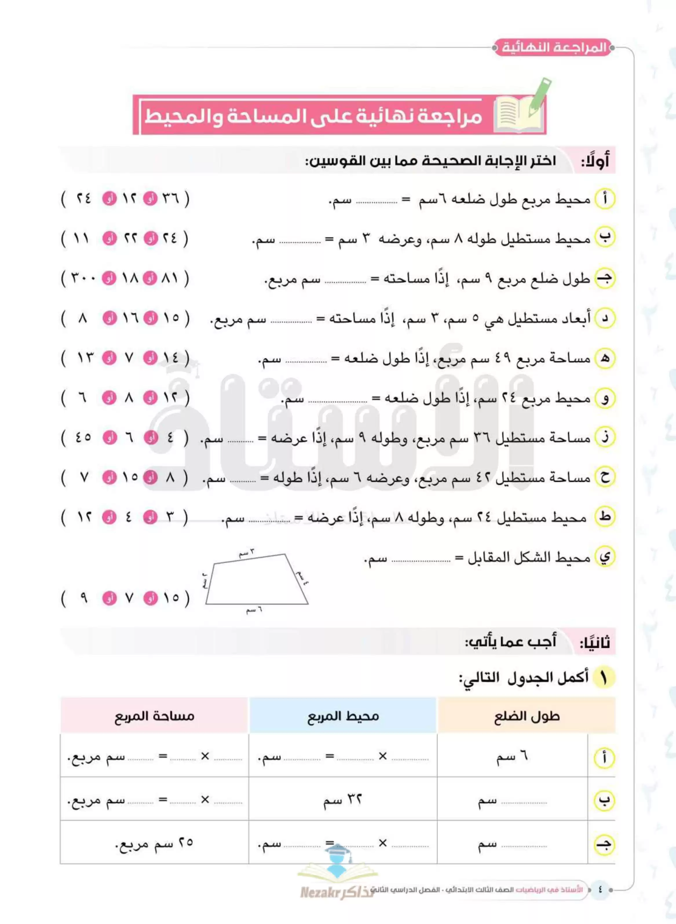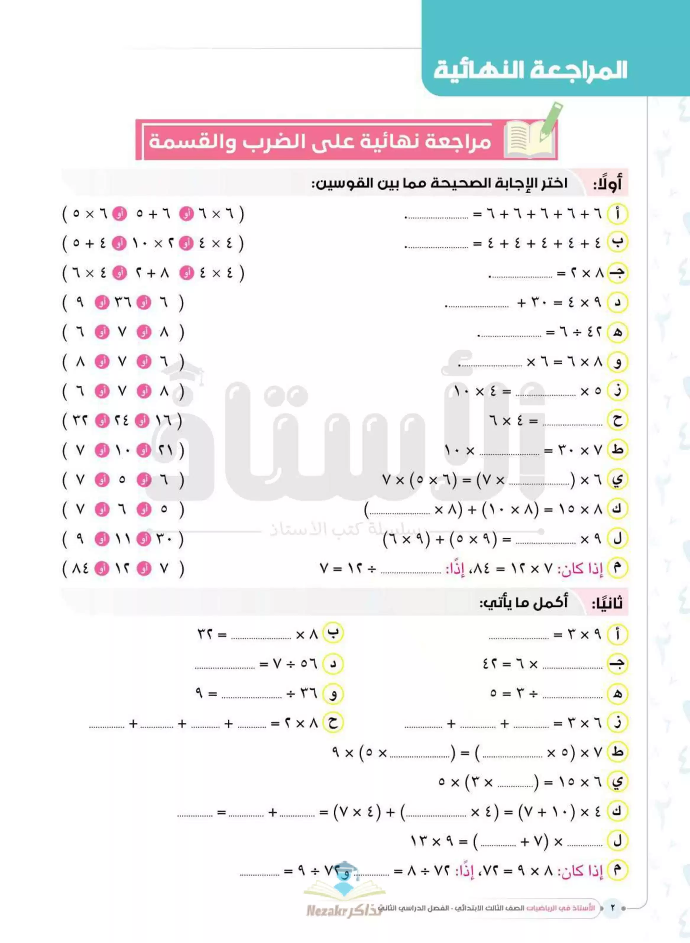 | بيانات الملف: (مراجعة الأستاذ النهائية في الرياضيات للصف الثالث الابتدائي ترم ثاني - Nezakr) | |