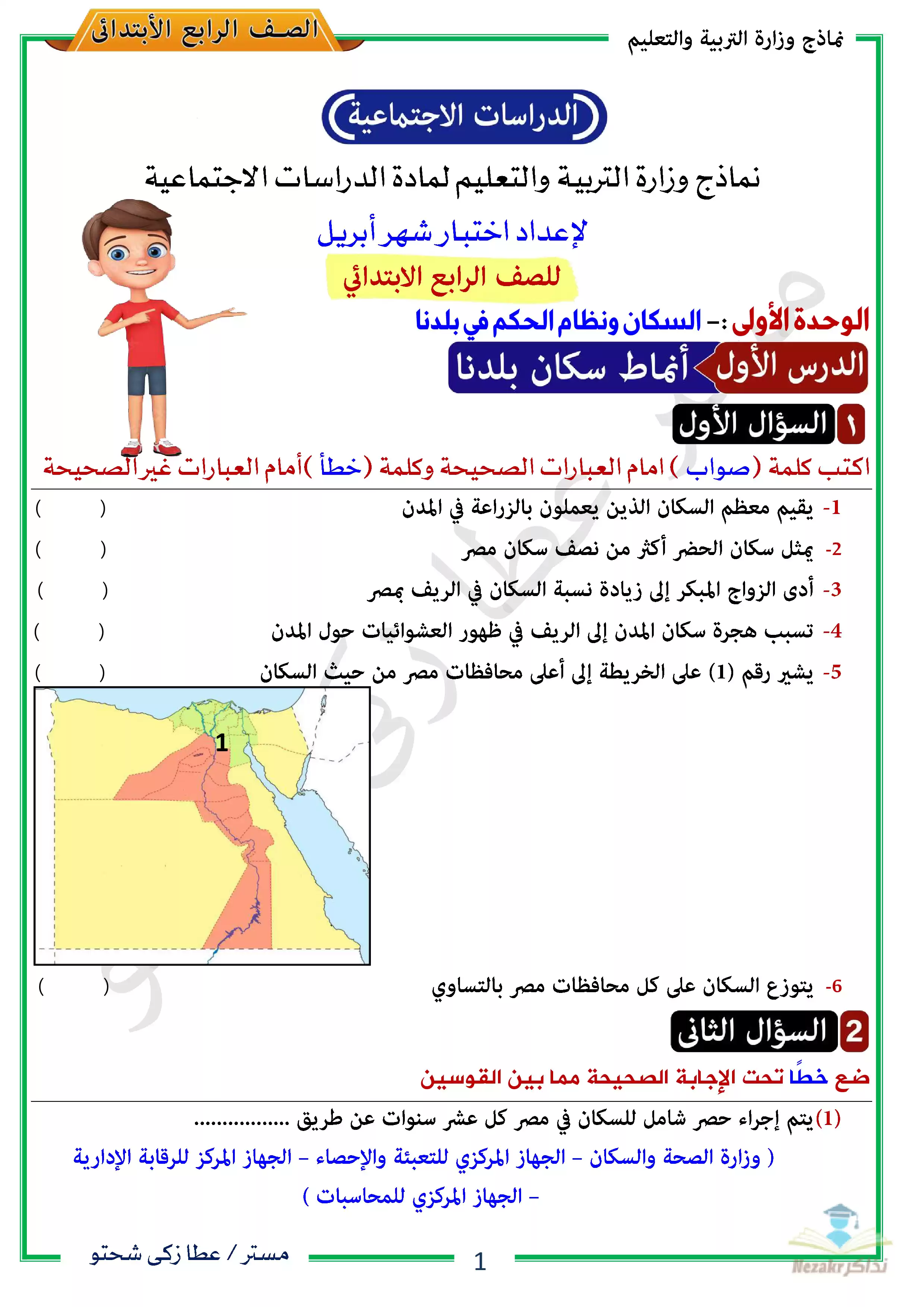 | بيانات الملف: (نماذج الوزارة لشهر ابريل في الدراسات رابعة ابتدائي ترم ثاني - Nezakr) | |