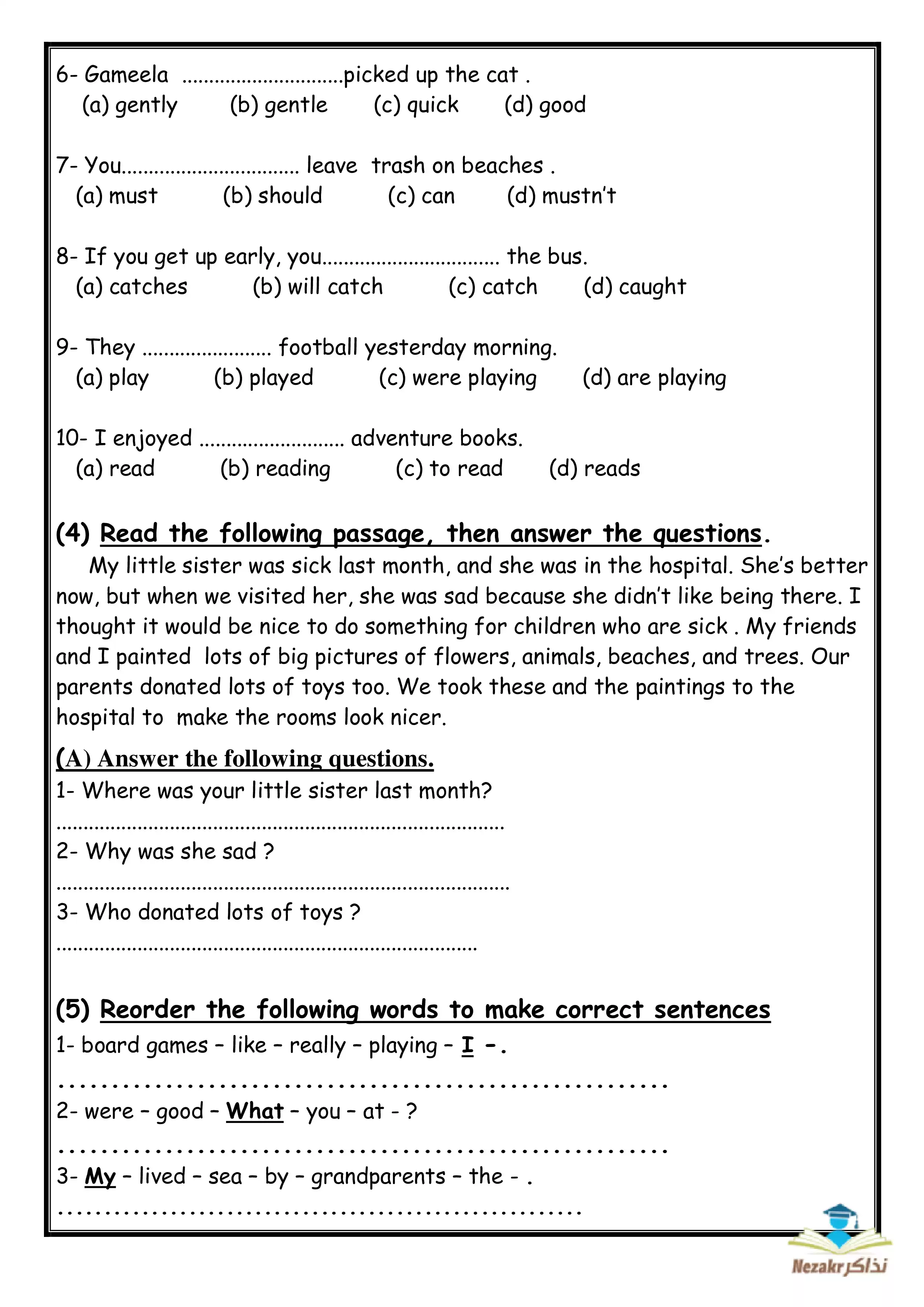 نموذج امتحان لغة انجليزية للصف السادس الابتدائي الازهري الفصل الدراسي الثاني - Nezakr |
