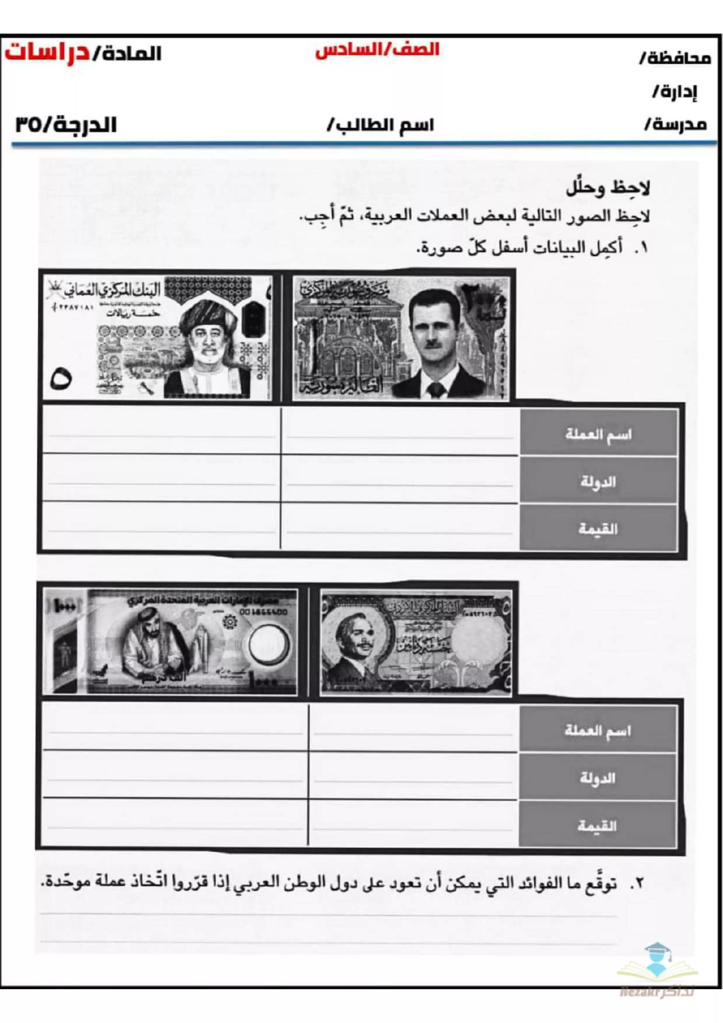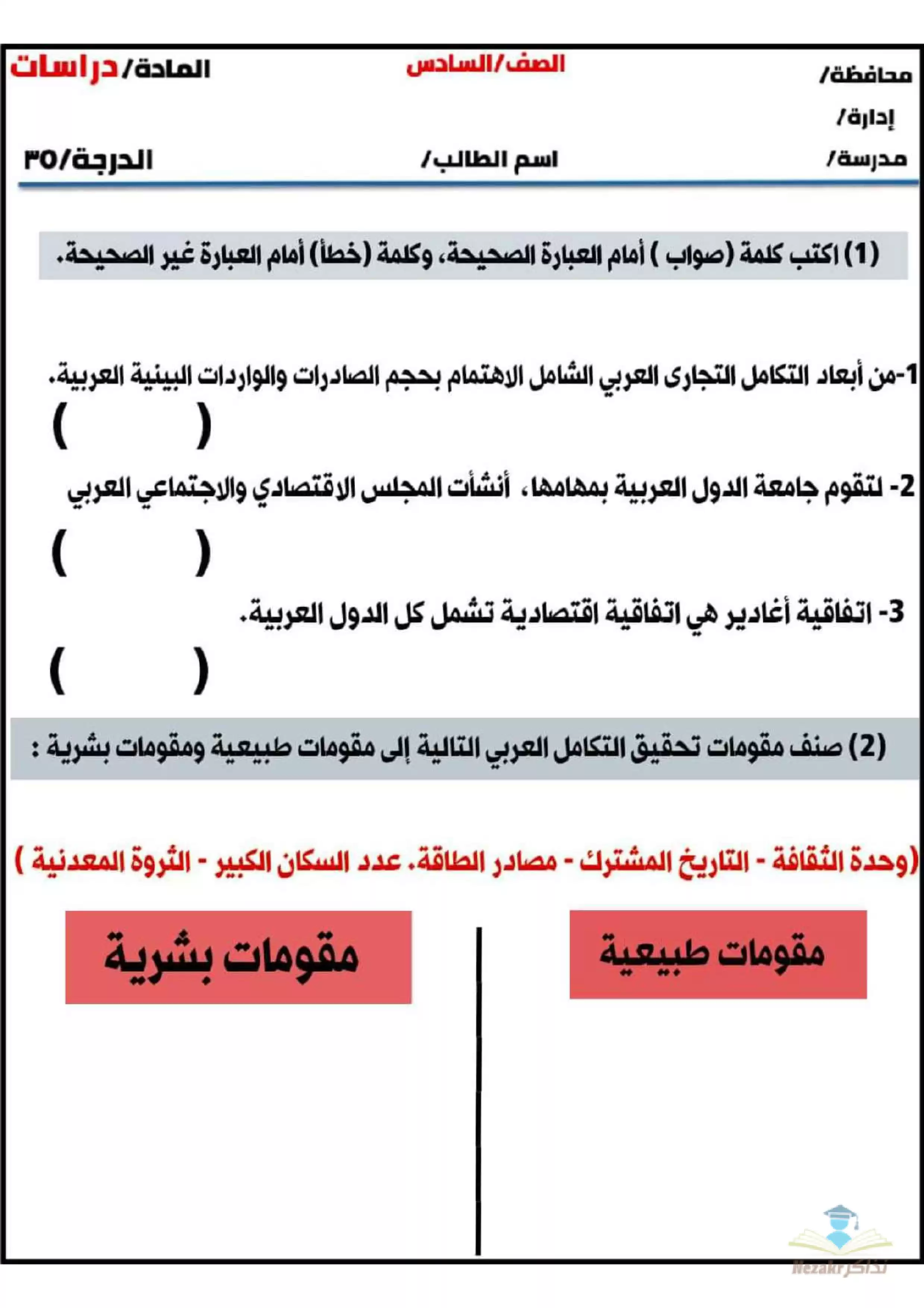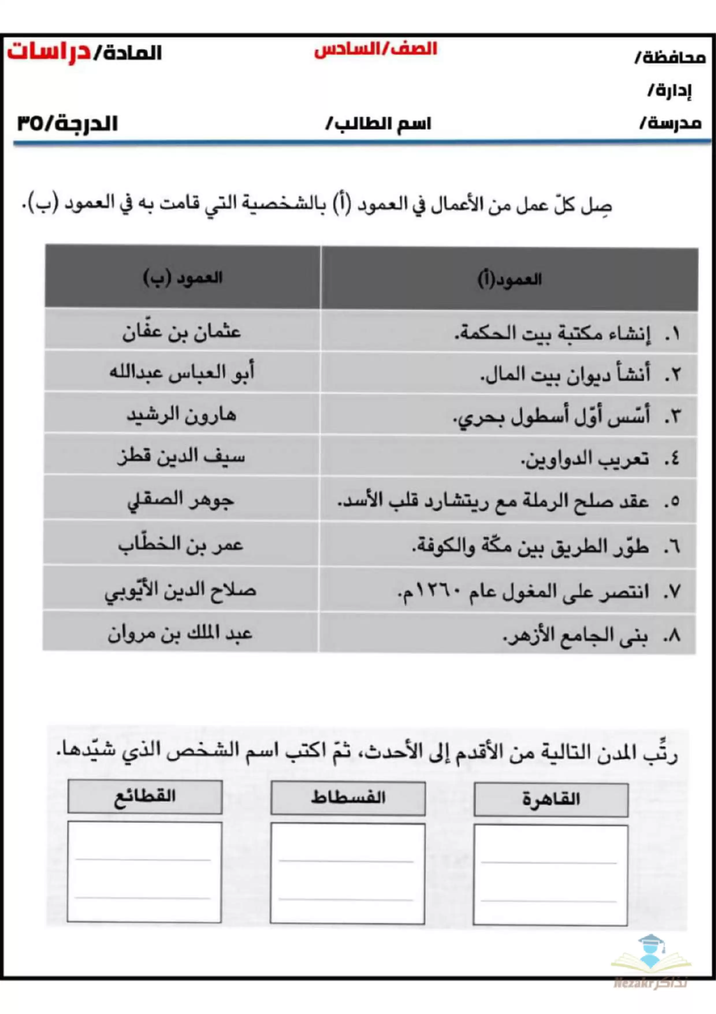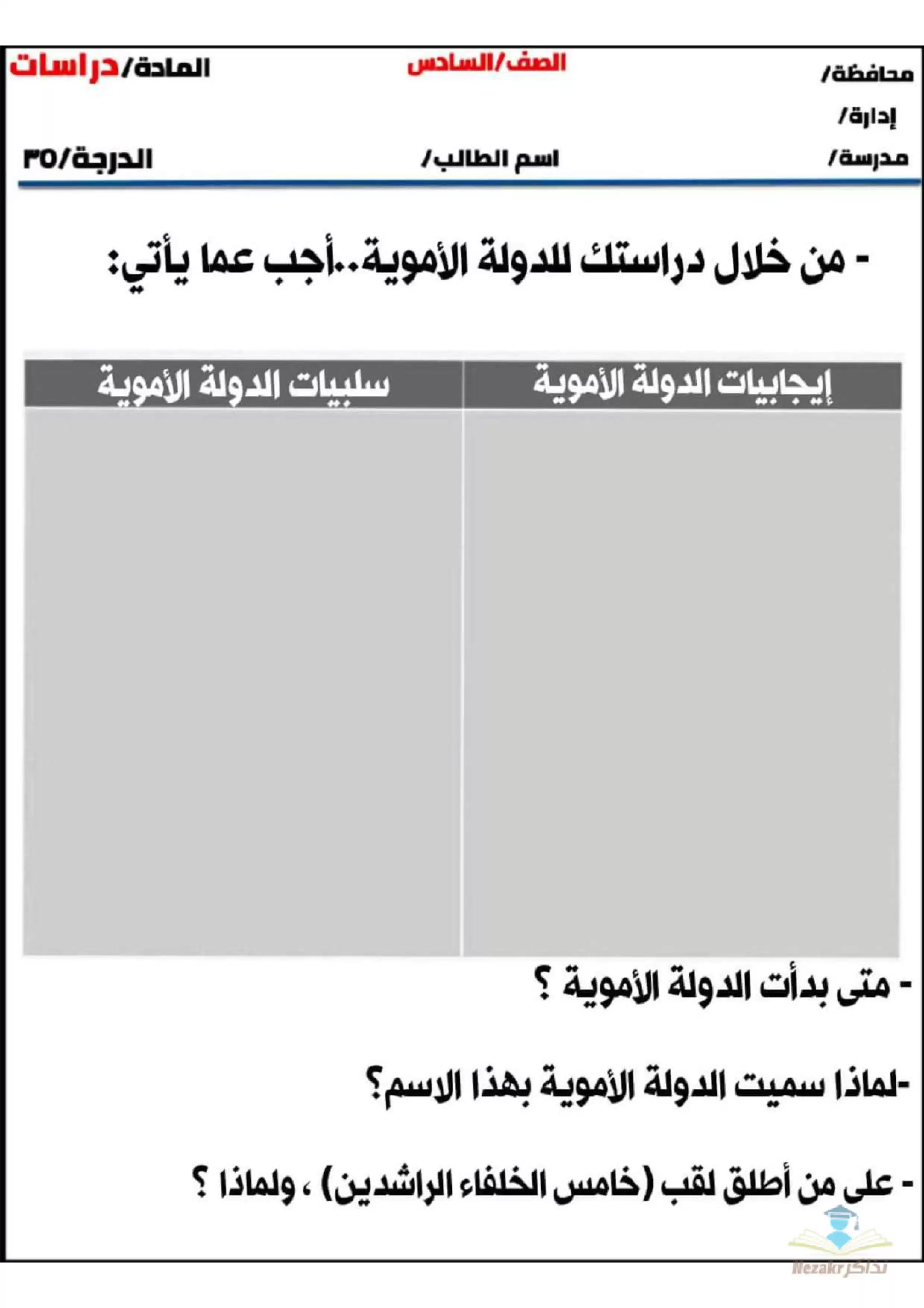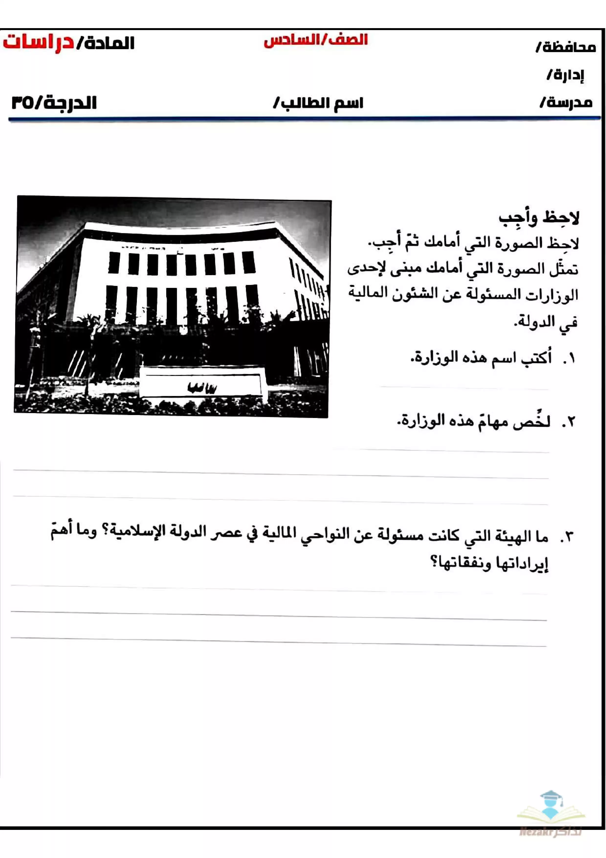 مهام ادائية مقترحة لمادة الدراسات للصف السادس الابتدائي الفصل الدراسي الثاني - Nezakr |