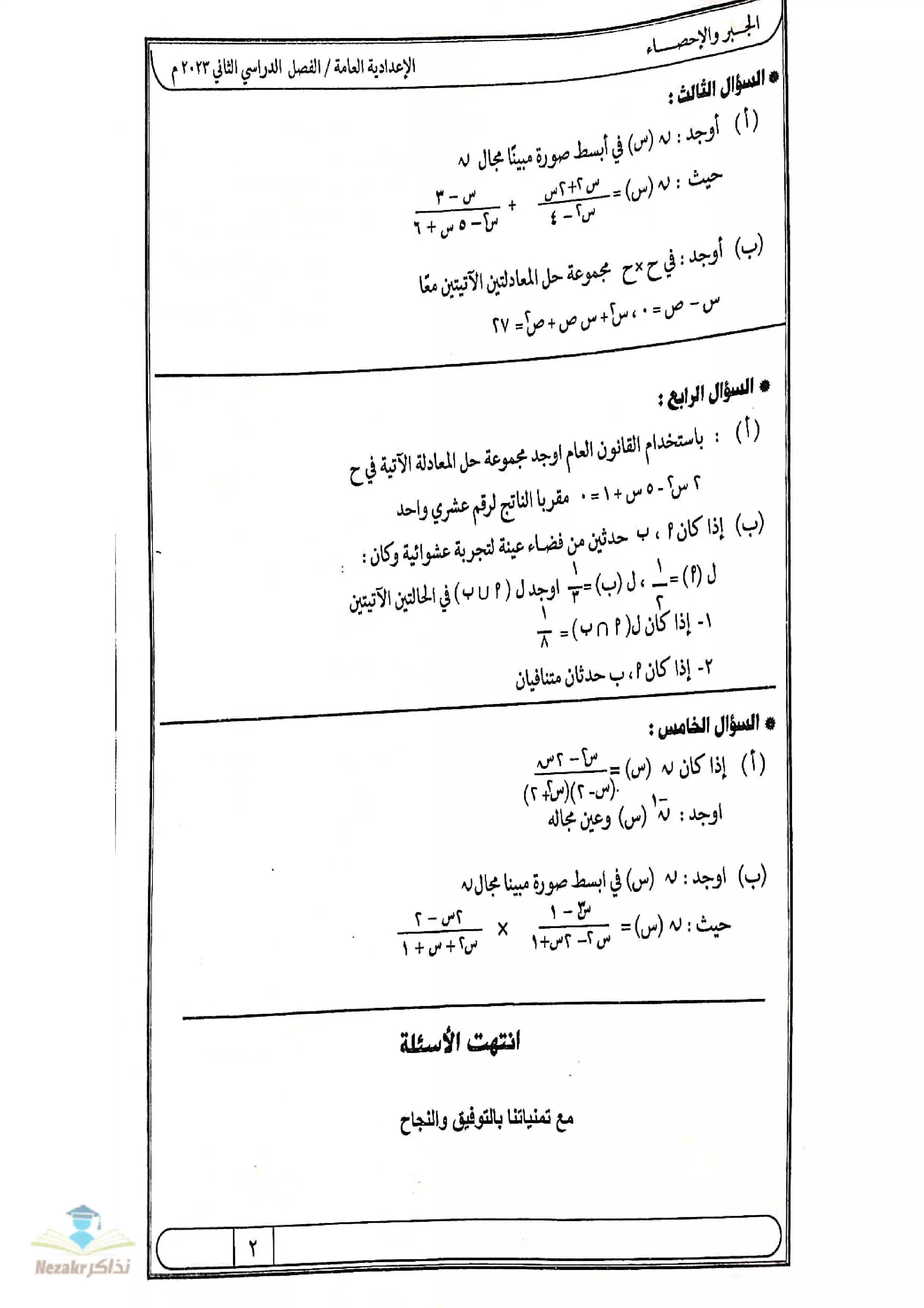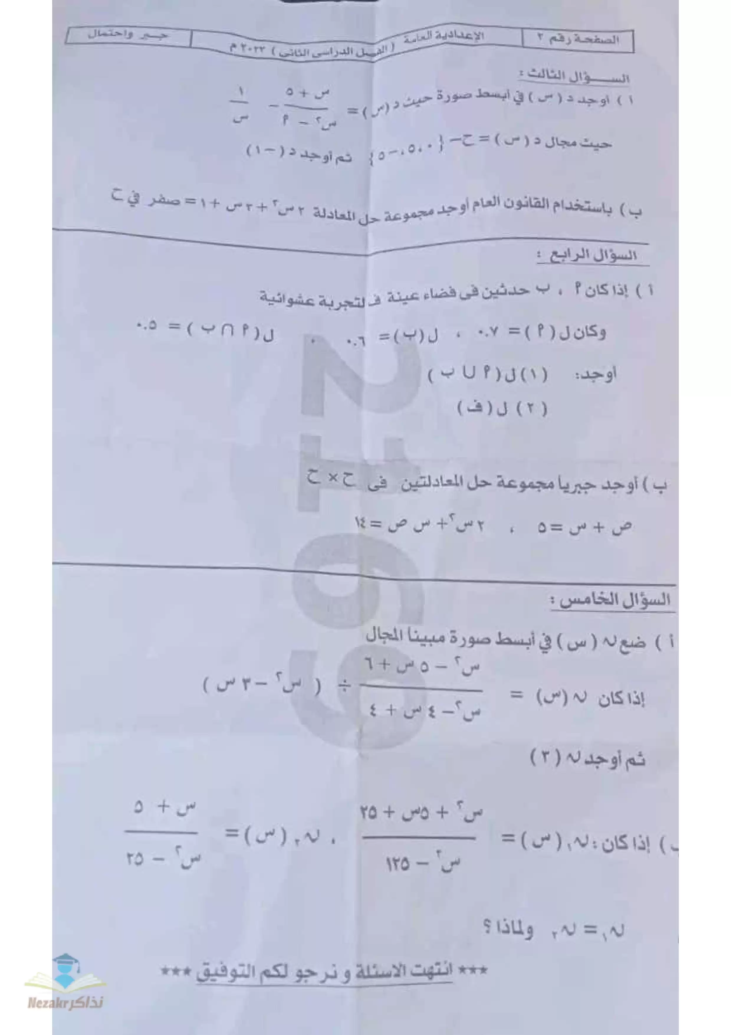 نقدم لكم المزيد من المحتوى من إعداد تجميعات موقع نذاكر ومقدم إلى الصف الثالث الإعدادي للإطلاع عليه أو تحميله.