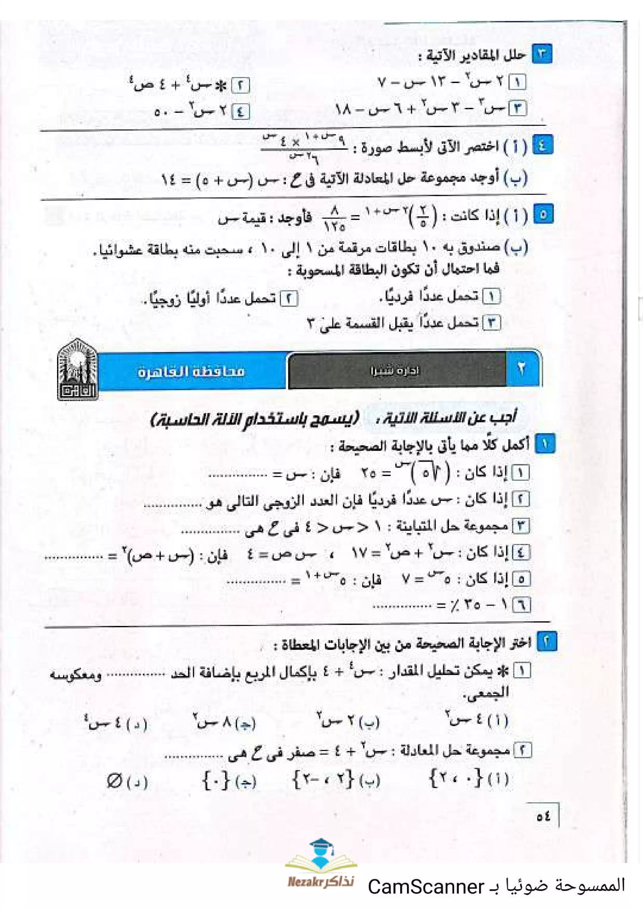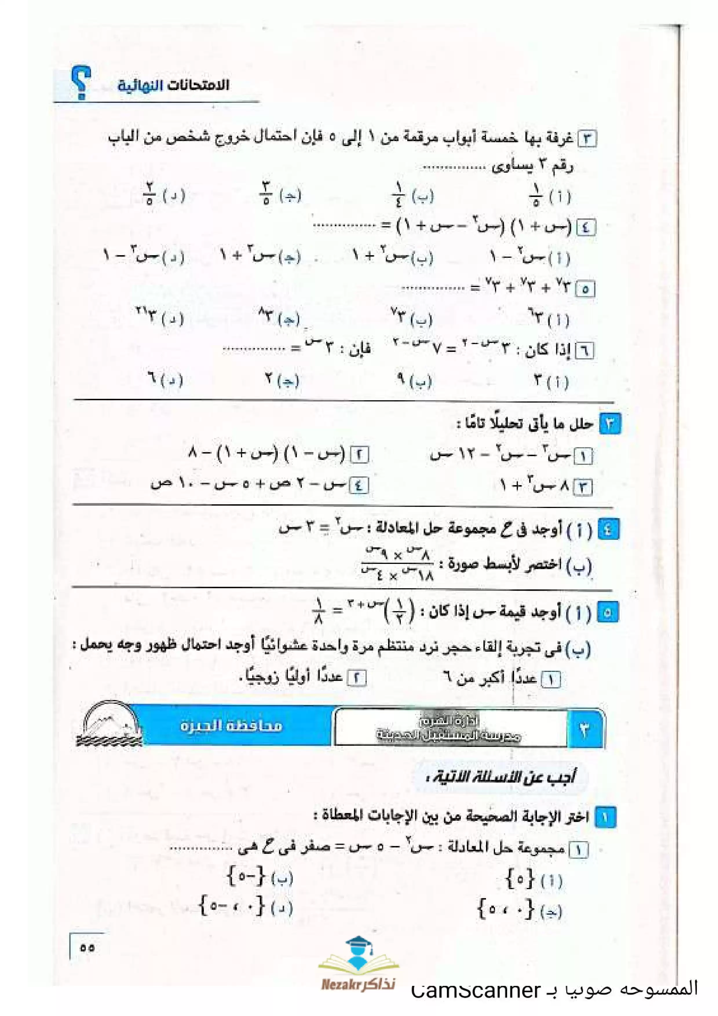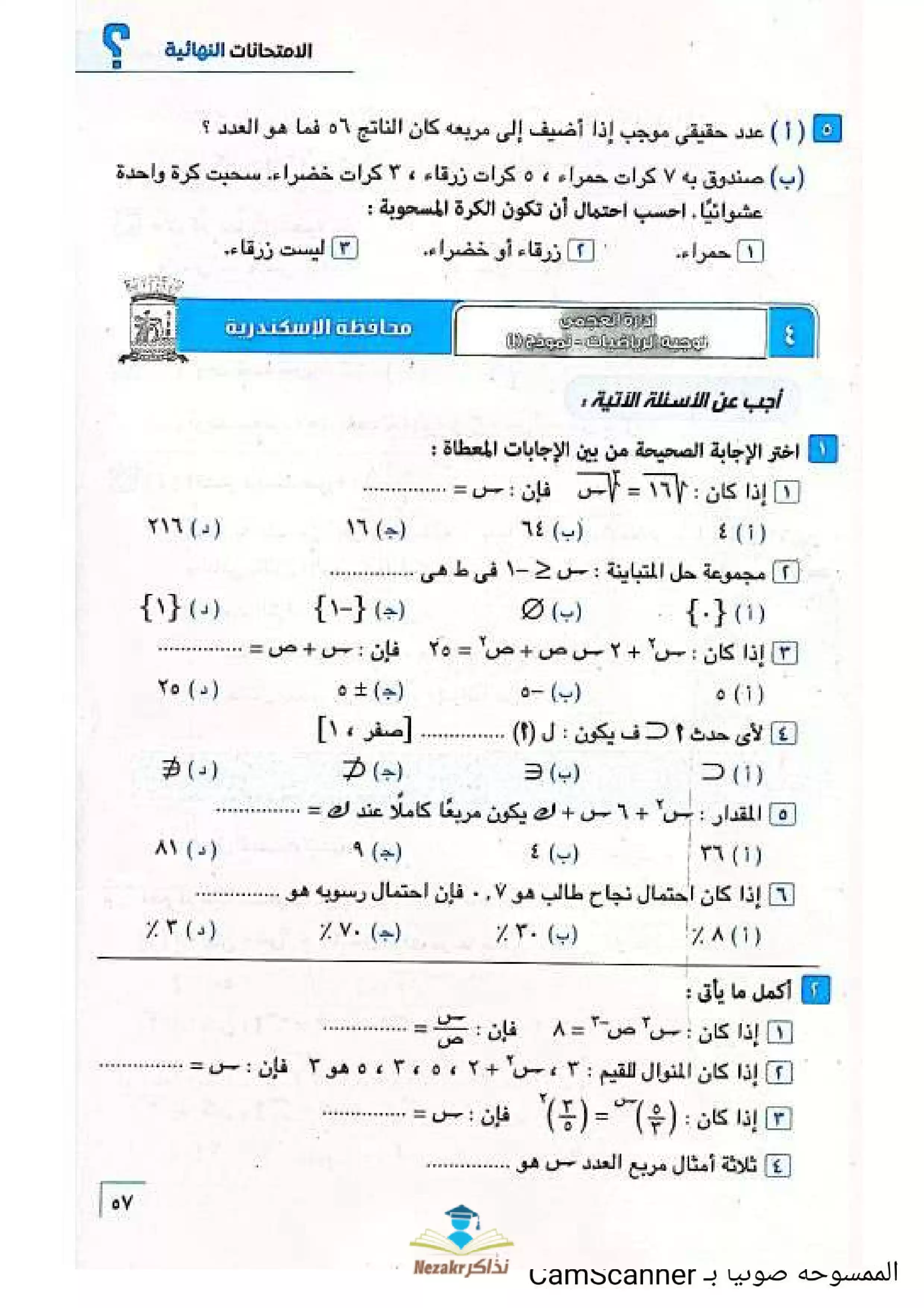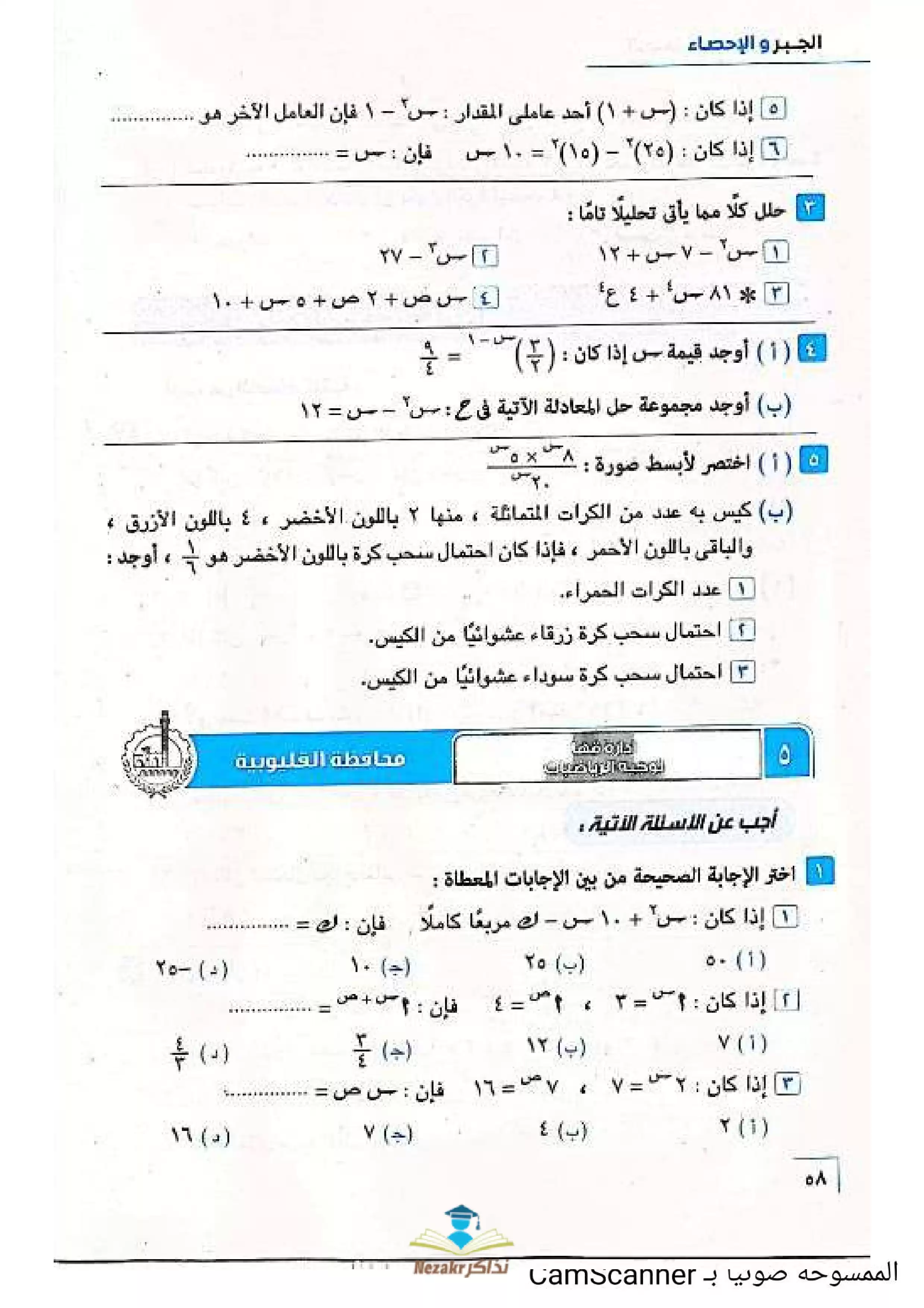 سكرين شوت من الملف: امتحانات المحافظات من المعاصر في الجبر والاحصاء 2 إعدادي ترم 2 - Nezakr