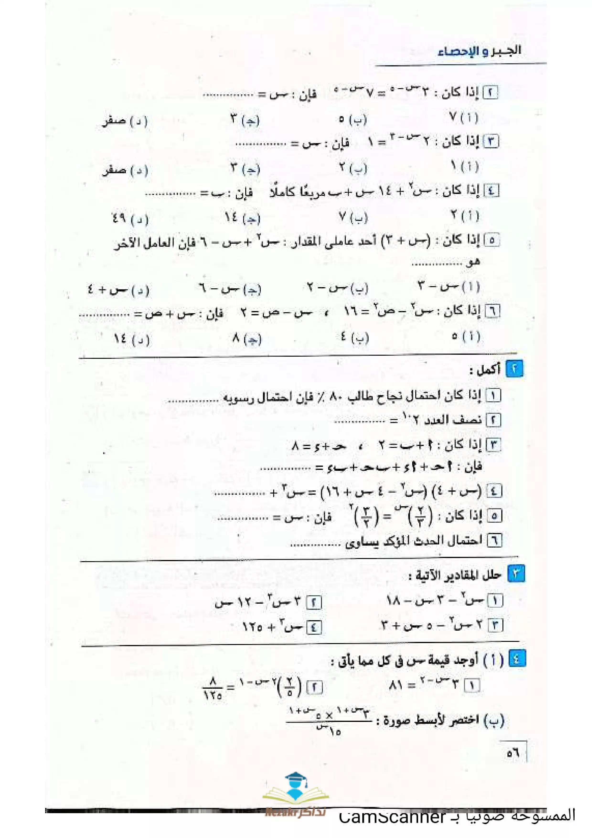 امتحانات المحافظات من المعاصر في الجبر والاحصاء 2 إعدادي ترم 2 - Nezakr |