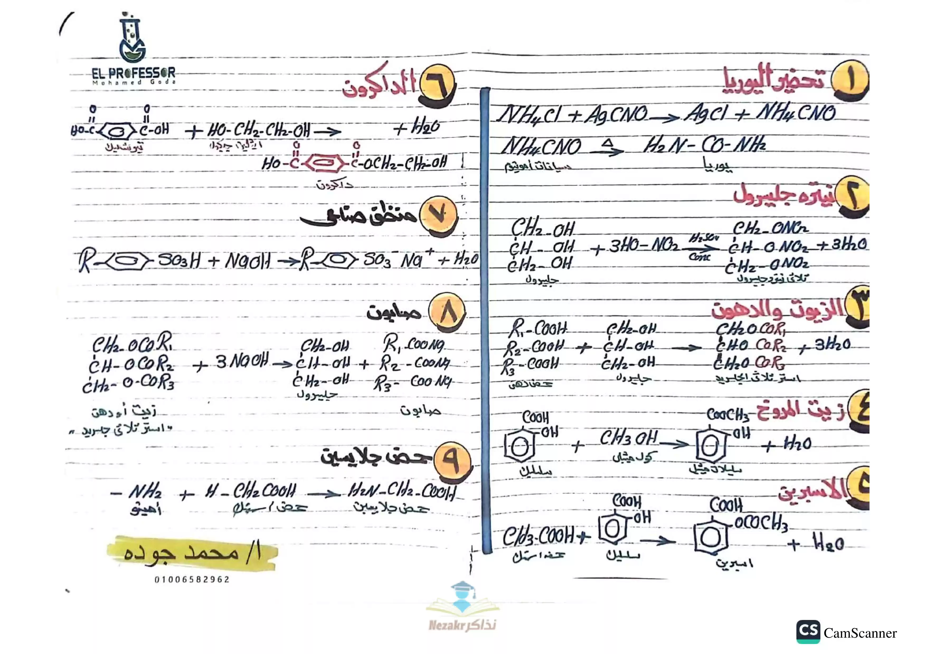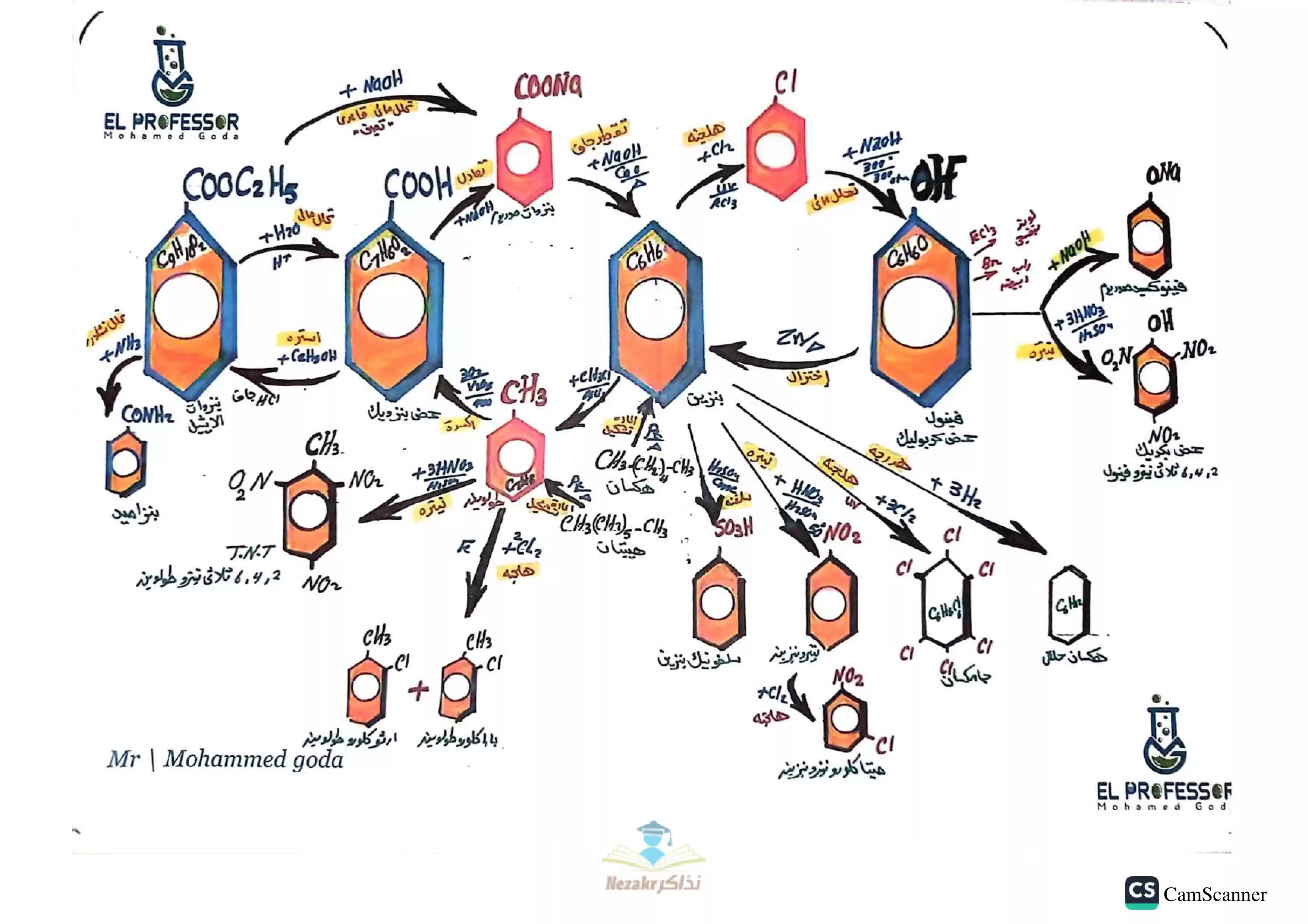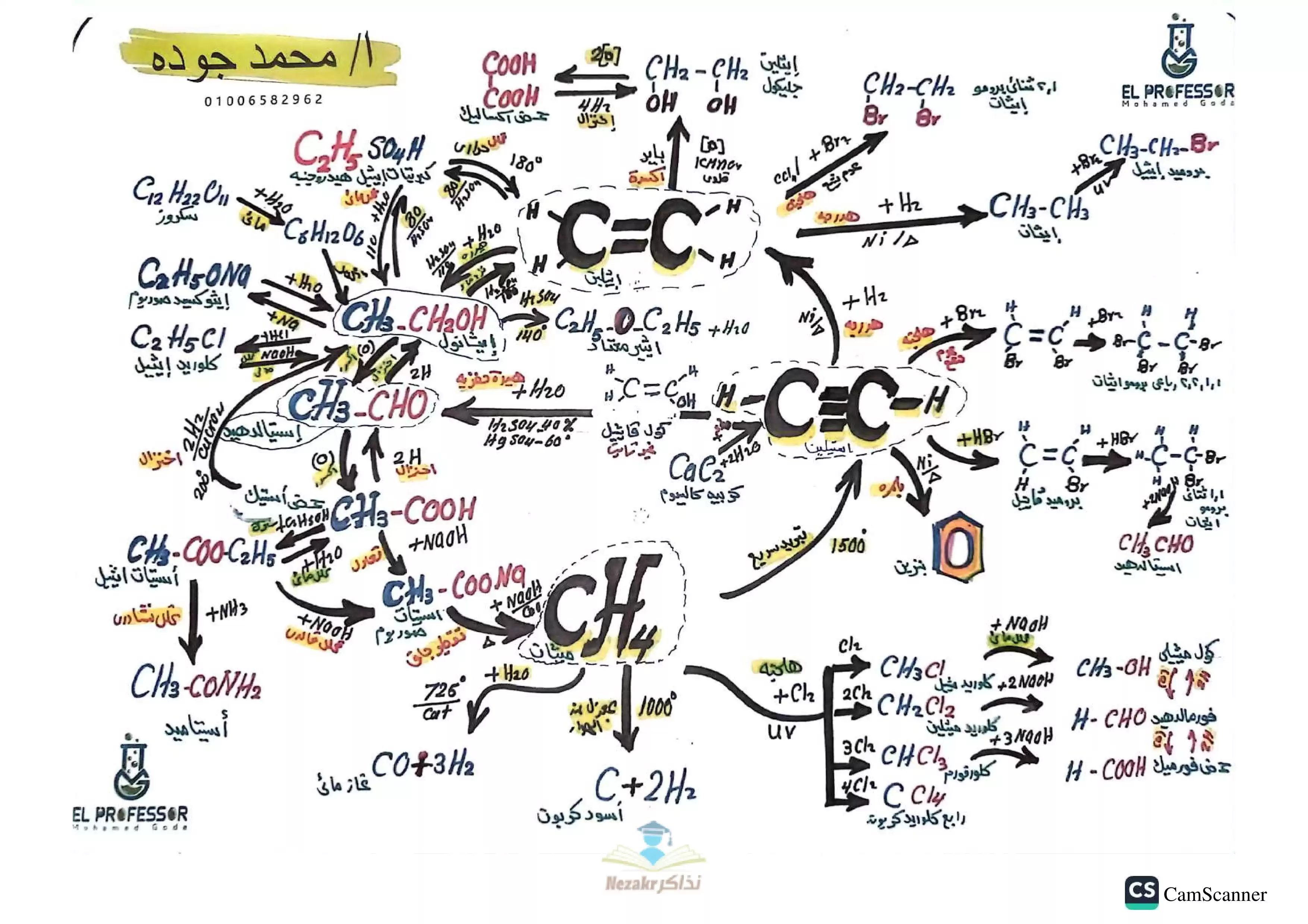 ملخص معادلات الكيمياء العضوية 3 ثانوي - Nezakr |