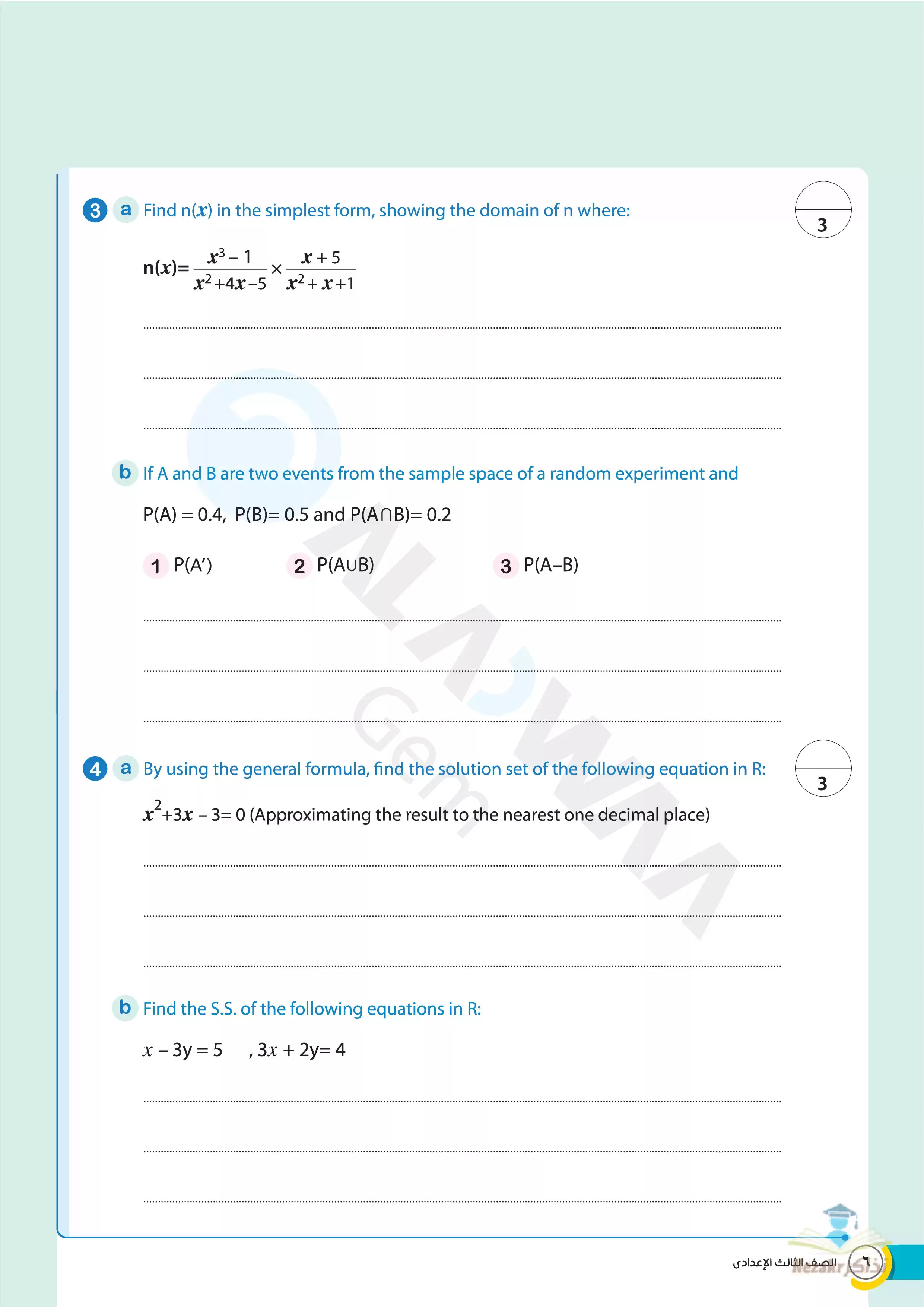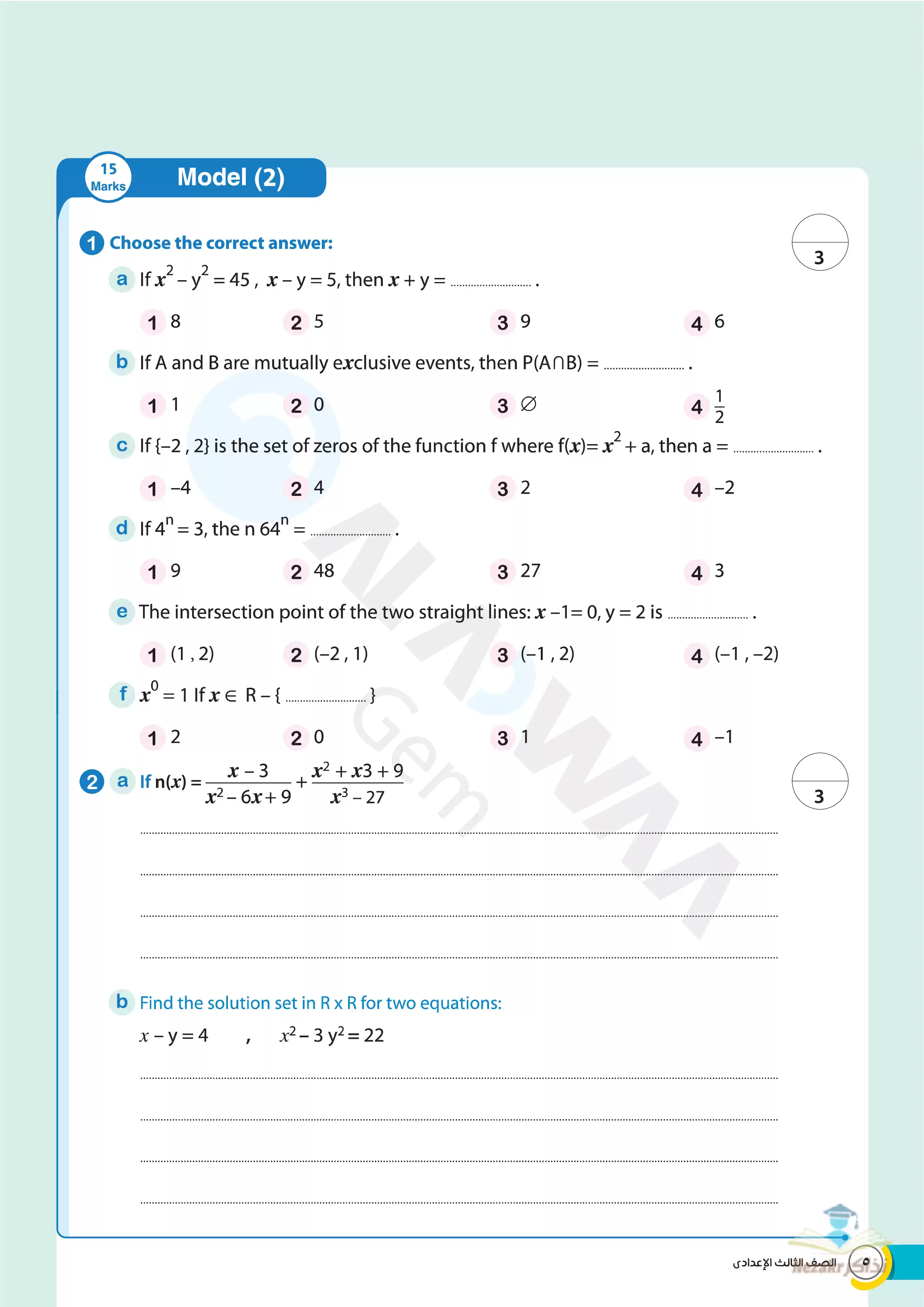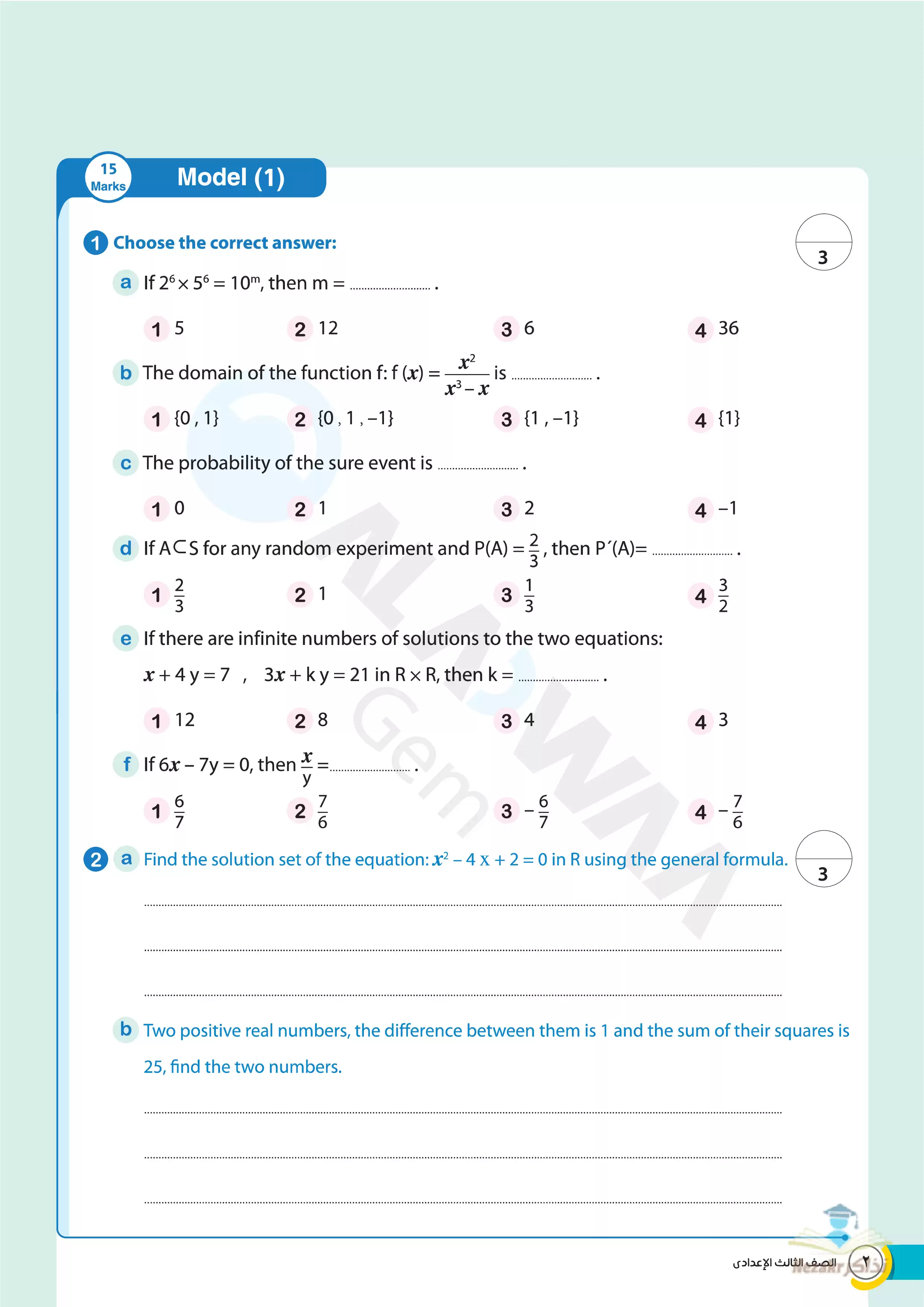 | بيانات الملف: (نماذج اختبارات الأضواء النهائية في مادة Math للصف الثالث الاعدادي الترم الثاني - Nezakr) | |