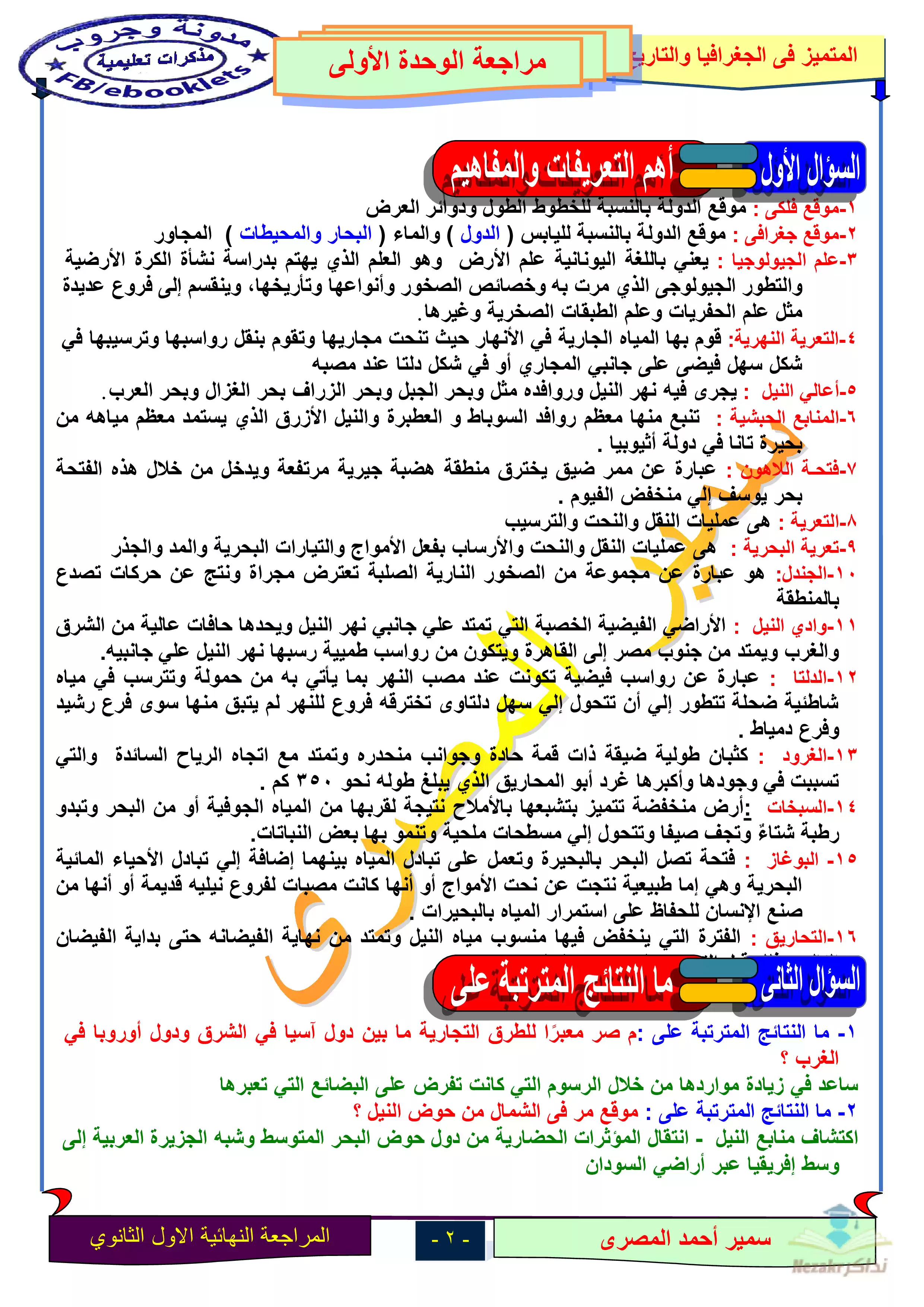 صفحة 2 من 17 صفحة من ملف: مذكرة المراجعة النهائية في الجغرافيا للصف الأول الثانوي الترم الأول - Nezakr