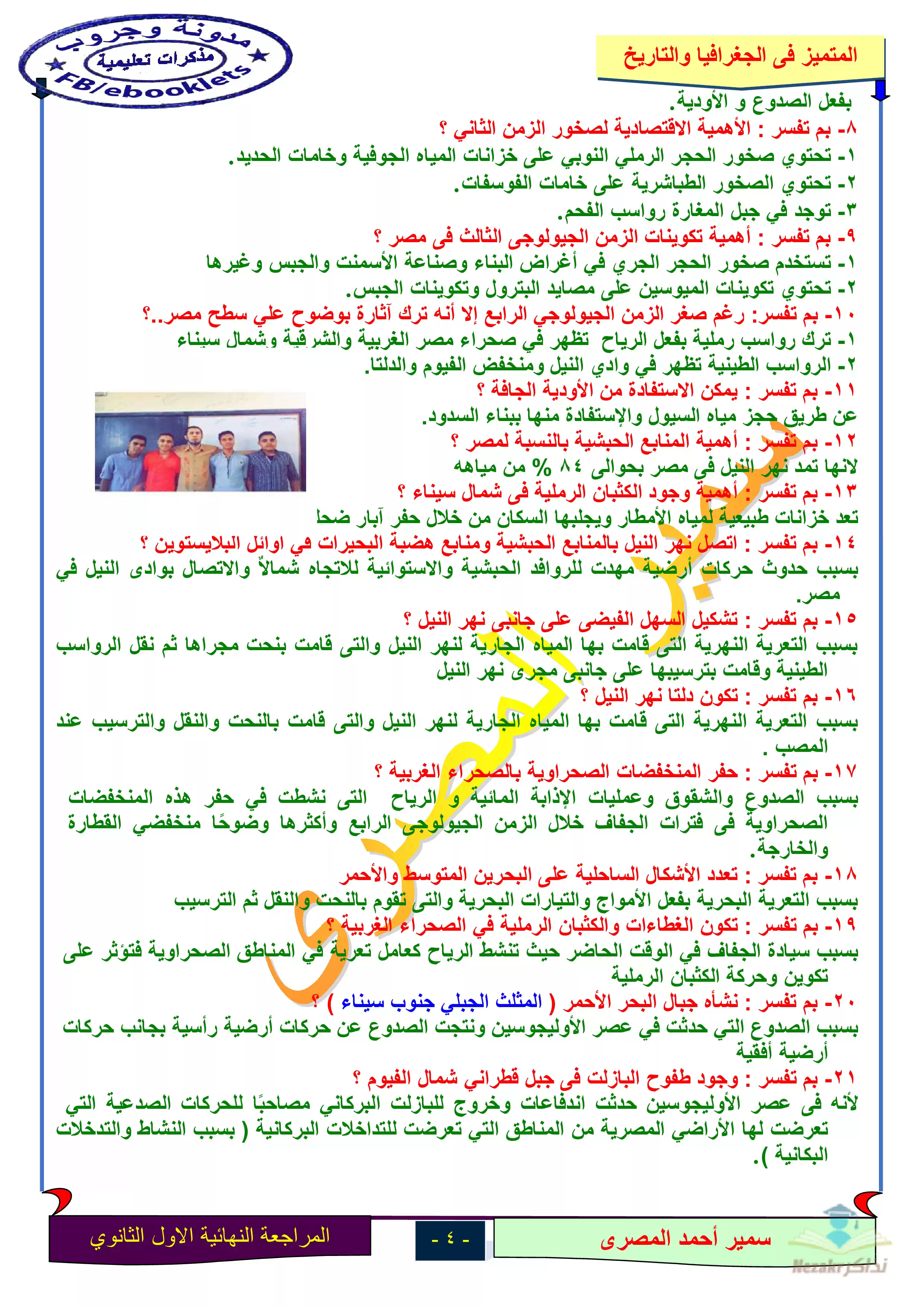 صفحة 4 من 17 صفحة من ملف: مذكرة المراجعة النهائية في الجغرافيا للصف الأول الثانوي الترم الأول - Nezakr