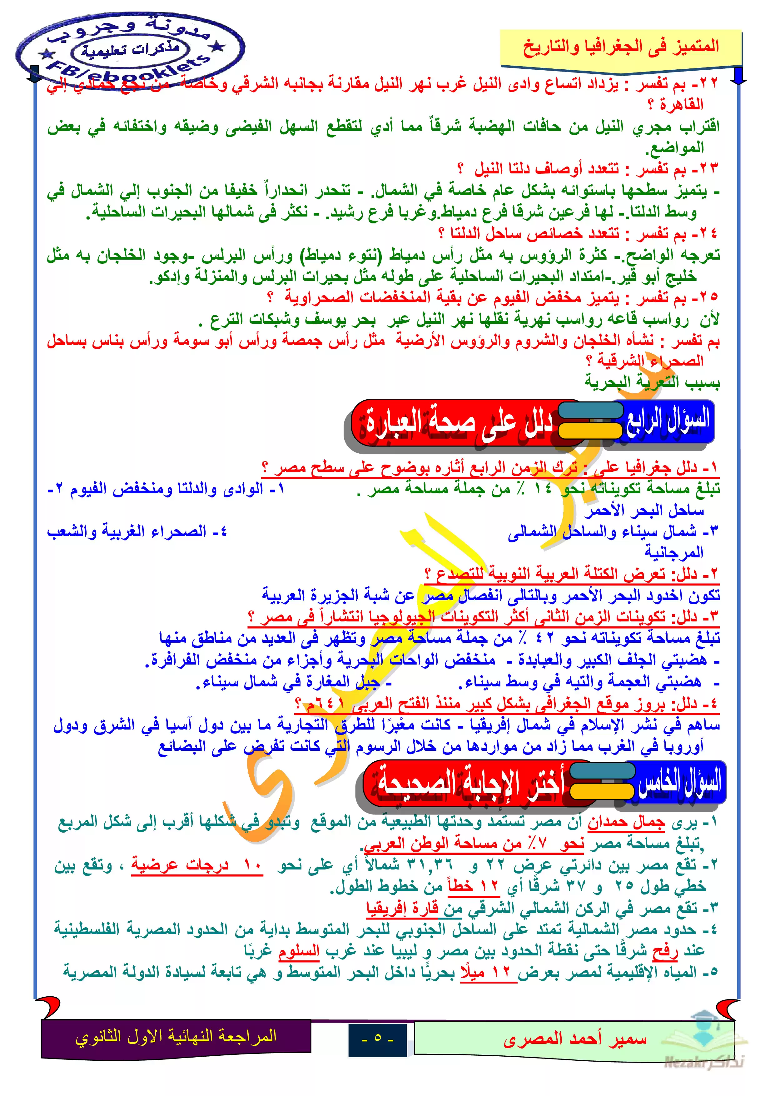 صفحة 5 من 17 صفحة من ملف: مذكرة المراجعة النهائية في الجغرافيا للصف الأول الثانوي الترم الأول - Nezakr