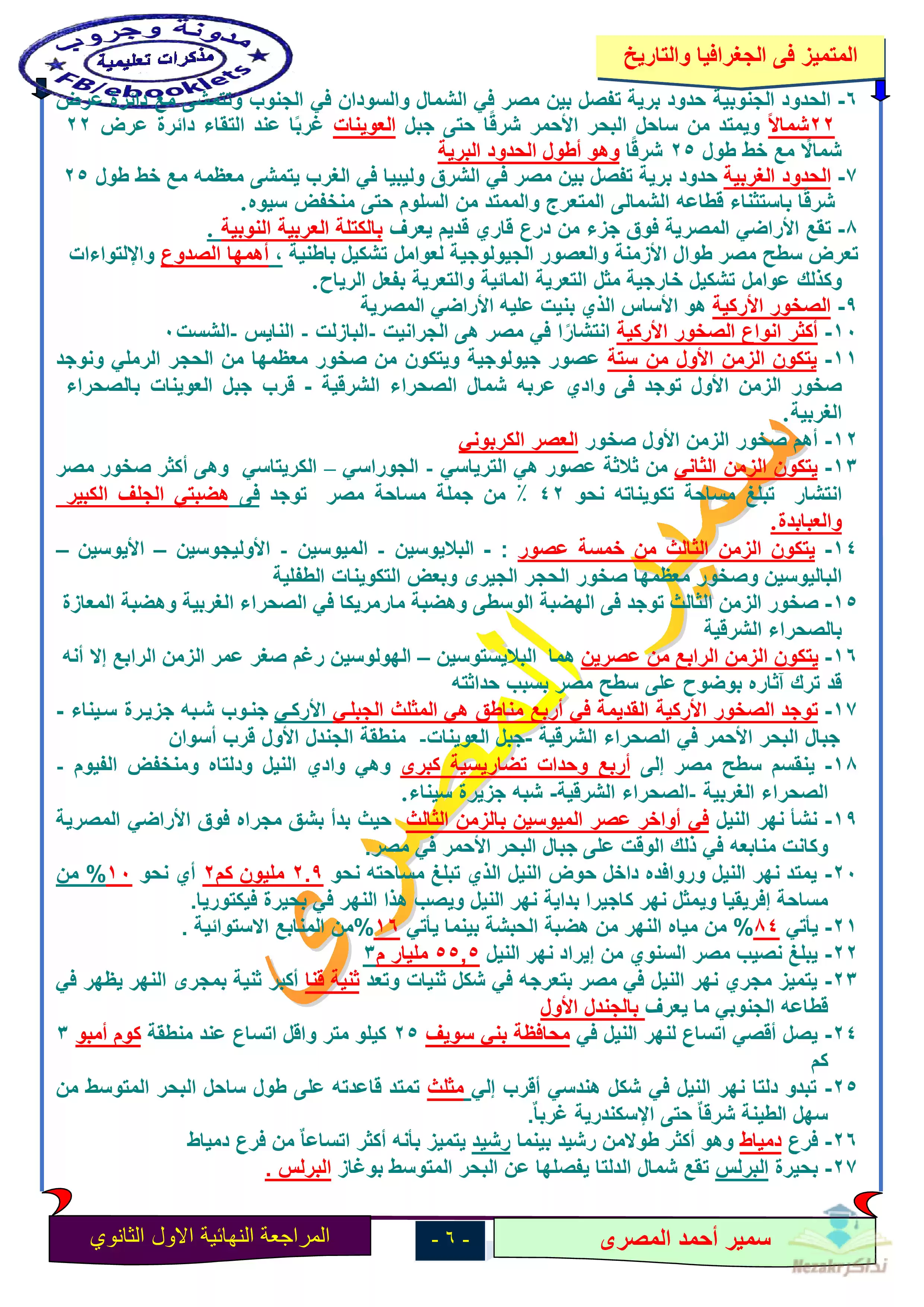 صفحة 6 من 17 صفحة من ملف: مذكرة المراجعة النهائية في الجغرافيا للصف الأول الثانوي الترم الأول - Nezakr