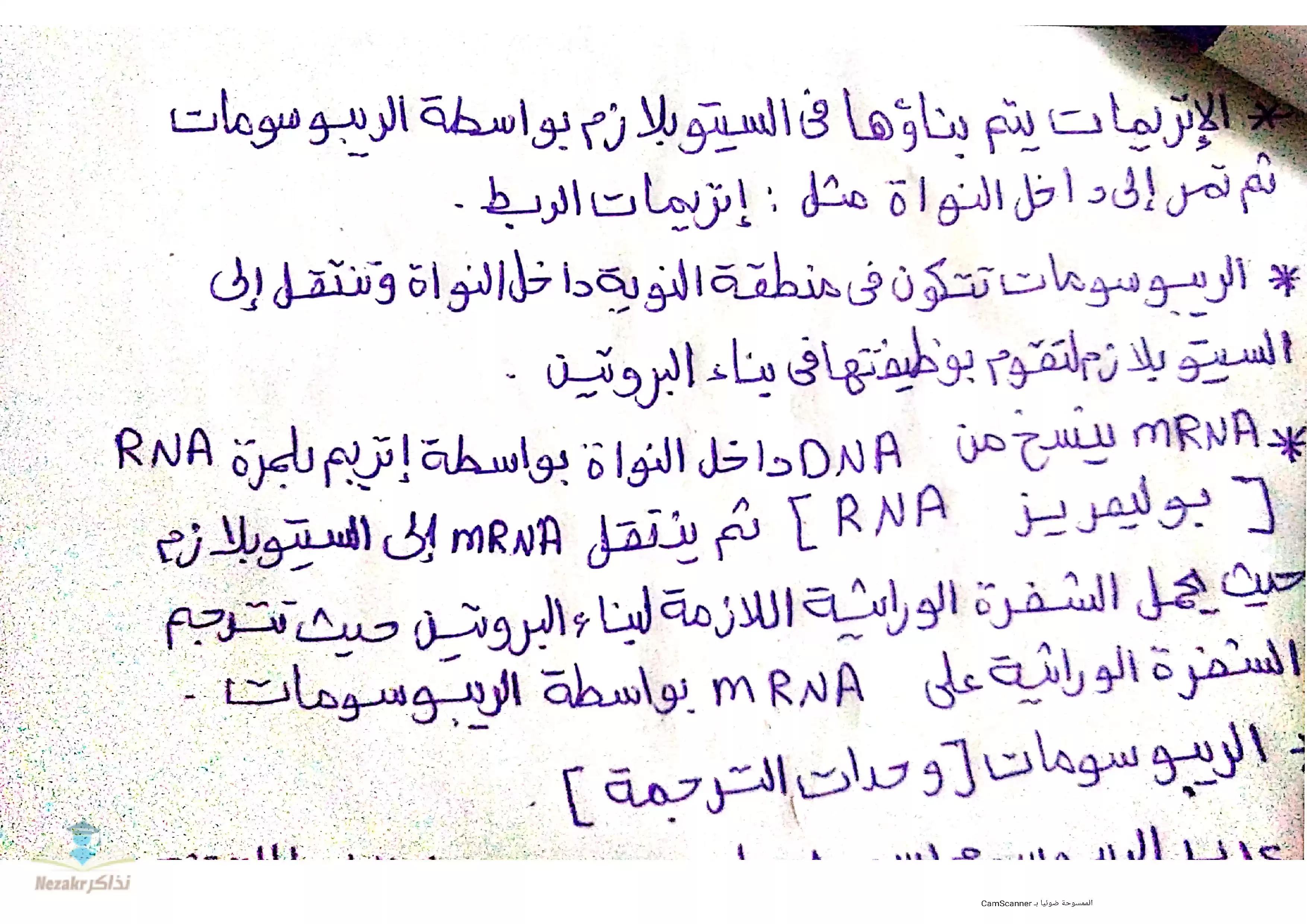 سكرين شوت من الملف: مراجعة الأحياء الباب الثاني فصل ثاني RNA من منصة حصص مصر