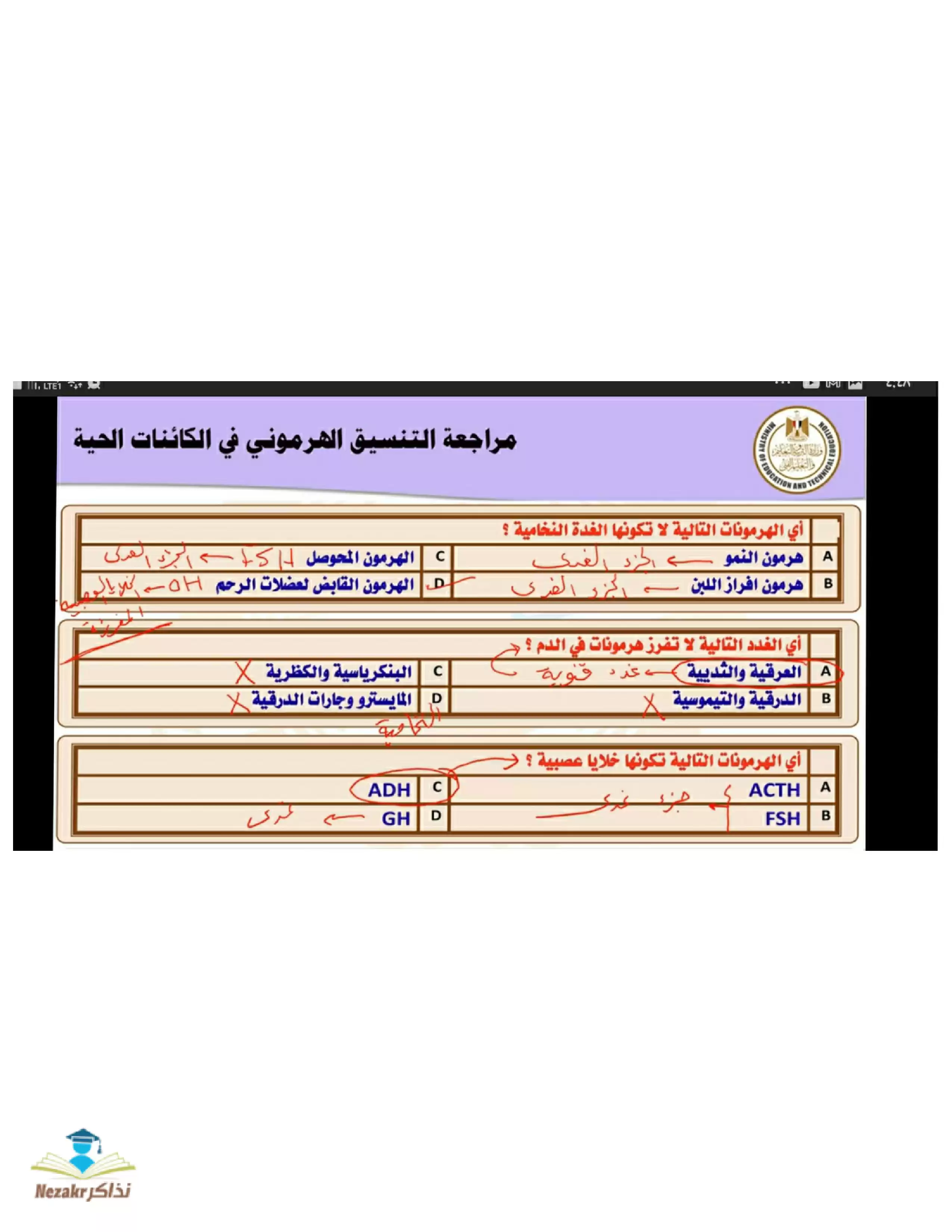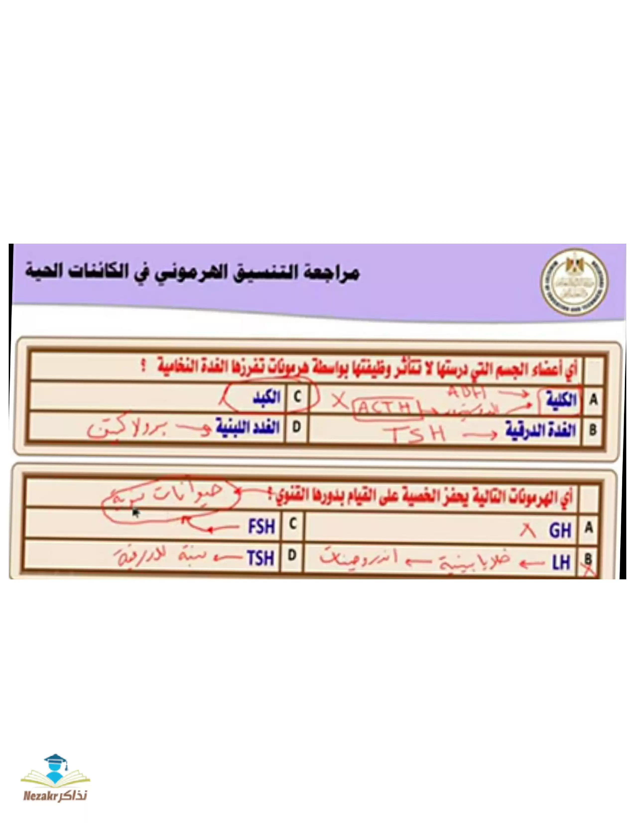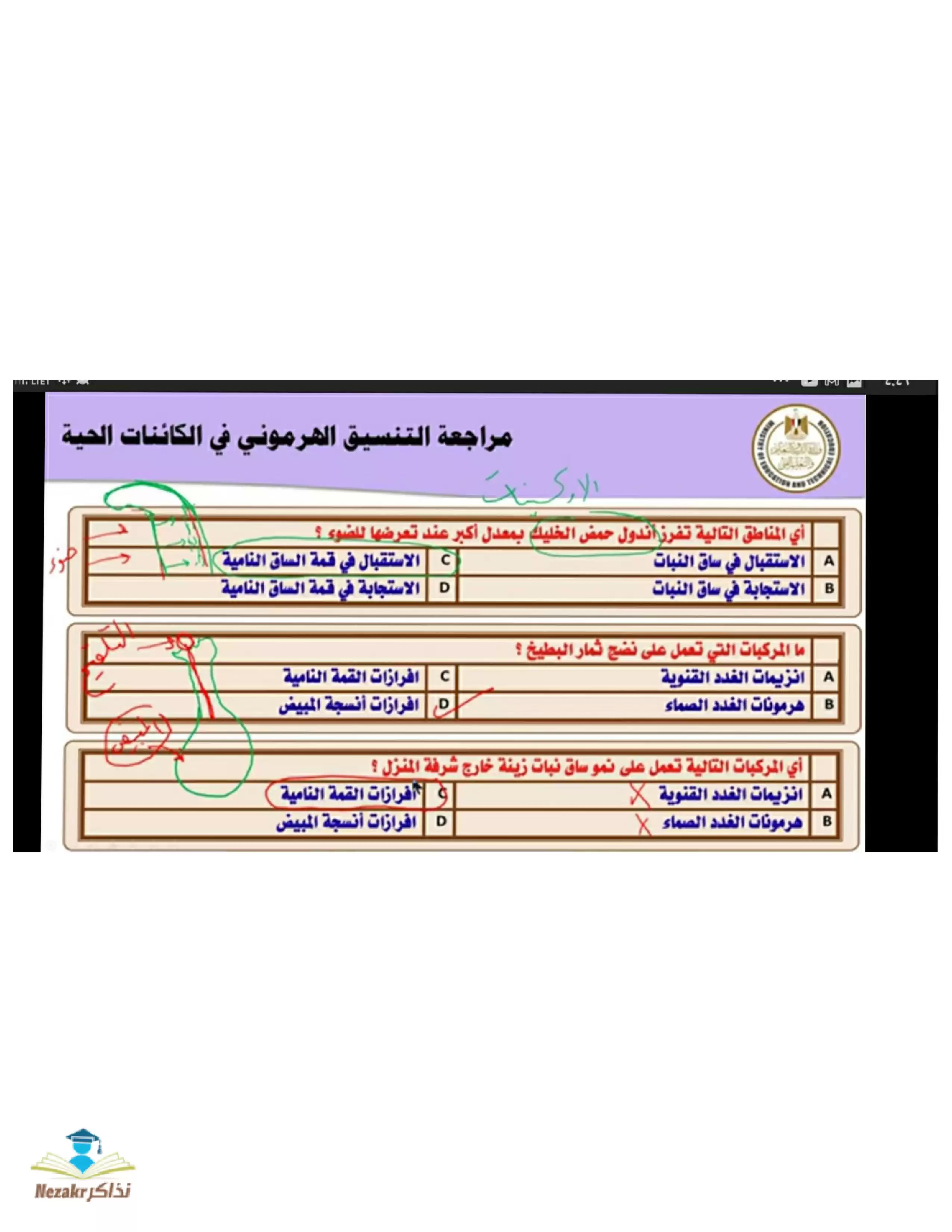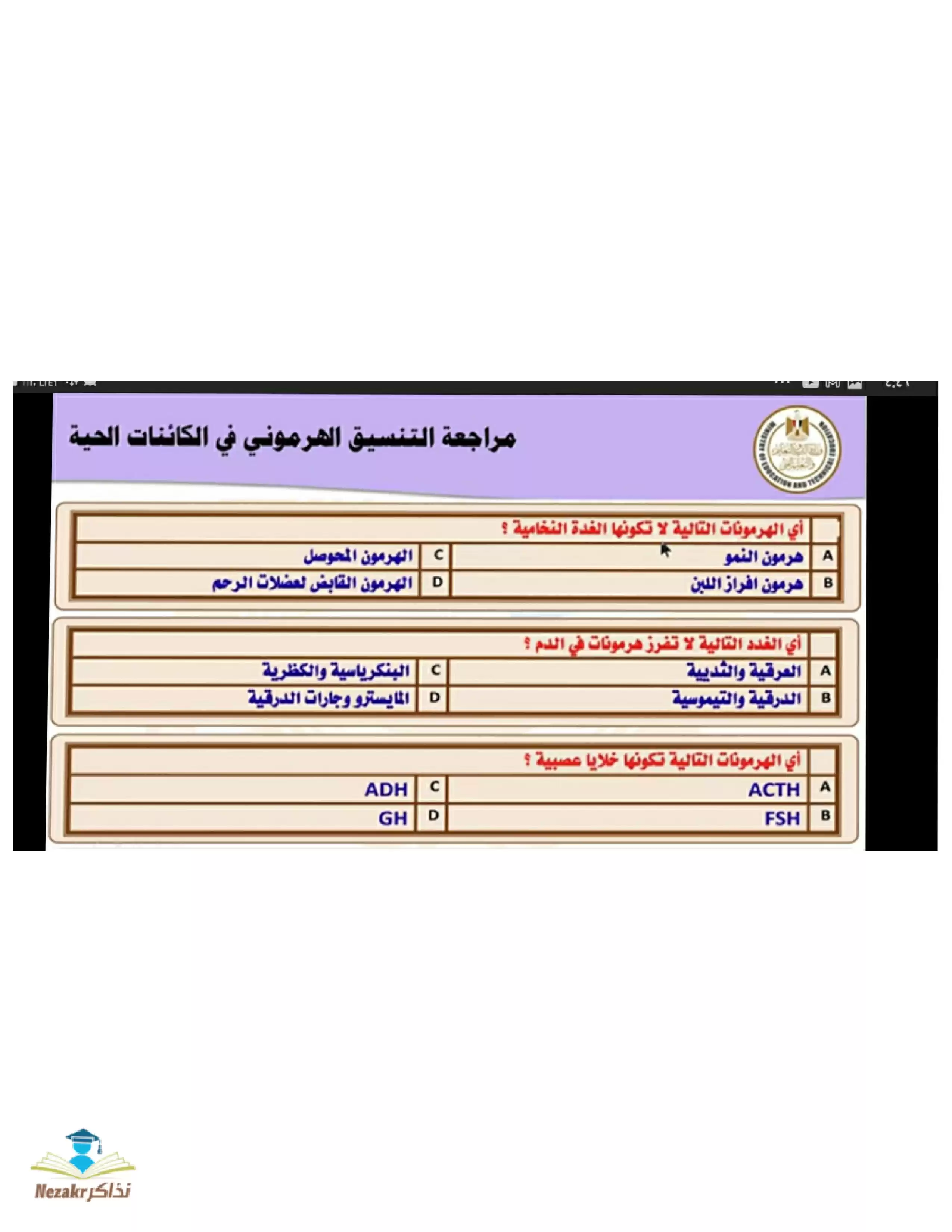 | بيانات الملف: (أسئلة على التنسيق الهرموني في الأحياء للثانوية العامة من منصة البث المباشر - Nezakr) | |