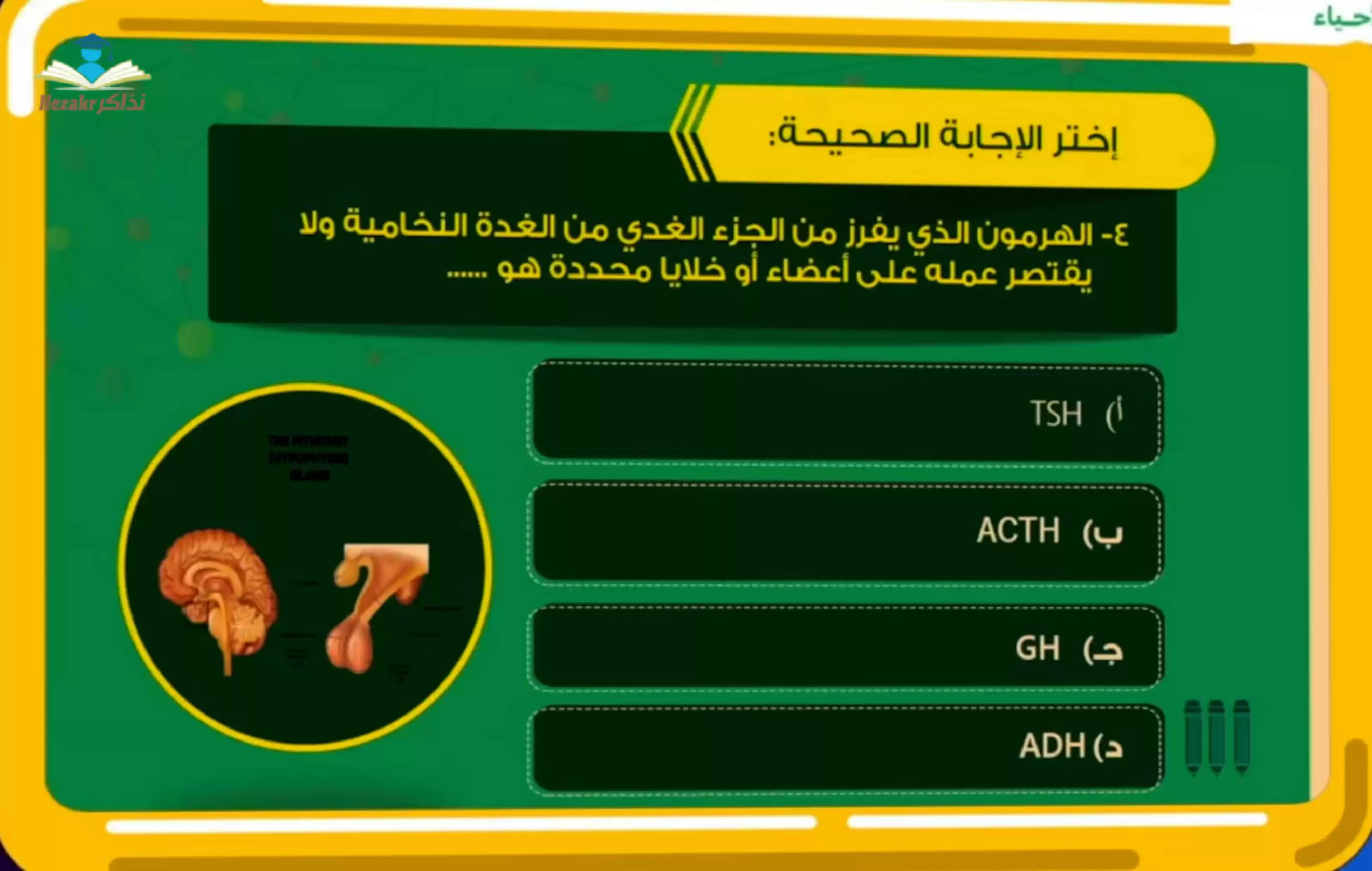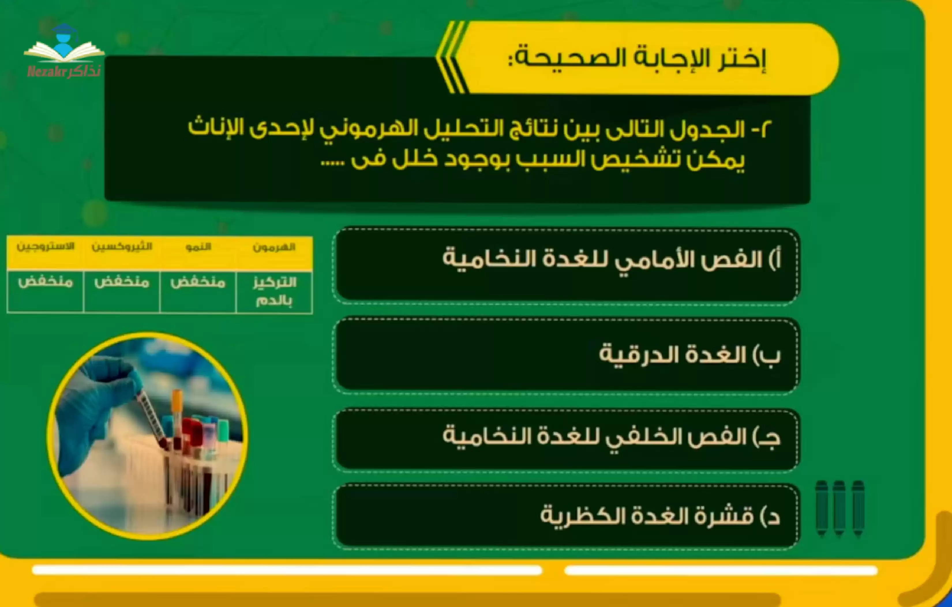 أسئلة مراجعة على التنسيق الهرموني للثانوية العامة من منصة مدرستنا - Nezakr