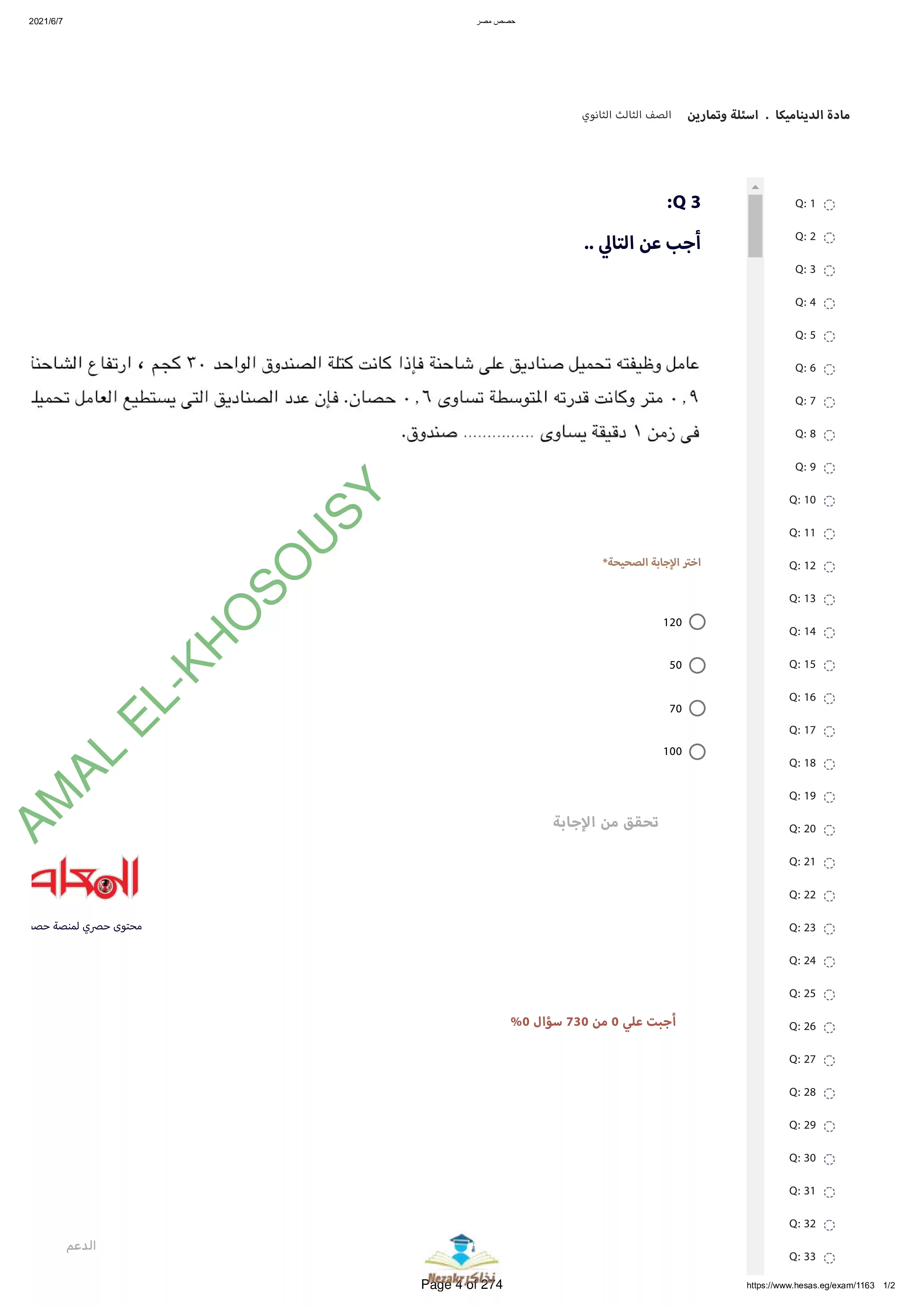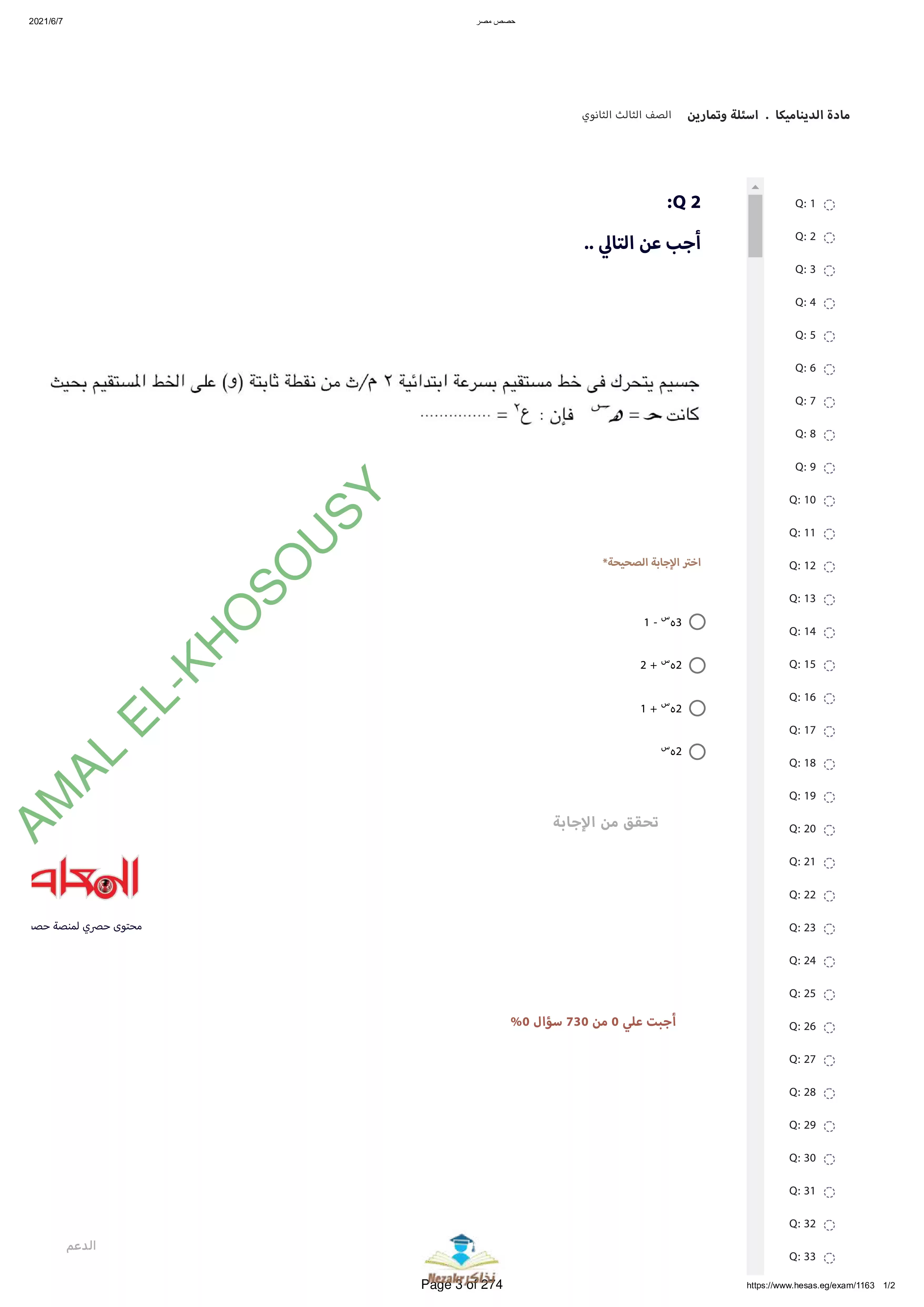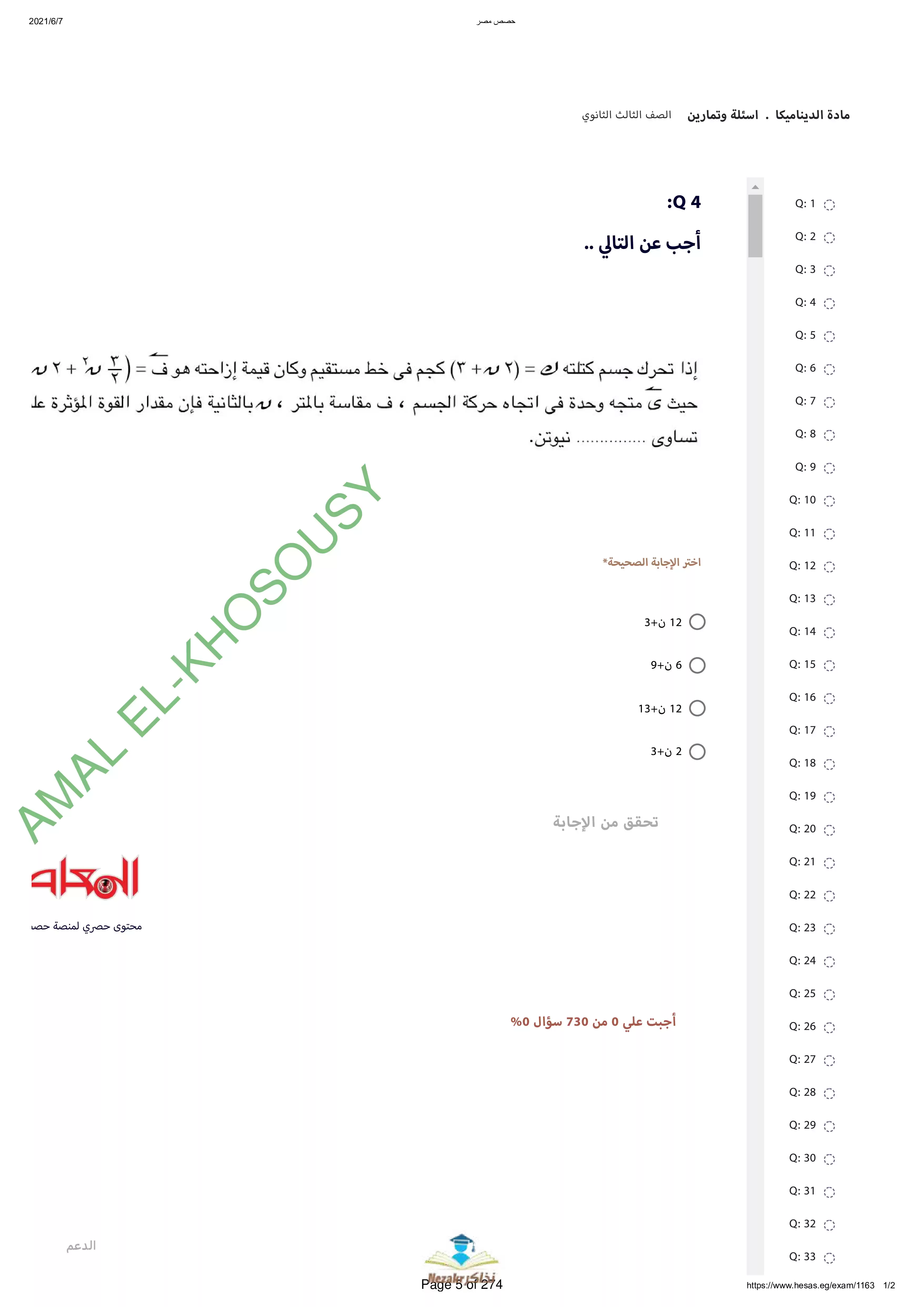 | بيانات الملف: (نماذج أسئلة وامتحانات منصة حصص مصر في الديناميكا للثانوية العامة - Nezakr) | |