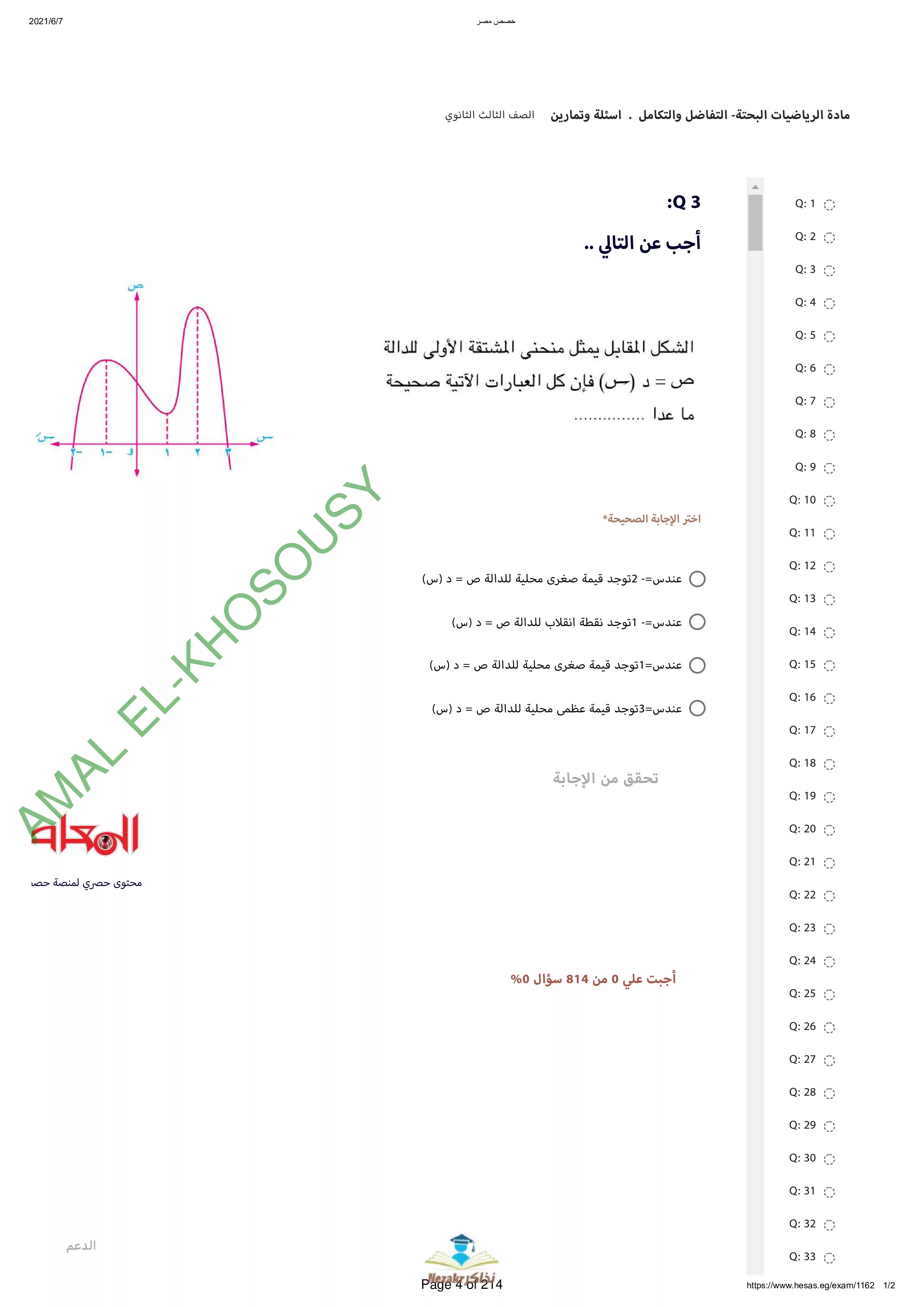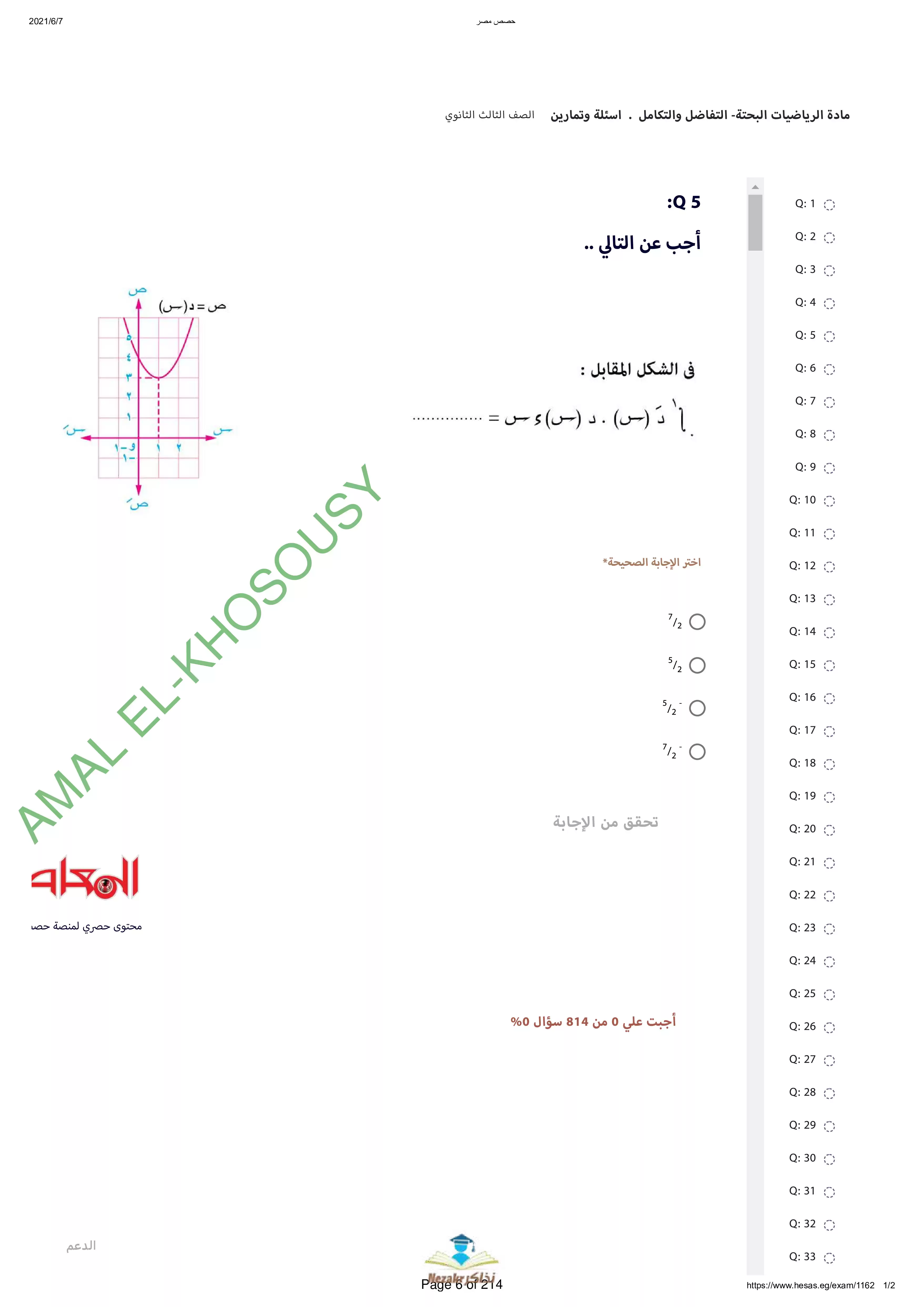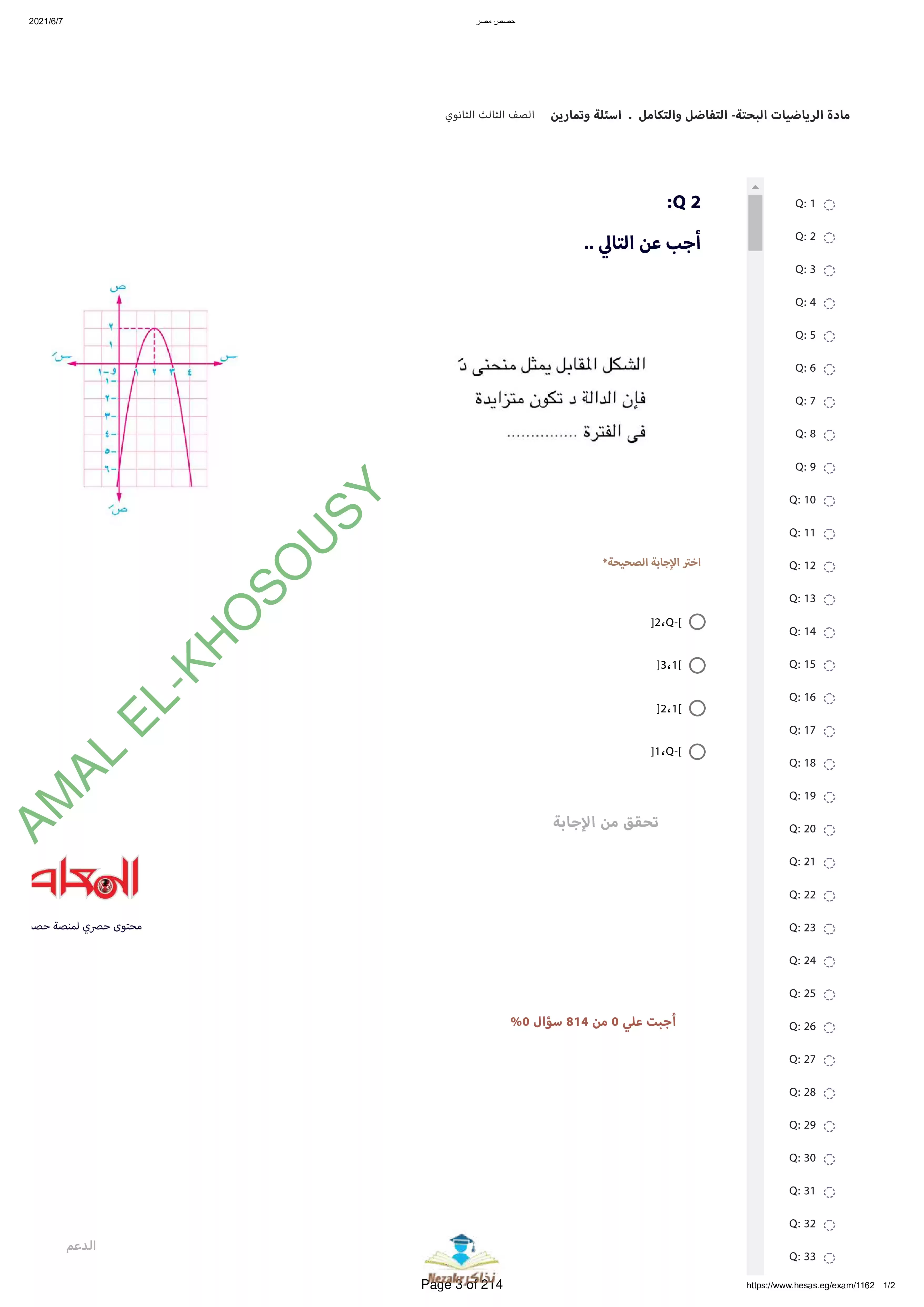 | بيانات الملف: (نماذج أسئلة وامتحانات منصة حصص مصر في التفاضل والتكامل للثانوية العامة - Nezakr) | |