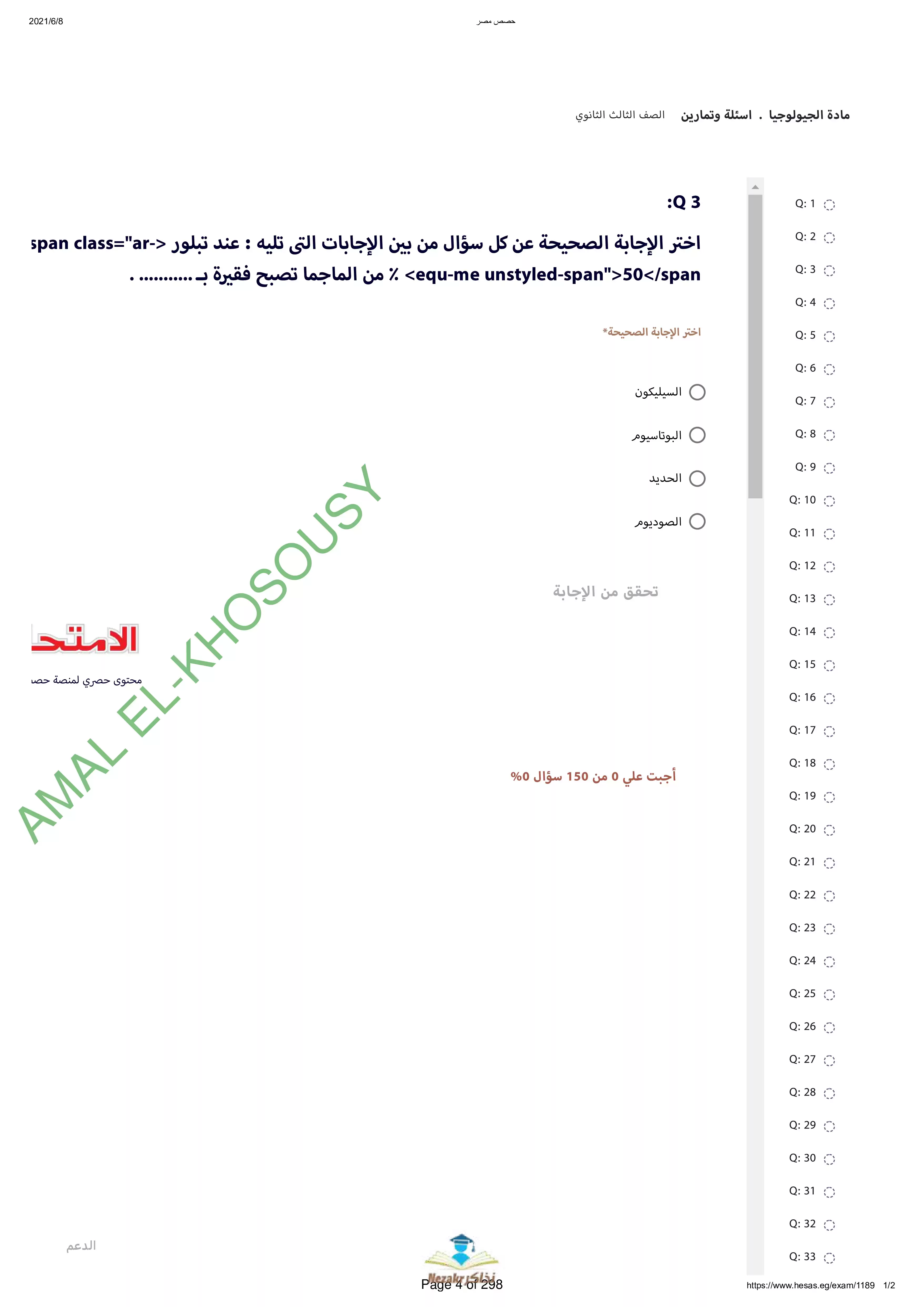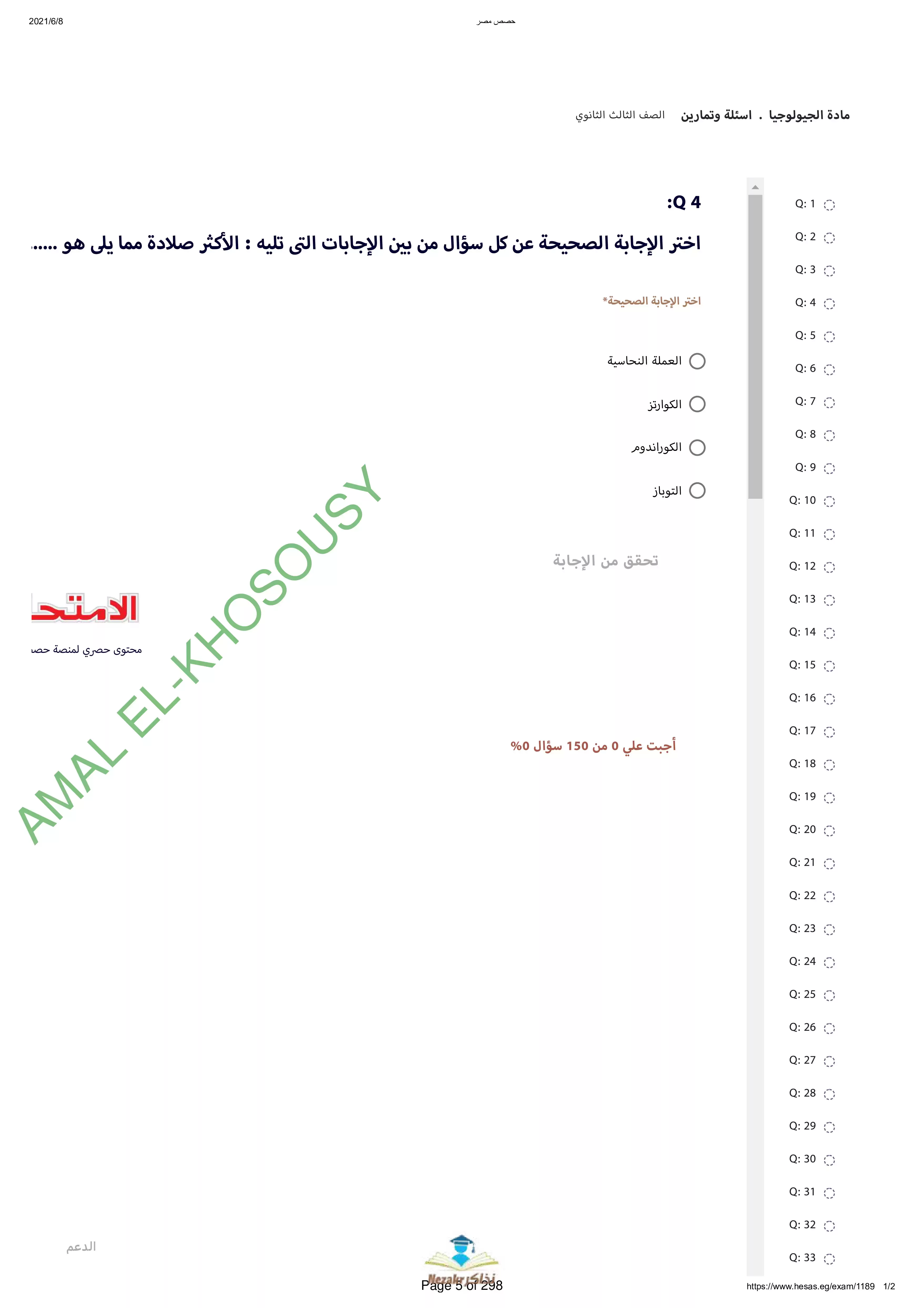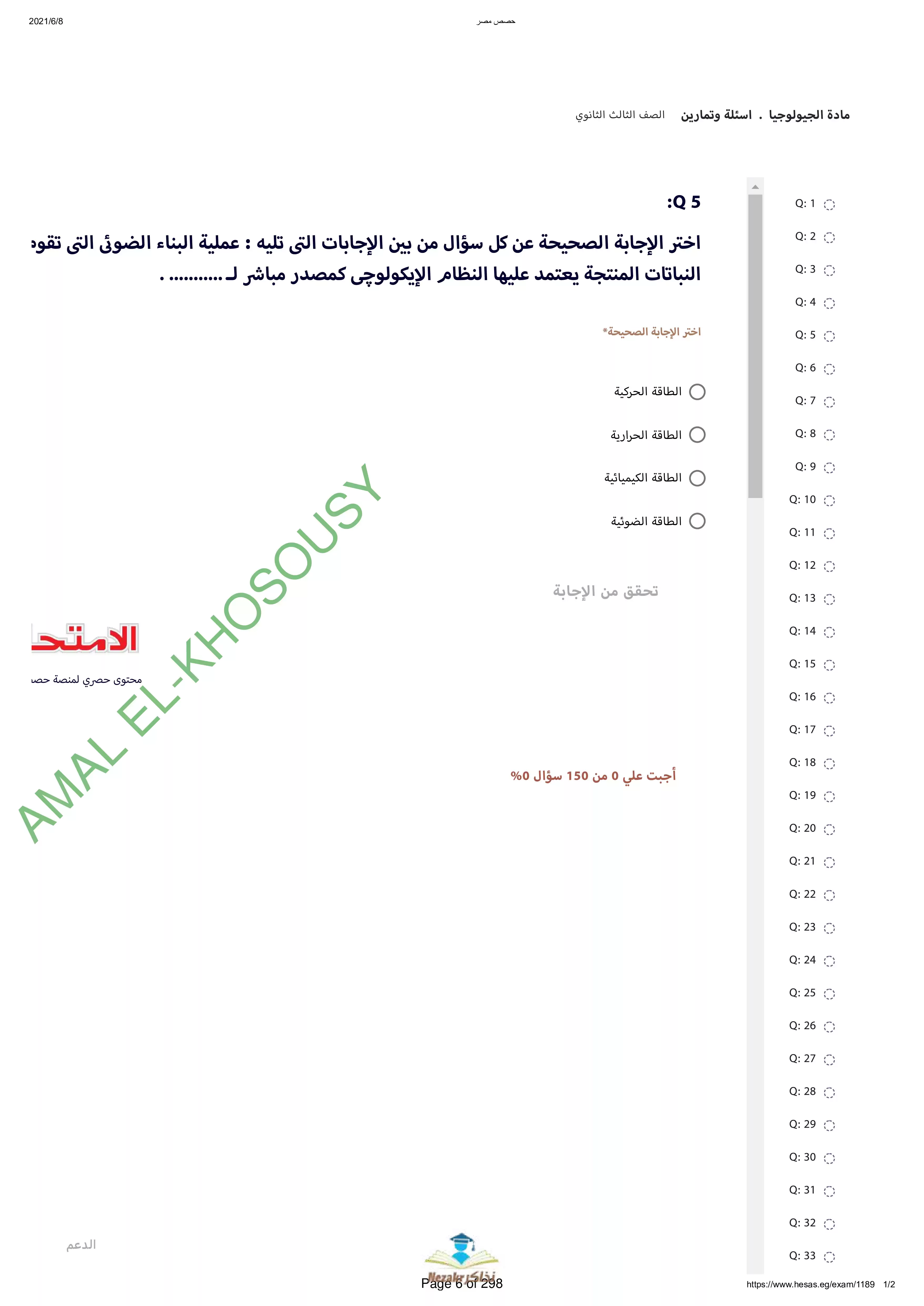 | بيانات الملف: (نماذج أسئلة وامتحانات منصة حصص مصر في الجيولوجيا والعلوم البيئية للثانوية العامة - Nezakr) | |
