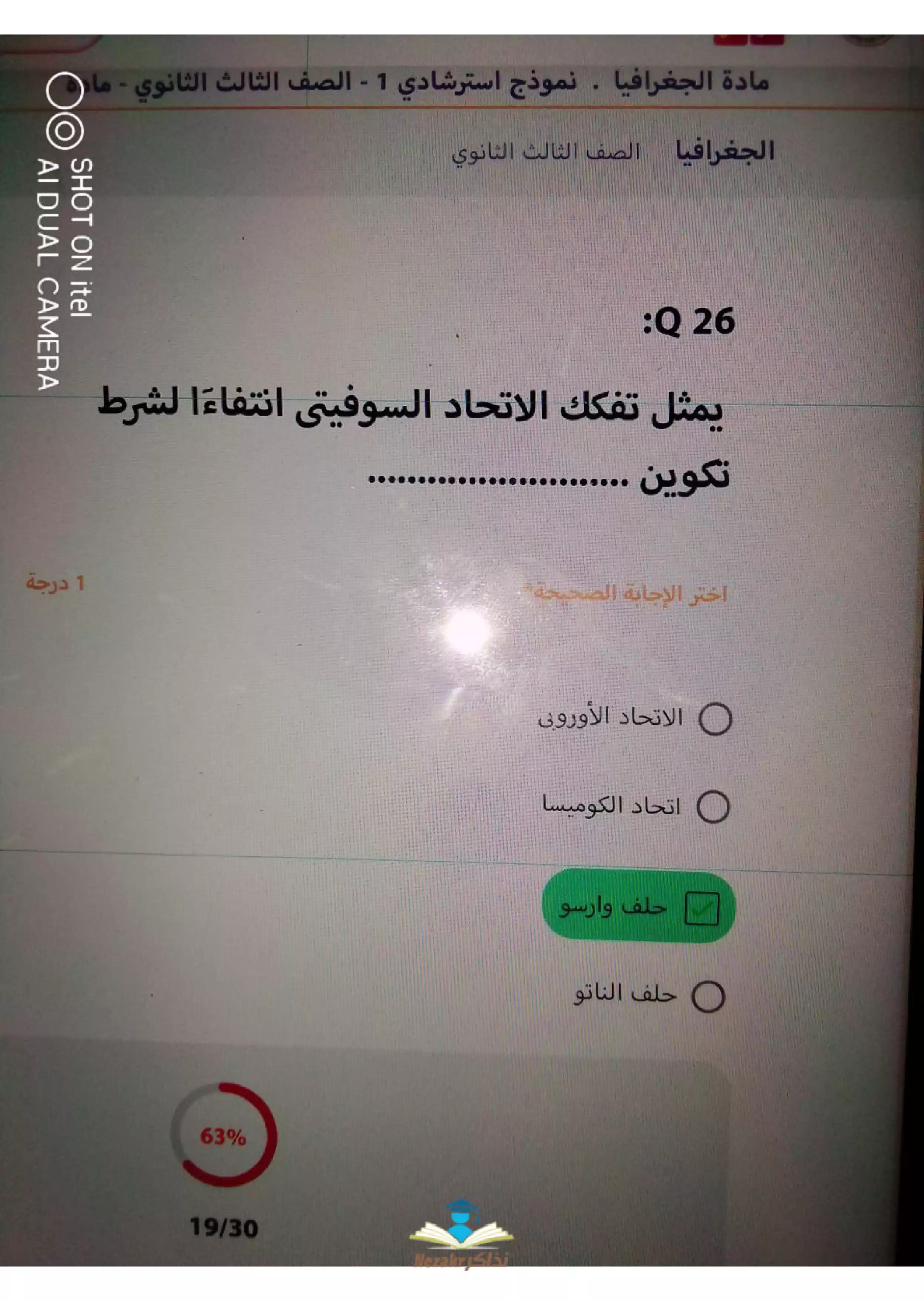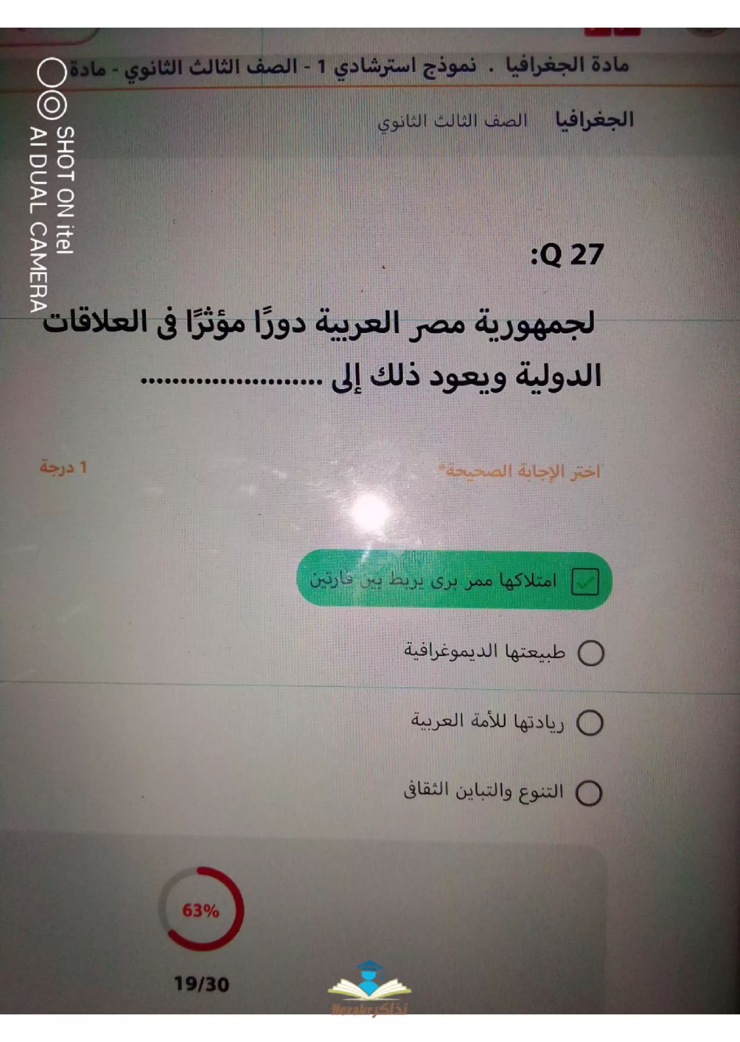 | بيانات الملف: (نماذج استرشادية في الجغرافيا من منصة حصص مصر للثانوية العامة - Nezakr) | |
