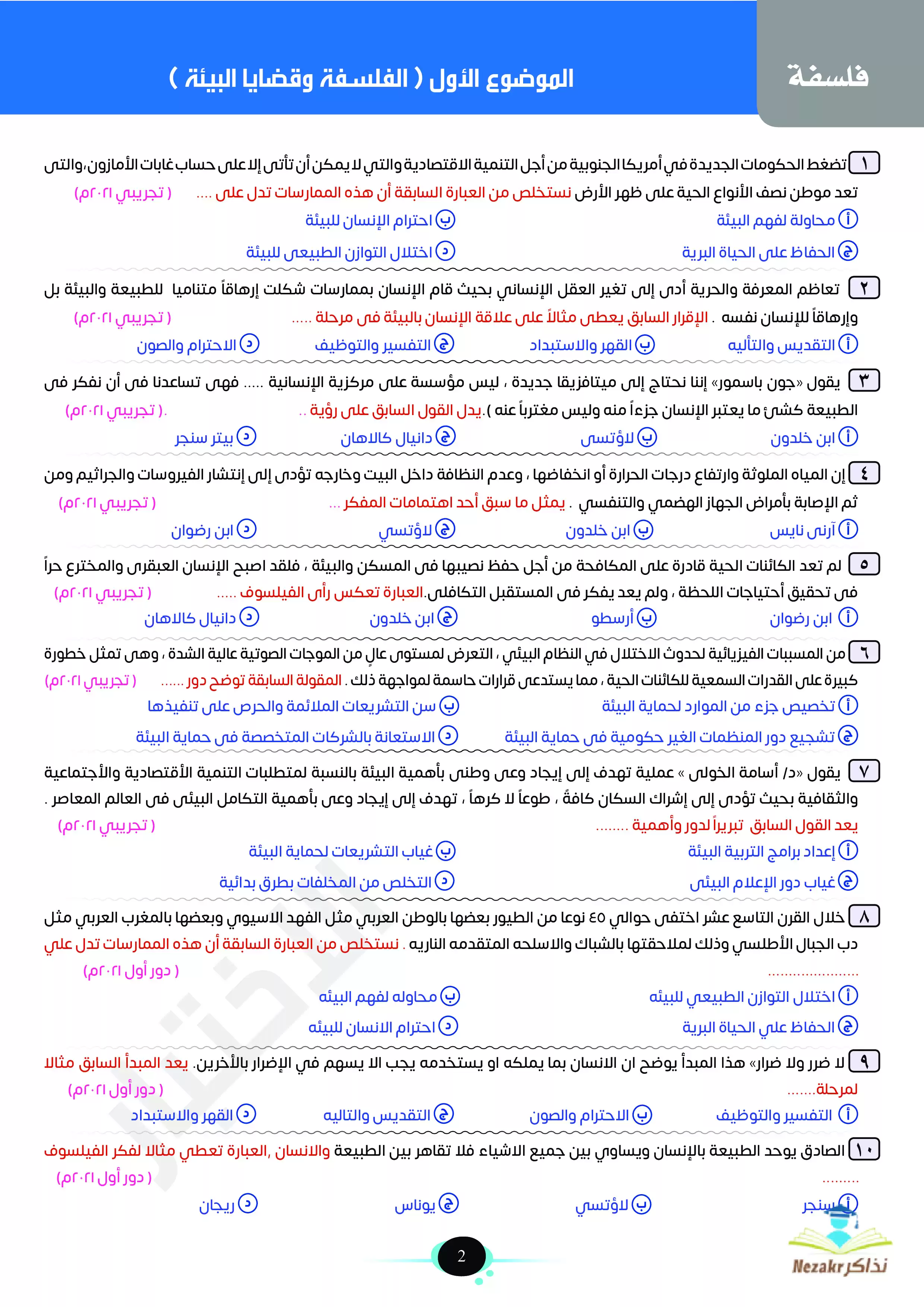 صفحة 2 من 47 صفحة من ملف: أسئلة امتحانات سابقة لمادة الفلسفة والمنطق للصف الثالث الثانوي - Nezakr