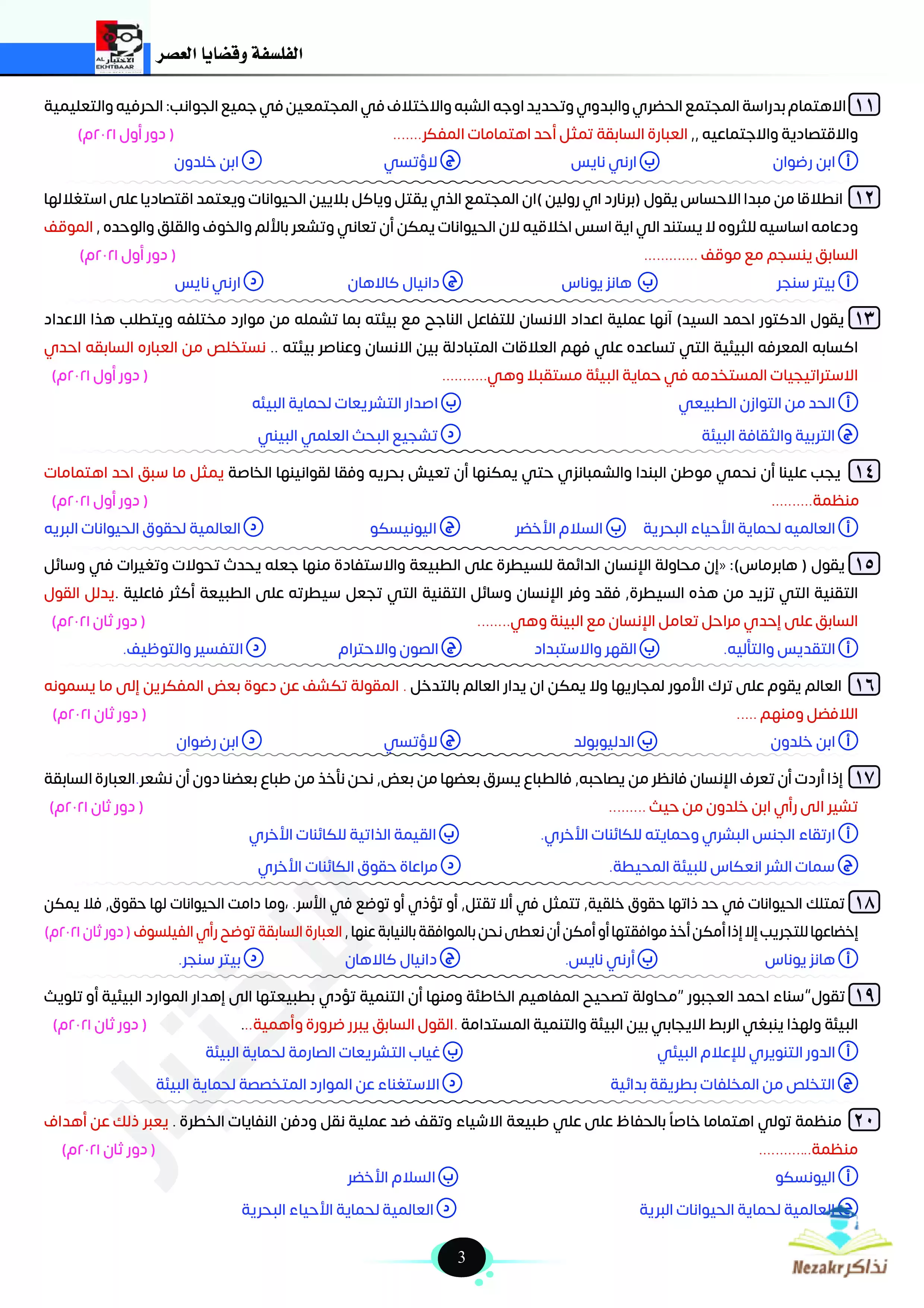 صفحة 3 من 47 صفحة من ملف: أسئلة امتحانات سابقة لمادة الفلسفة والمنطق للصف الثالث الثانوي - Nezakr