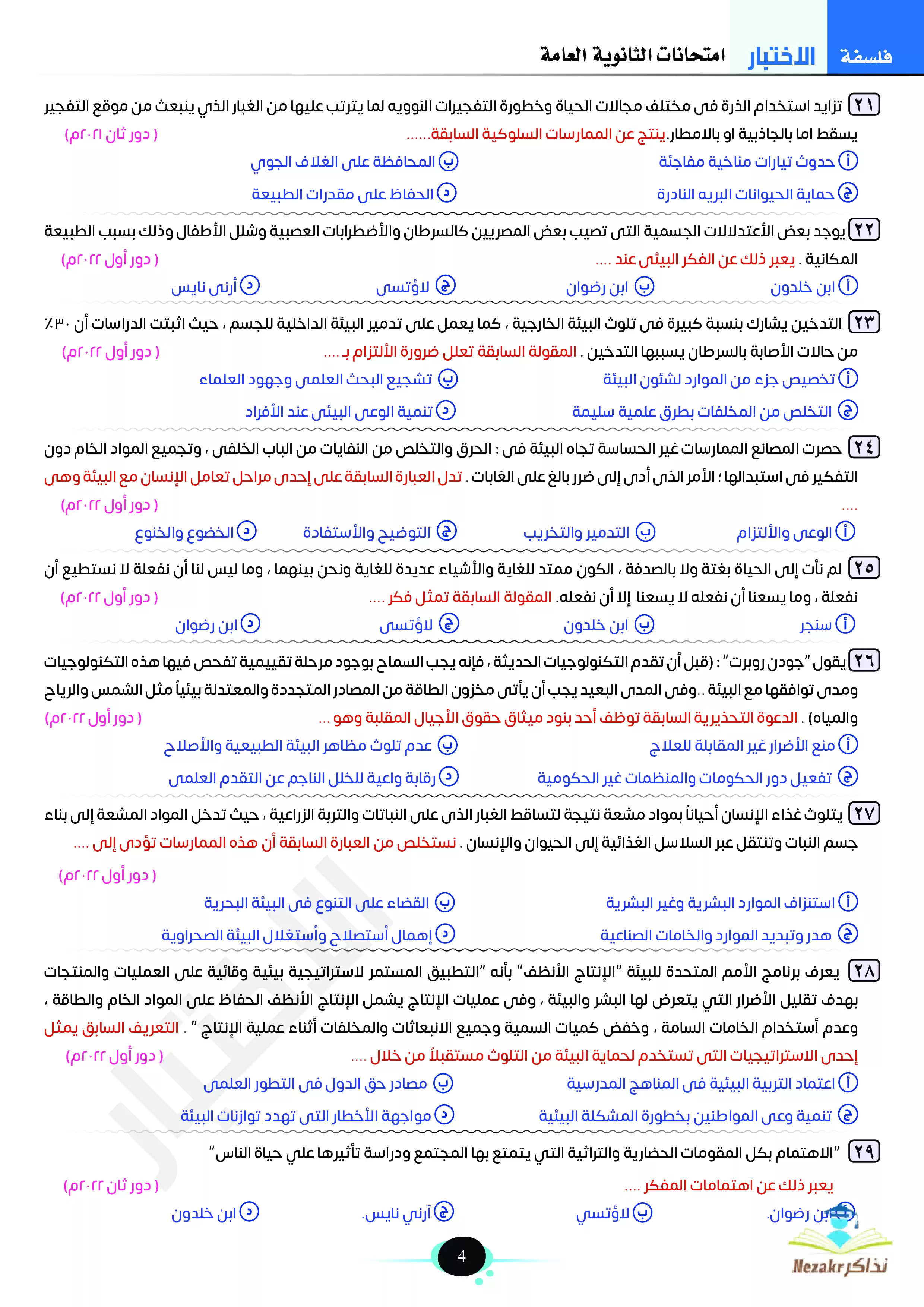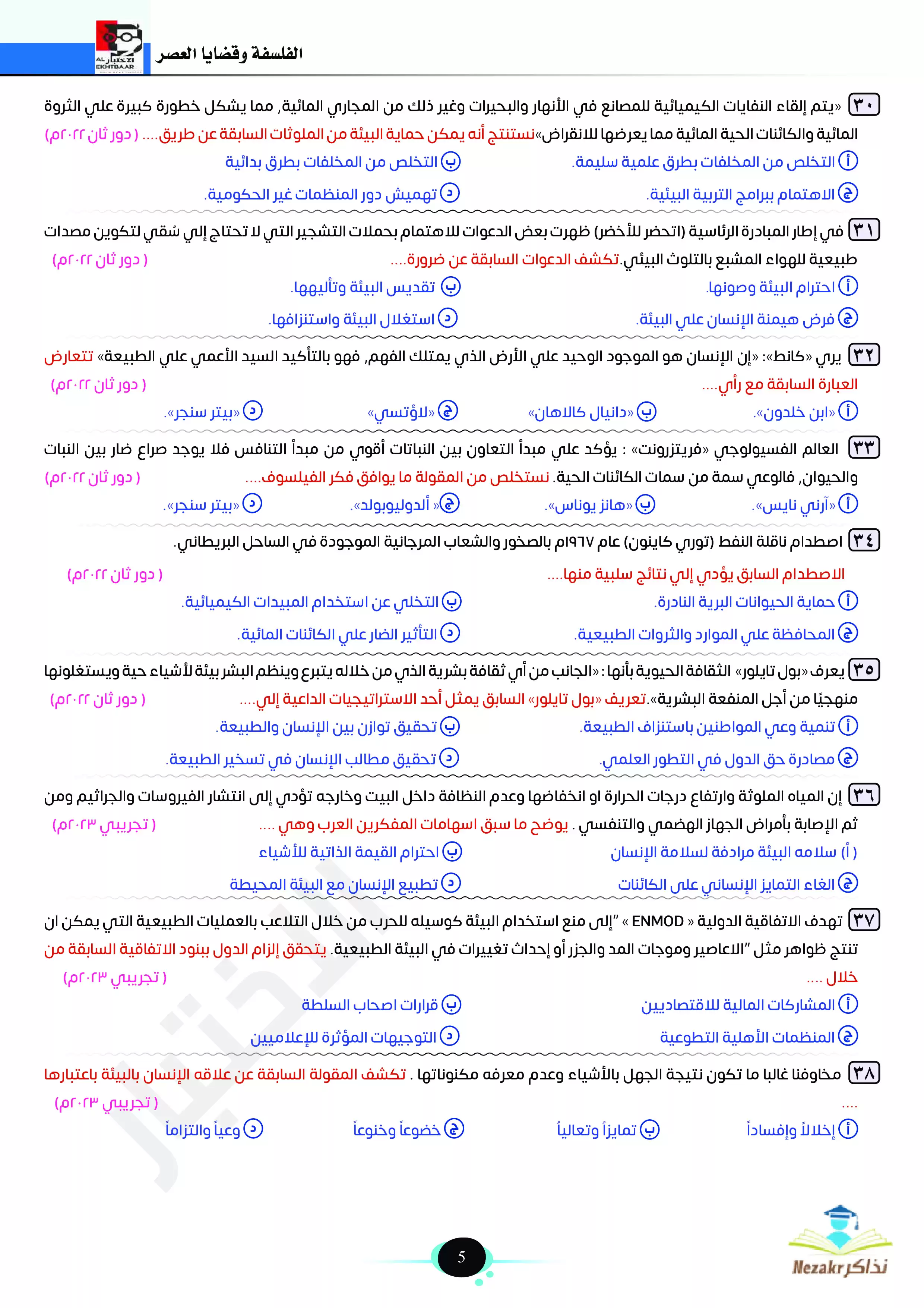 - أسئلة اختيارية في الفلسفة وقضايا العصر من امتحانات الثانوية العامة