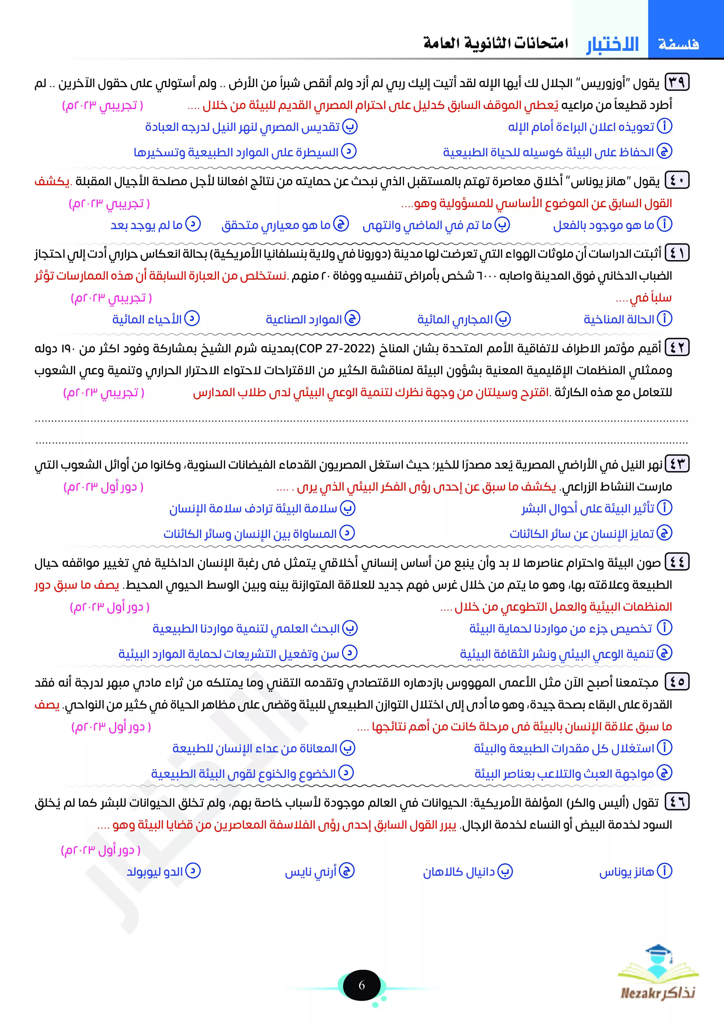 صفحة 6 من 47 صفحة من ملف: أسئلة امتحانات سابقة لمادة الفلسفة والمنطق للصف الثالث الثانوي - Nezakr