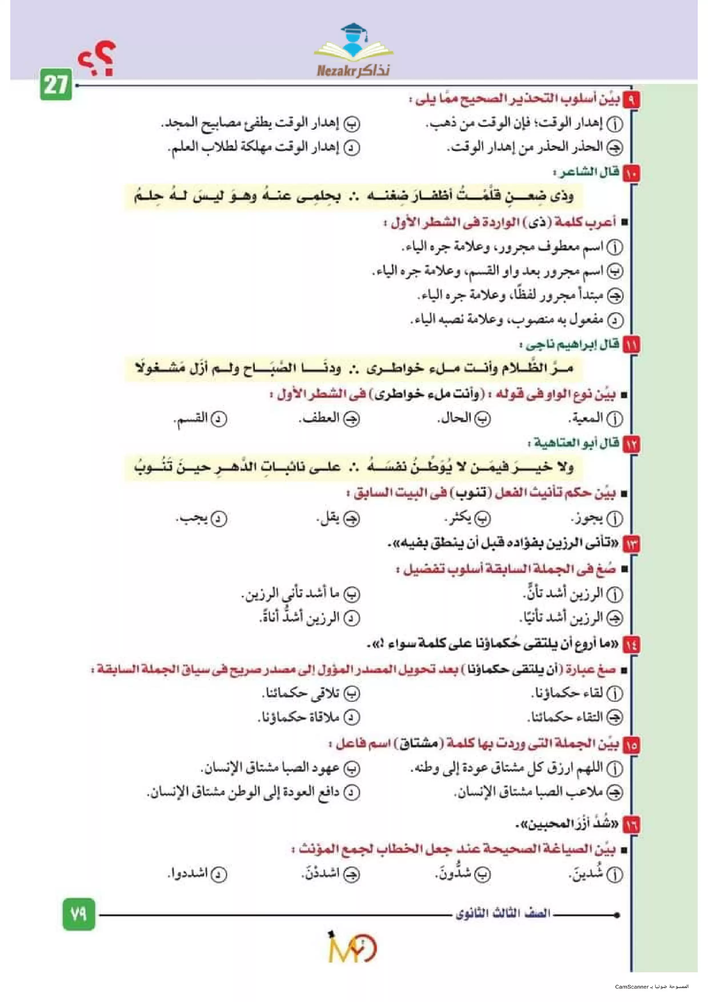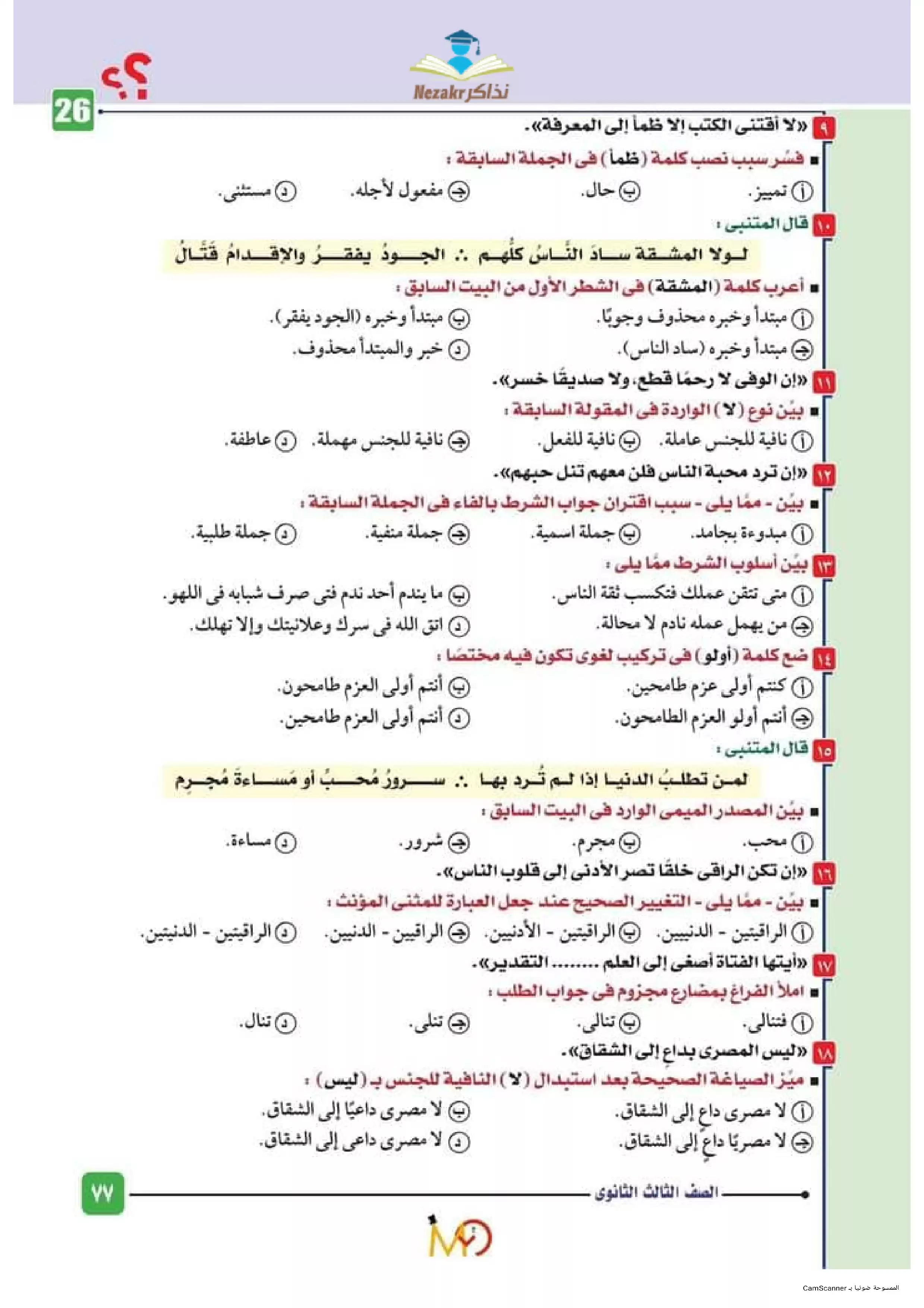 بيانات الملف: (بنك أسئلة النحو من امتحانات الوزارة للثانوية العامة - Nezakr)