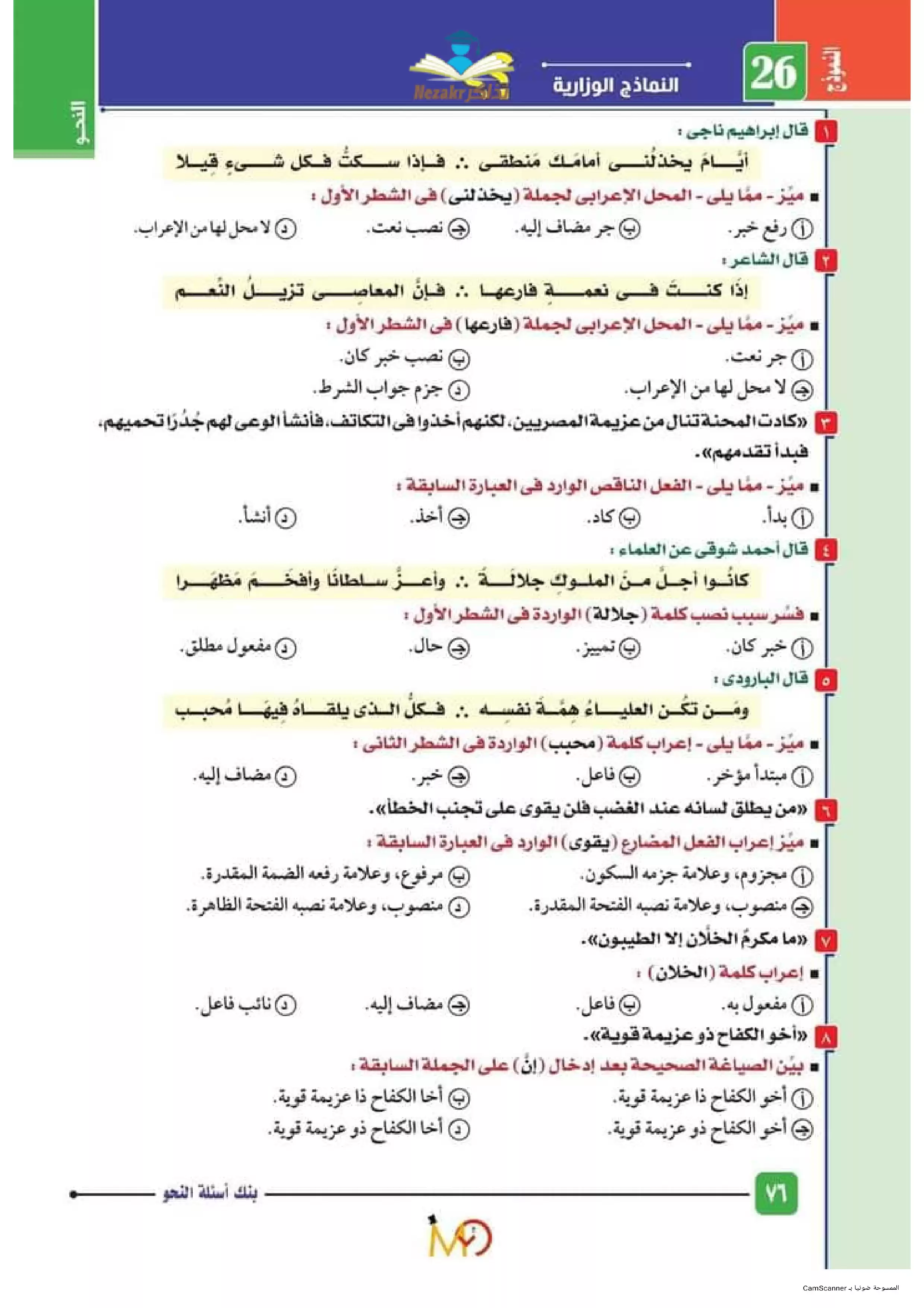 بنك أسئلة النحو من امتحانات الوزارة للثانوية العامة - Nezakr