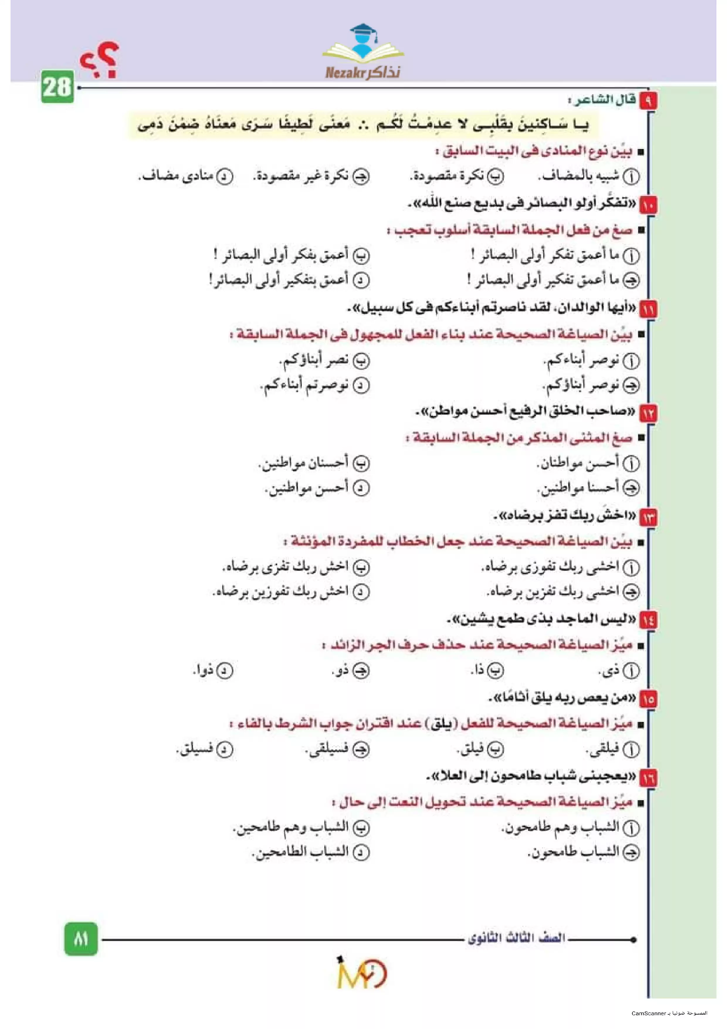 صفحة 3 من 15 صفحة من ملف: بنك أسئلة النحو من امتحانات الوزارة للثانوية العامة - Nezakr