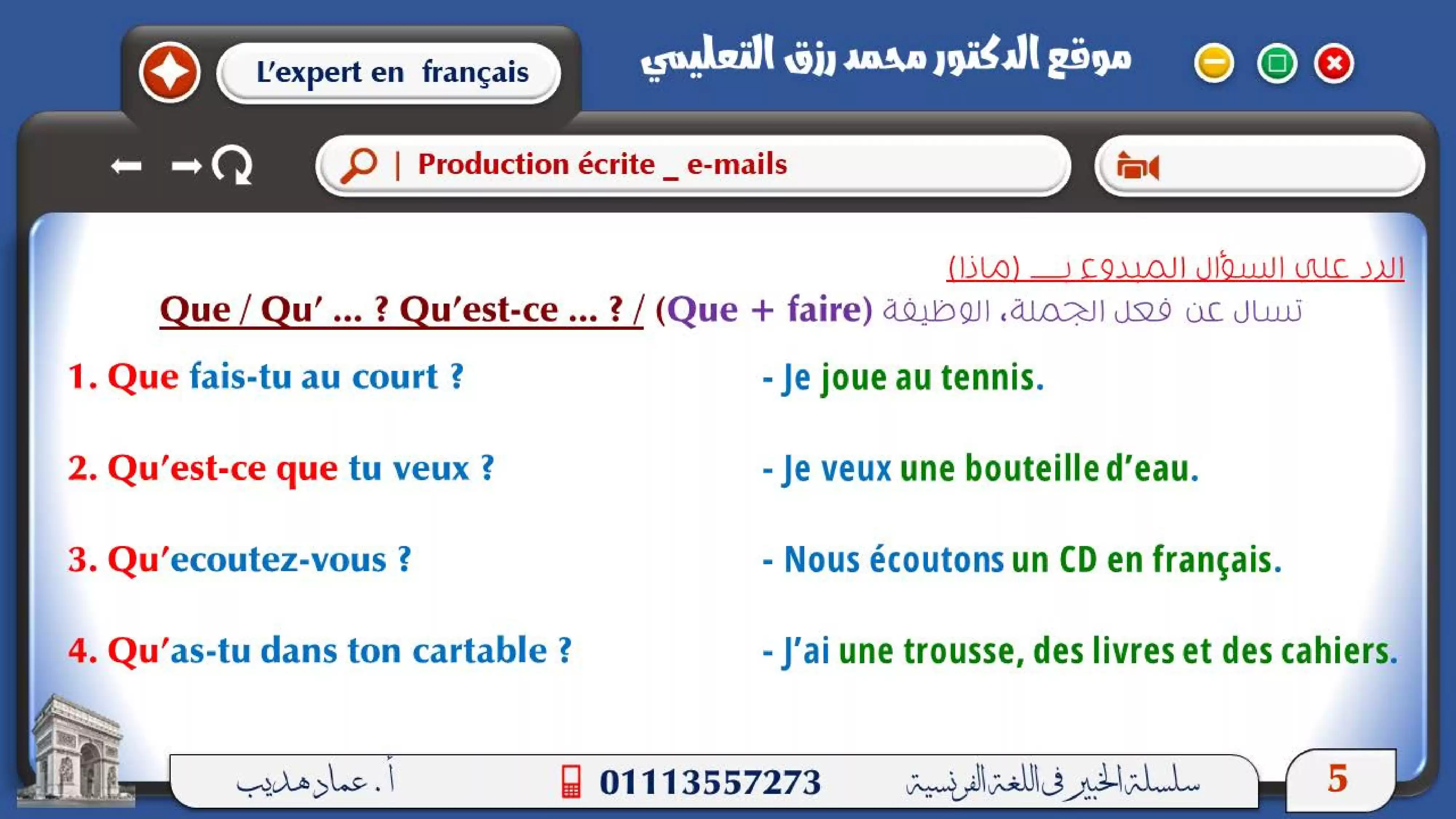 ازاي تحل السؤال المقالي في اللغة الفرنسية سواء ايميل او الموضوع مع مسيو عماد هديب