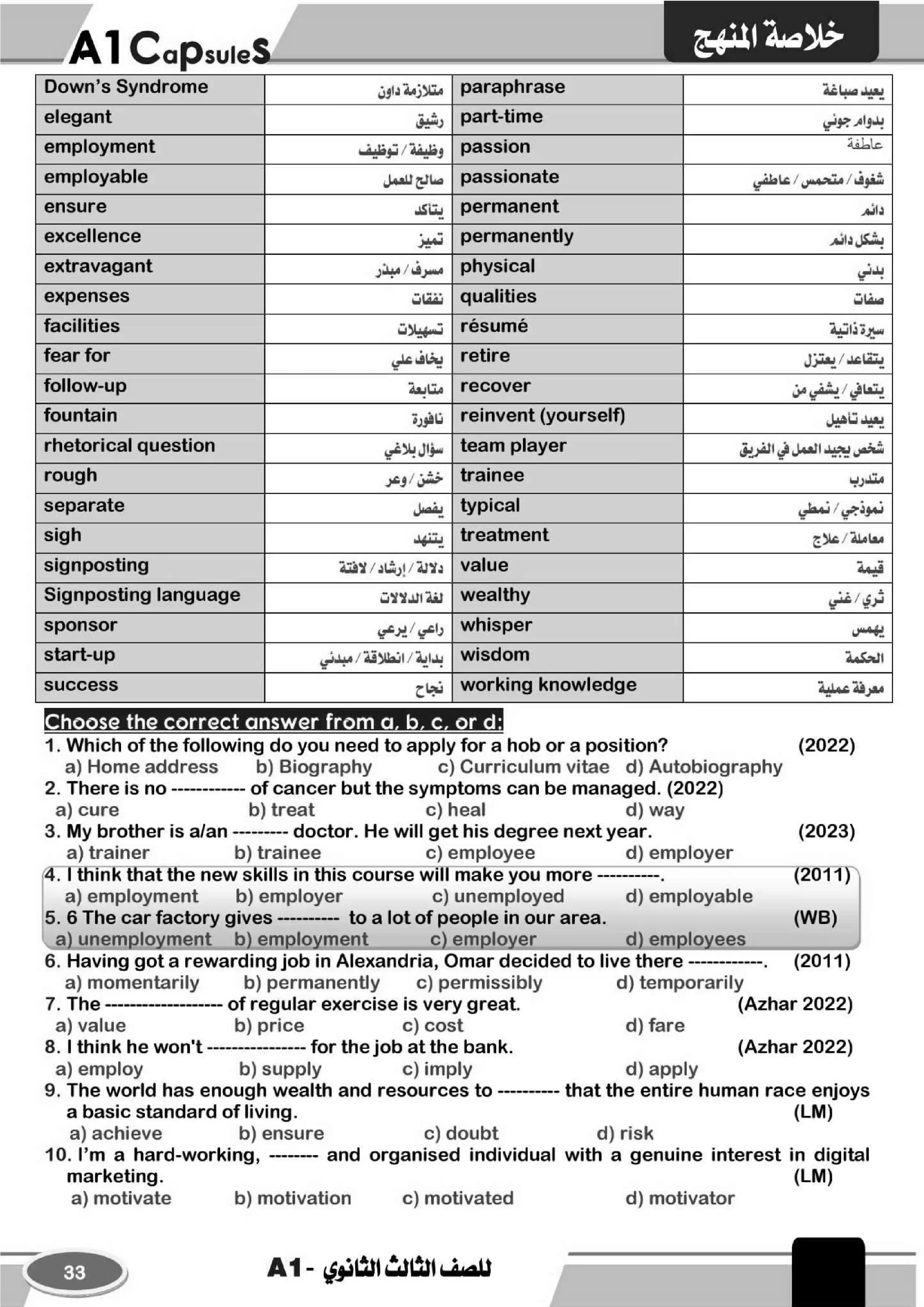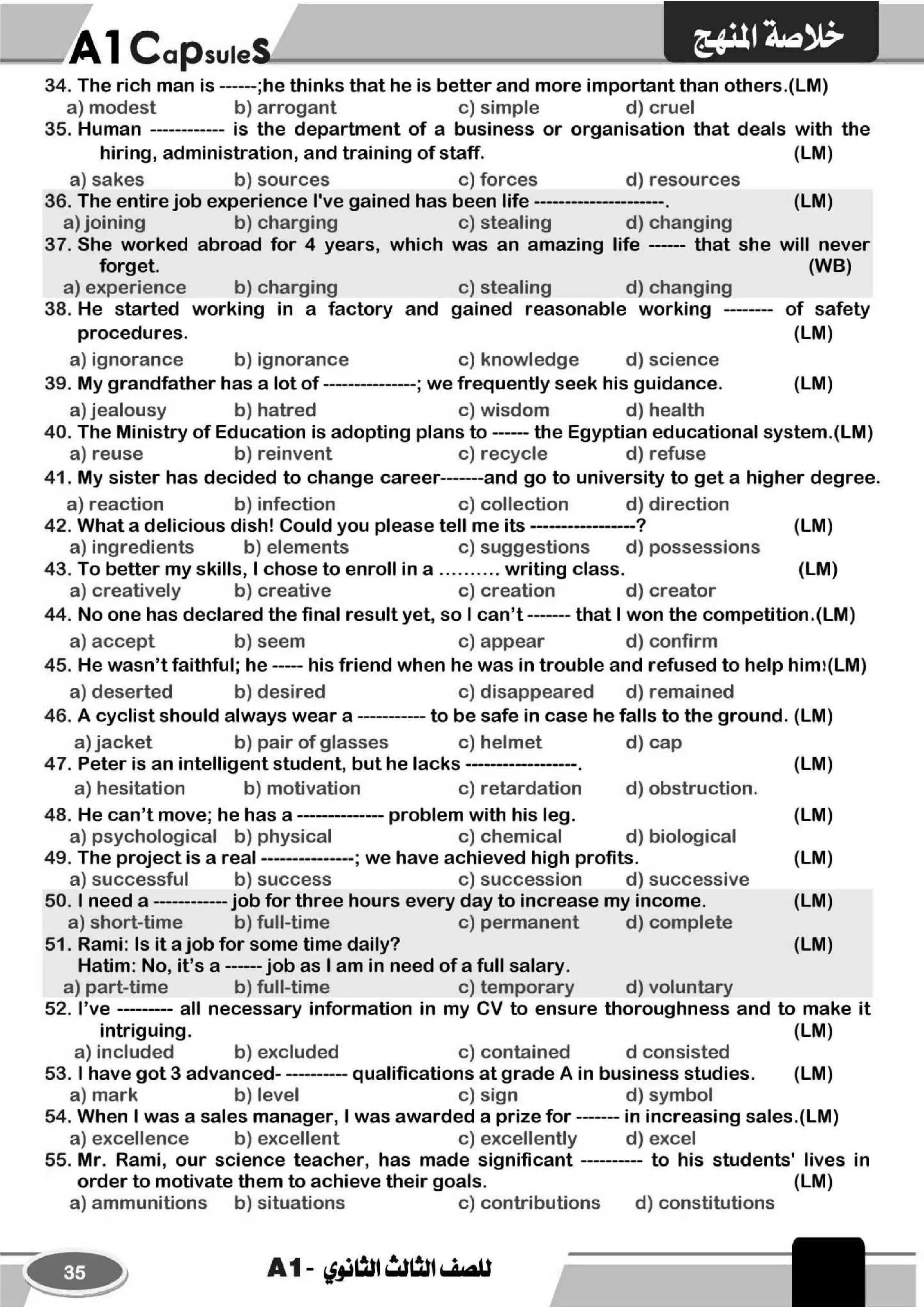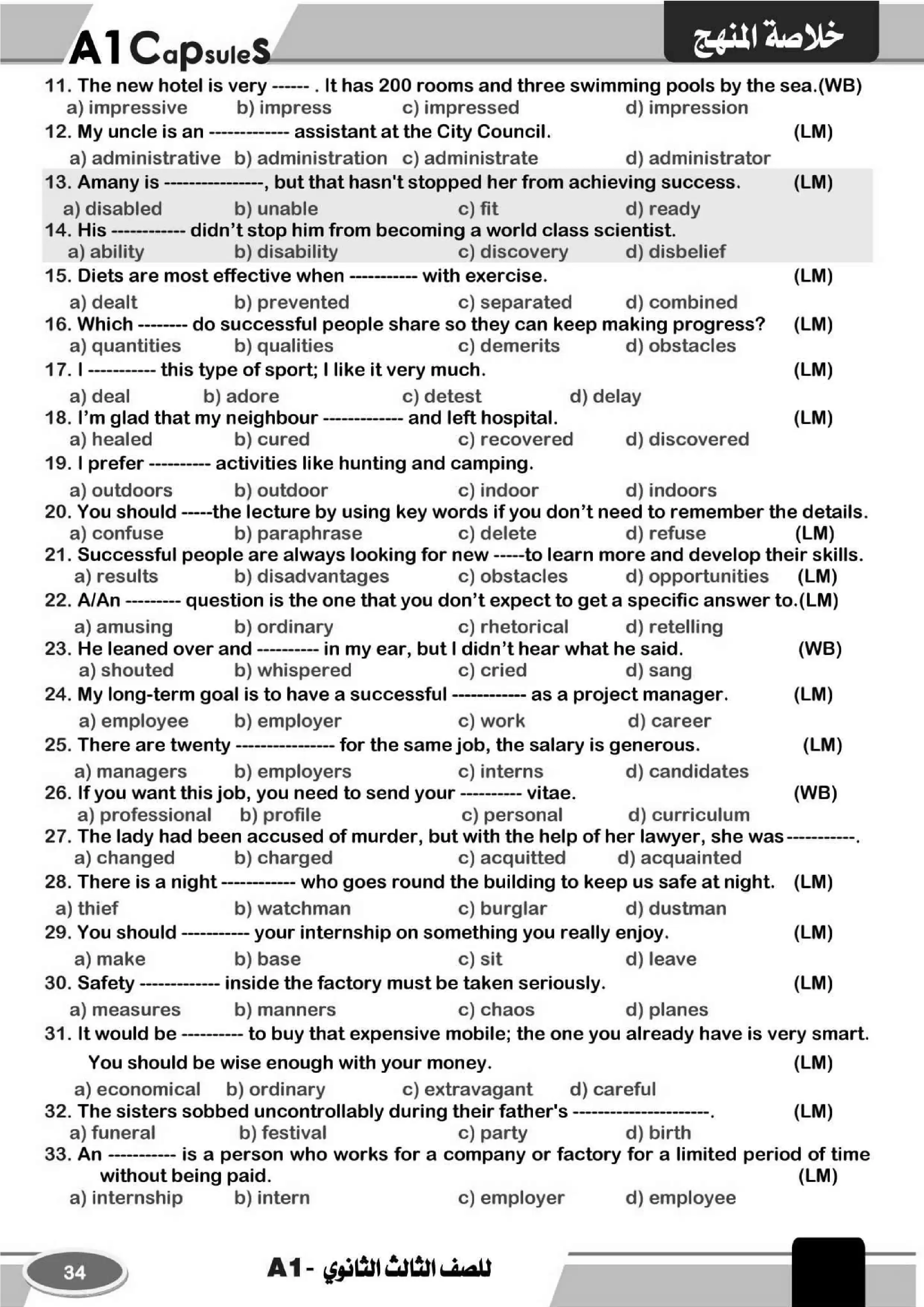 اهم أسئلة اللغة الانجليزية للوحدات من 7 إلى 12 مقدمة من سلسلة A1 في المراجعة النهائية للغة الإنجليزية للصف الثالث الثانوي