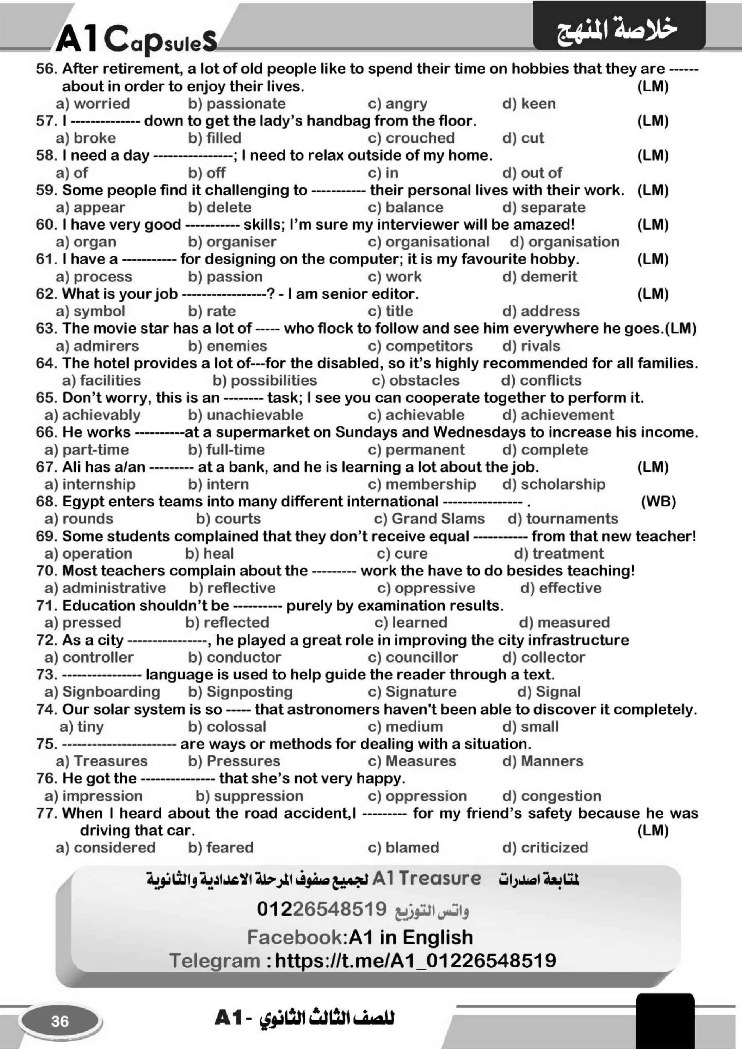 نقدم لكم المزيد من المحتوى من إعداد سلسلة A1 Treasure في اللغة الإنجليزية ومقدم إلى الصف الثالث الثانوي للإطلاع عليه أو تحميله.