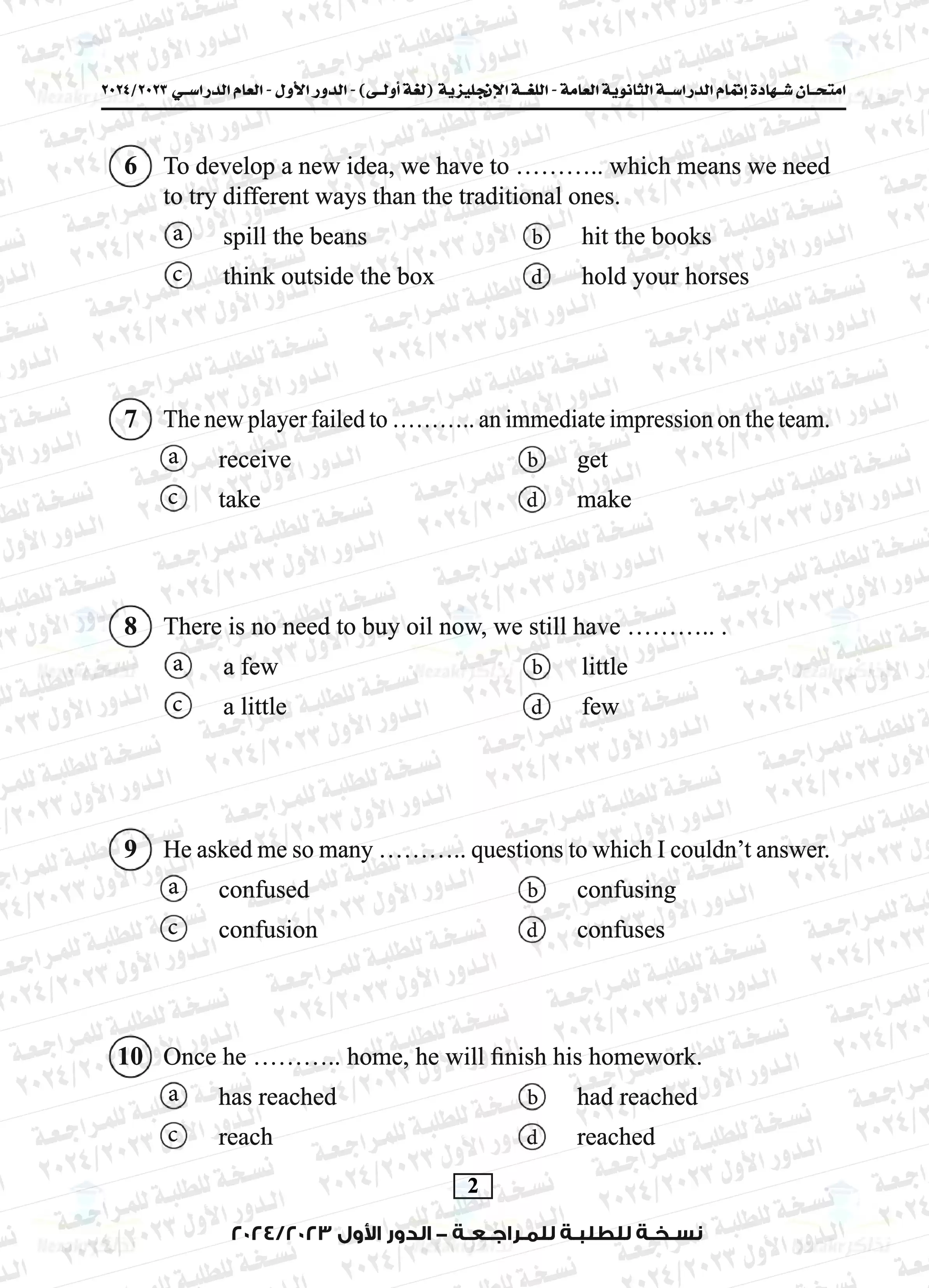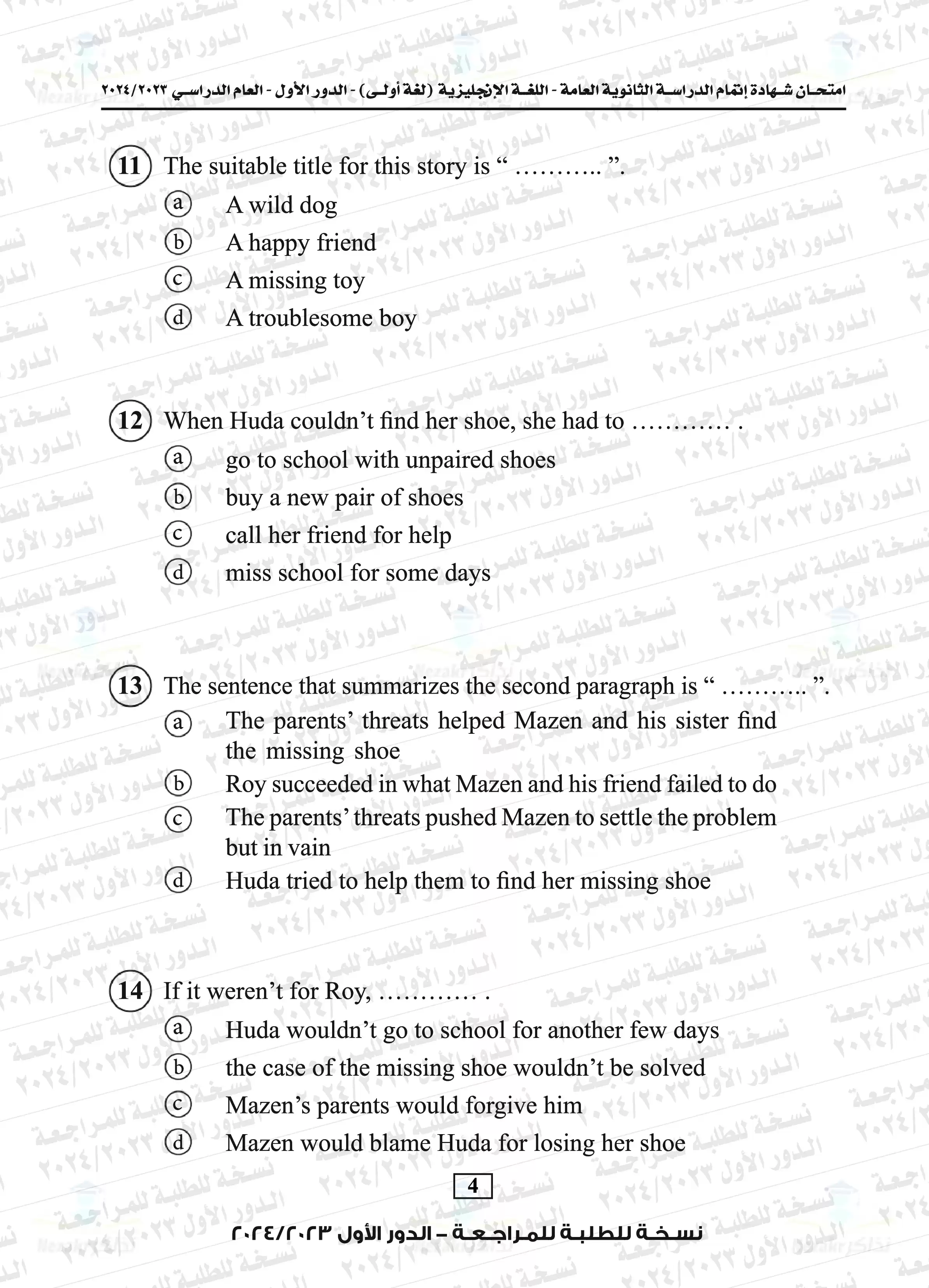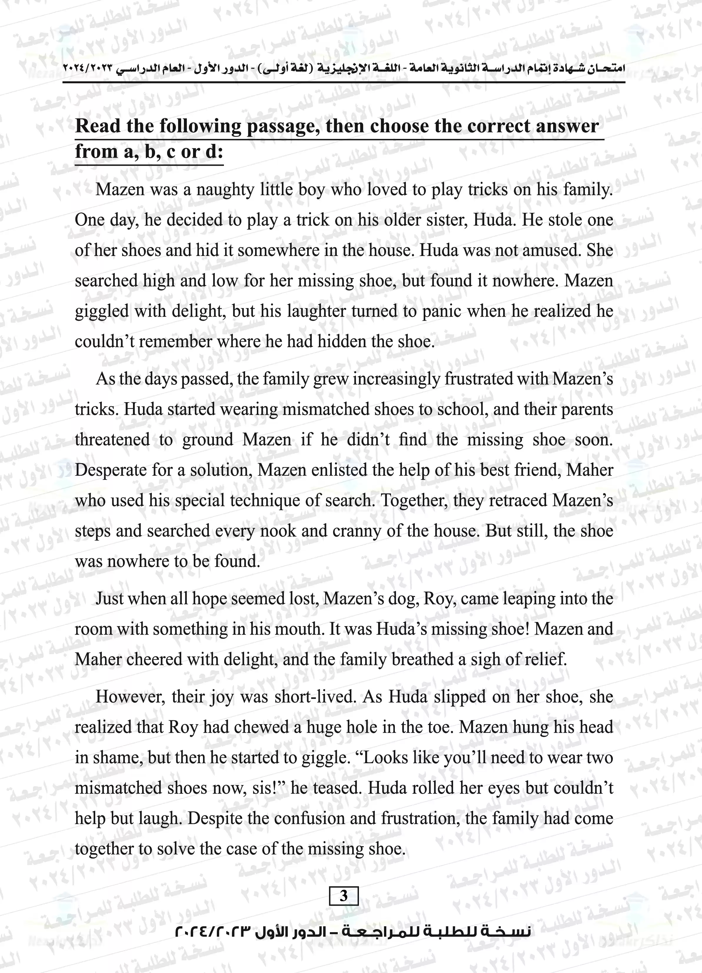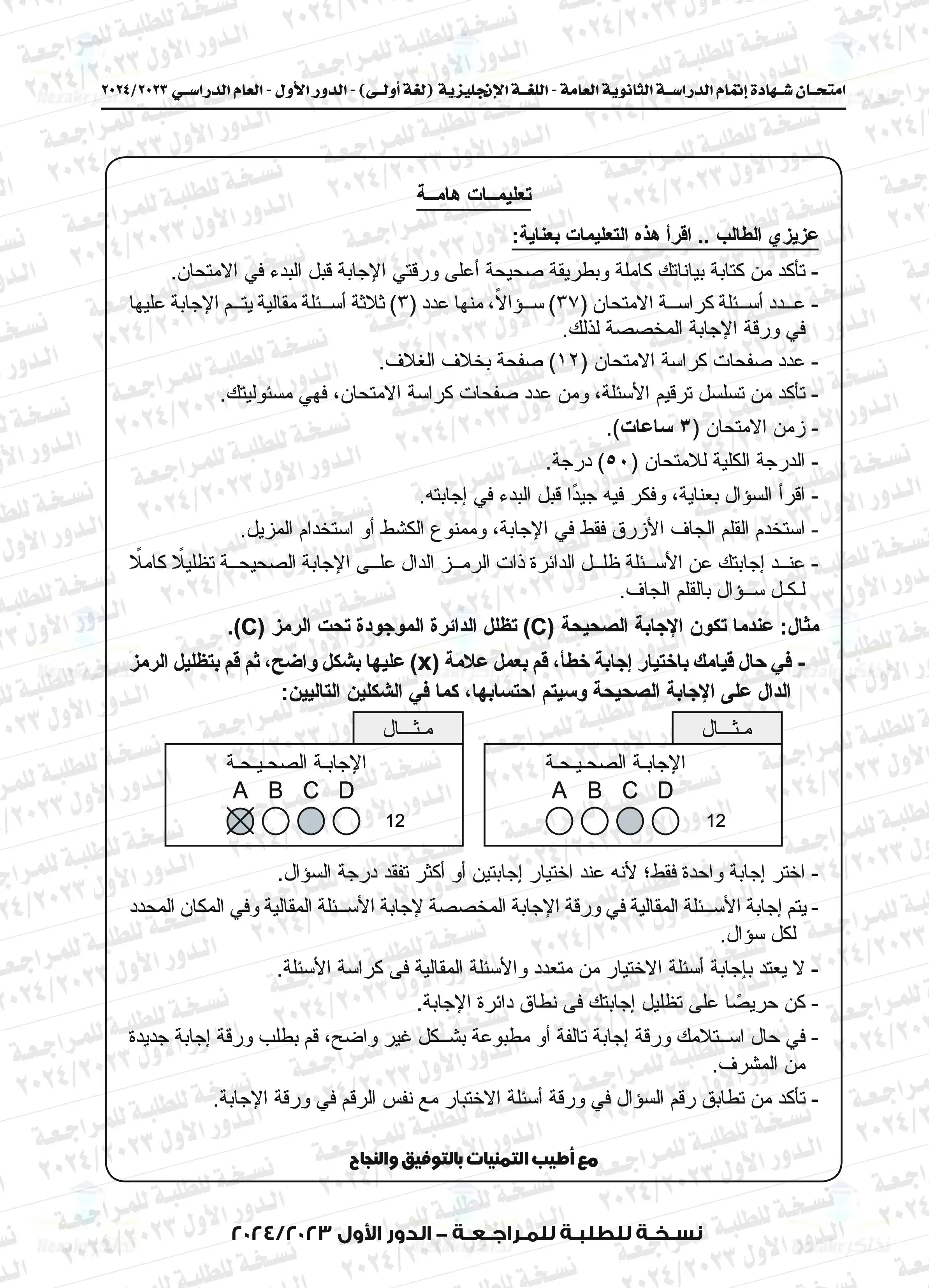 يتضمن المقال امتحان الانجليزي الخاص بالشهادة الثانوية العامة المصرية للدور الأول للعام الدراسي 2023-2024م، وهو امتحان يتزايد معدل البحث عليه نظراً لما تضمنه من أفكار مميزة، نضعه بين أيديكم بصيغة PDF وبجودة عالية ومميزة للتحميل مجاناً أو للتصفح أو الطباعة.