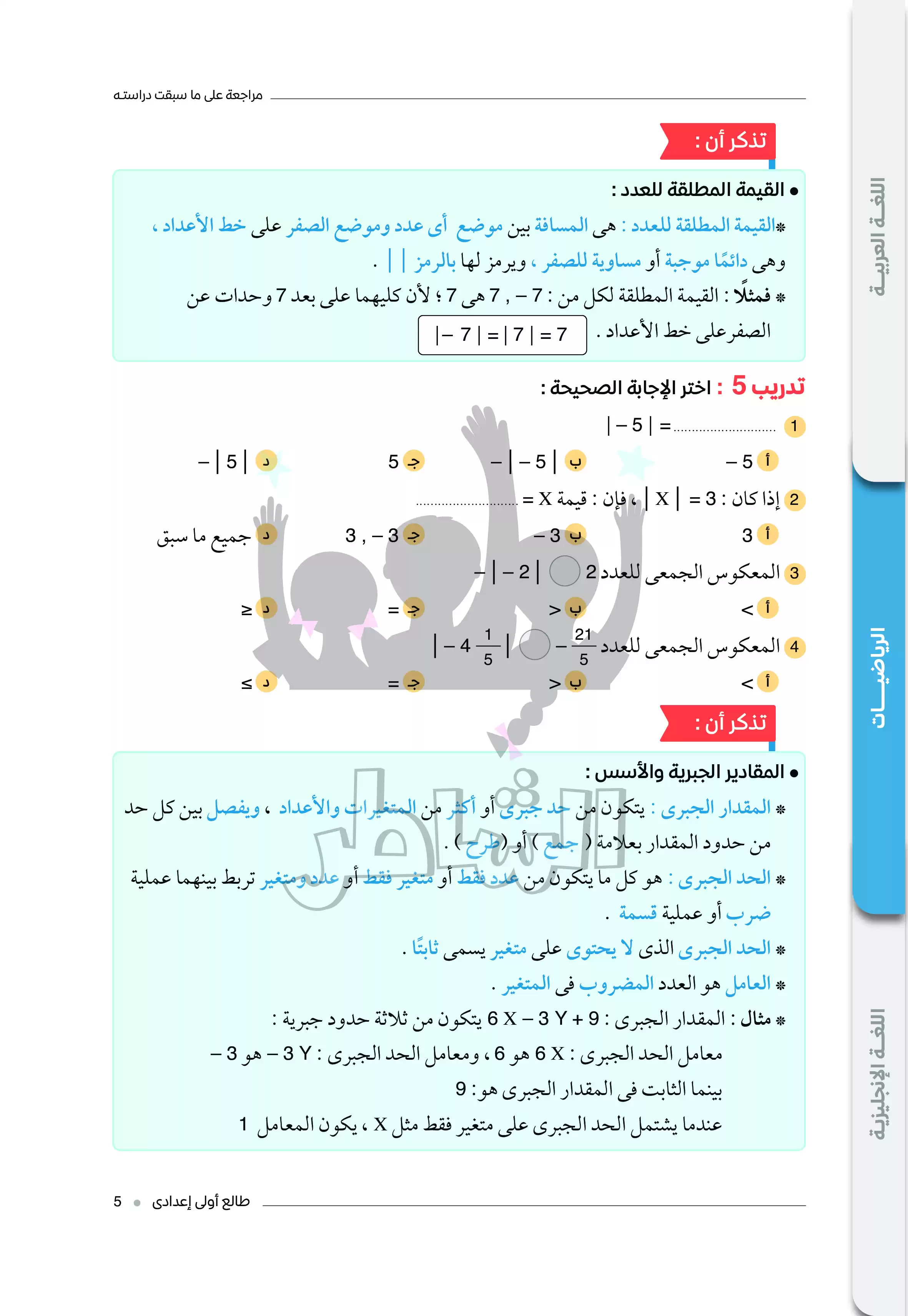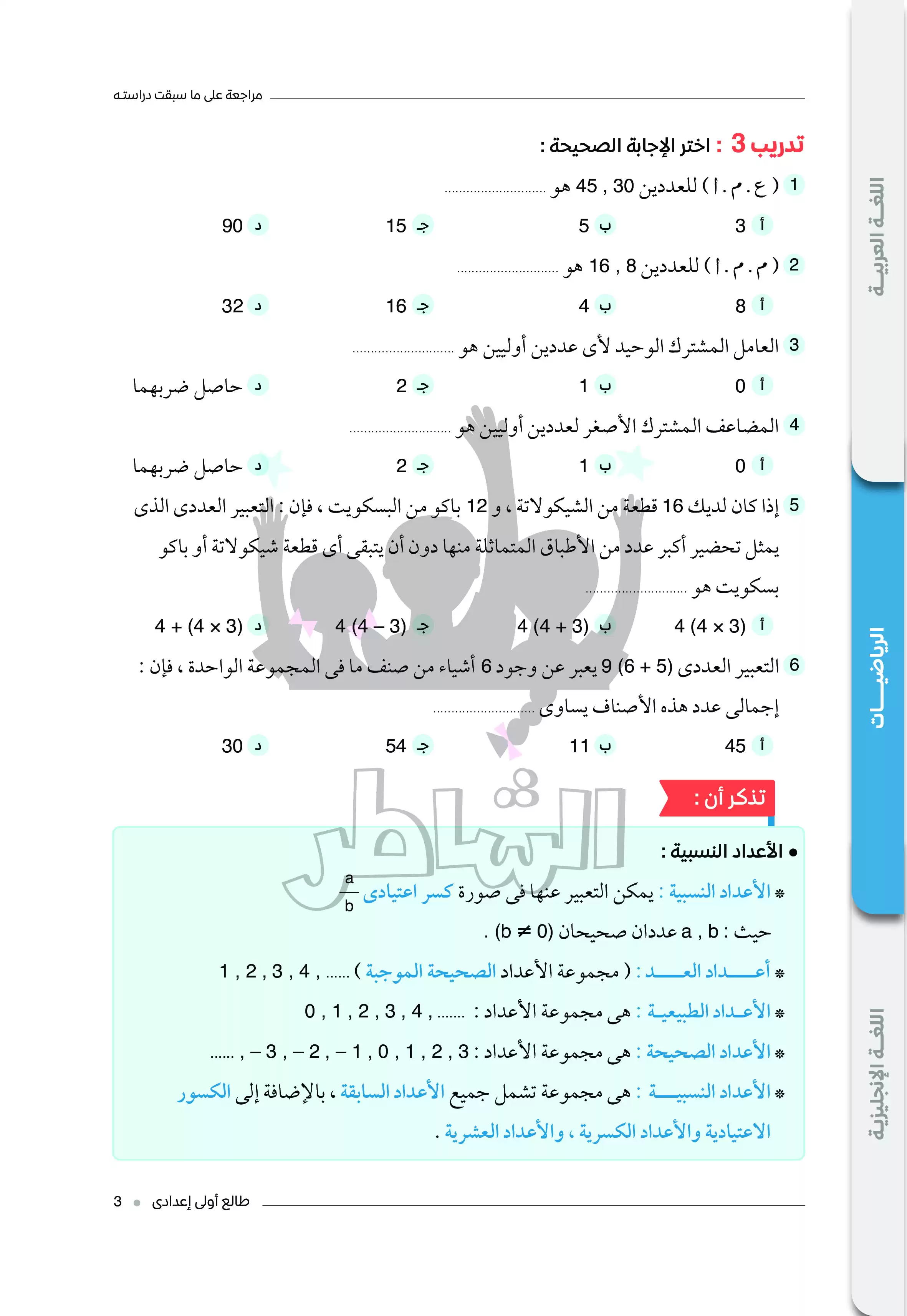 مراجعة رياضيات هامة لطلاب الصف الأول الإعدادي المنهج الجديد