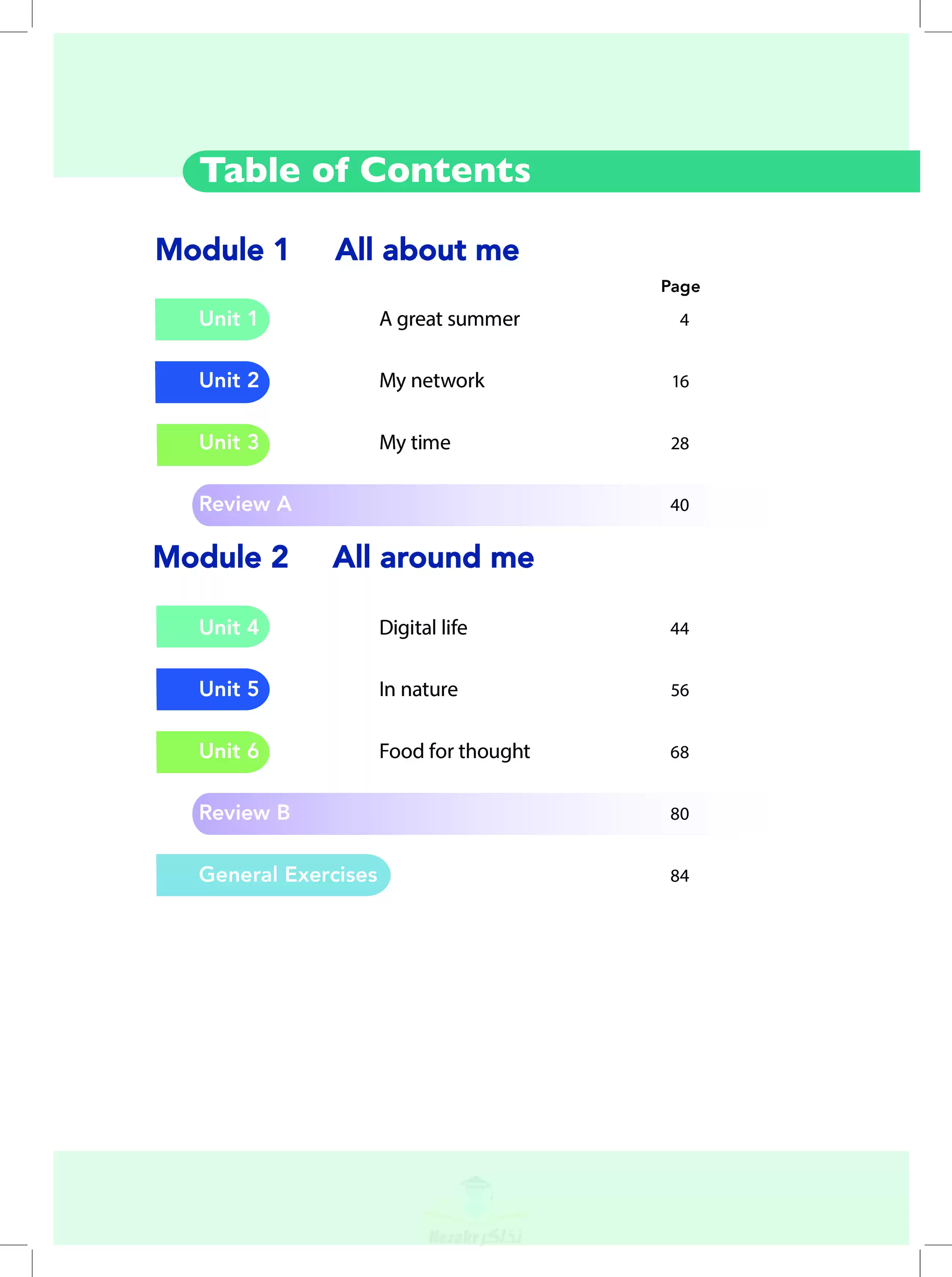 ويحتوي منهج اللغة الإنجليزية الجديد في الترم الأول لأولى إعدادي 6 وحدات، وهم كالآتي: