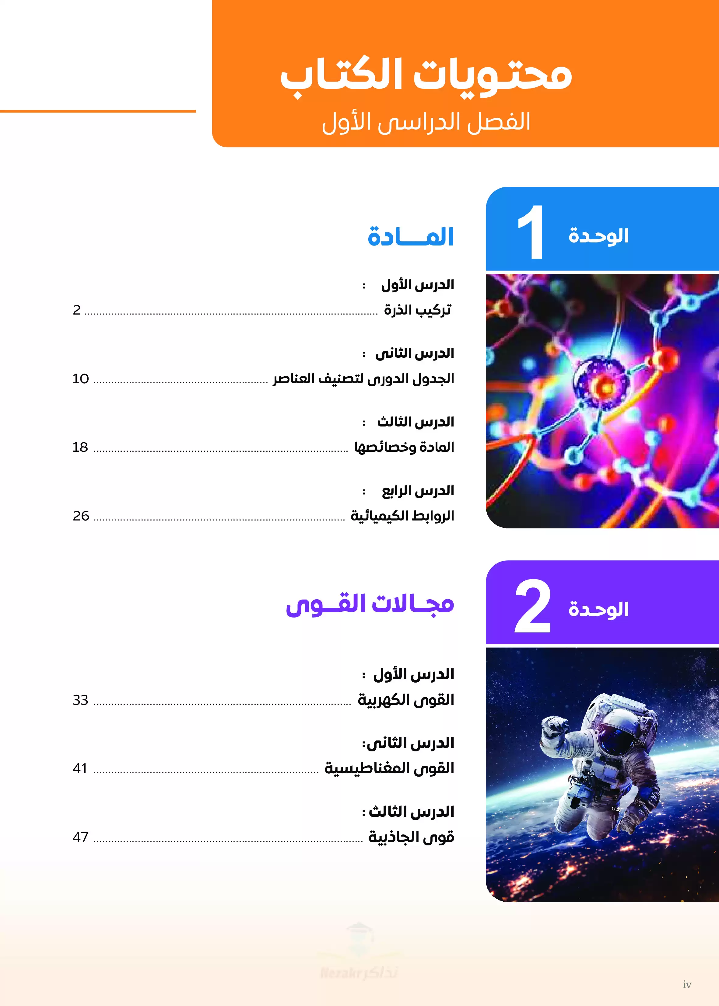 ويحتوي منهج العلوم الجديد في الترم الأول لأولى إعدادي 4 وحدات أساسية، وهم كالآتي: