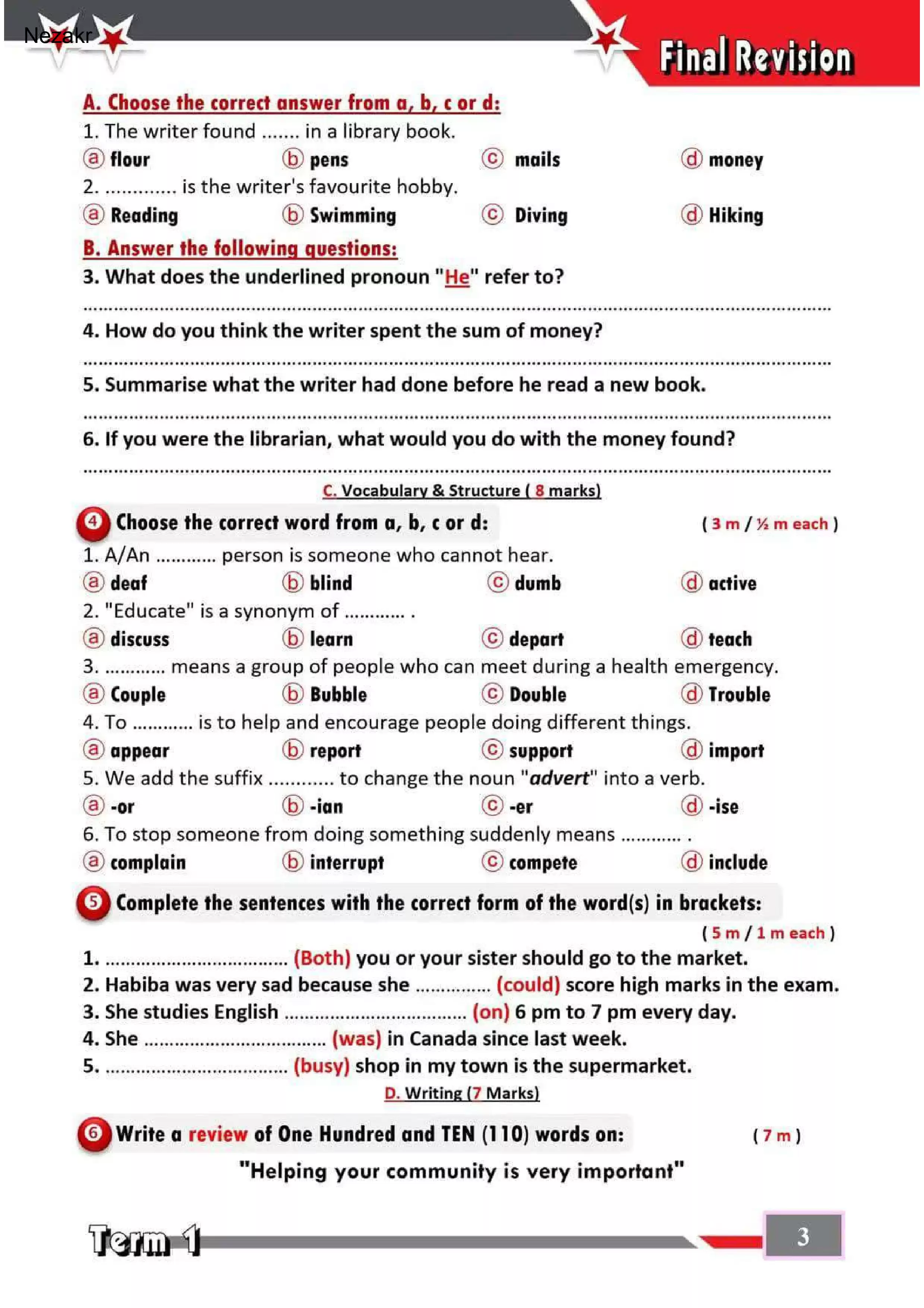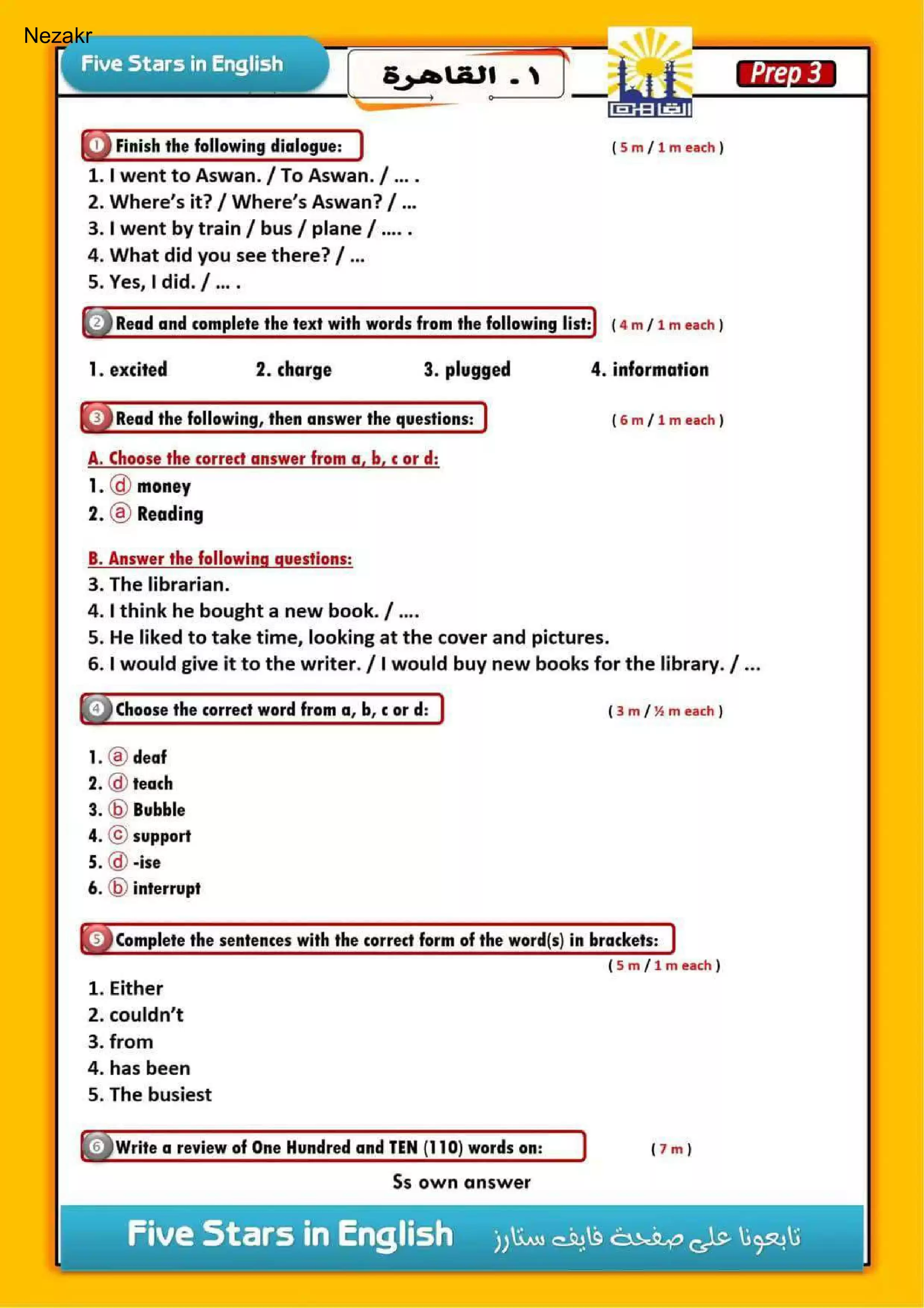 | بيانات الملف: (امتحان محافظة القاهرة في اللغة الإنجليزية للصف الثالث الإعدادي الترم الأول 2025 - Nezakr) | |
