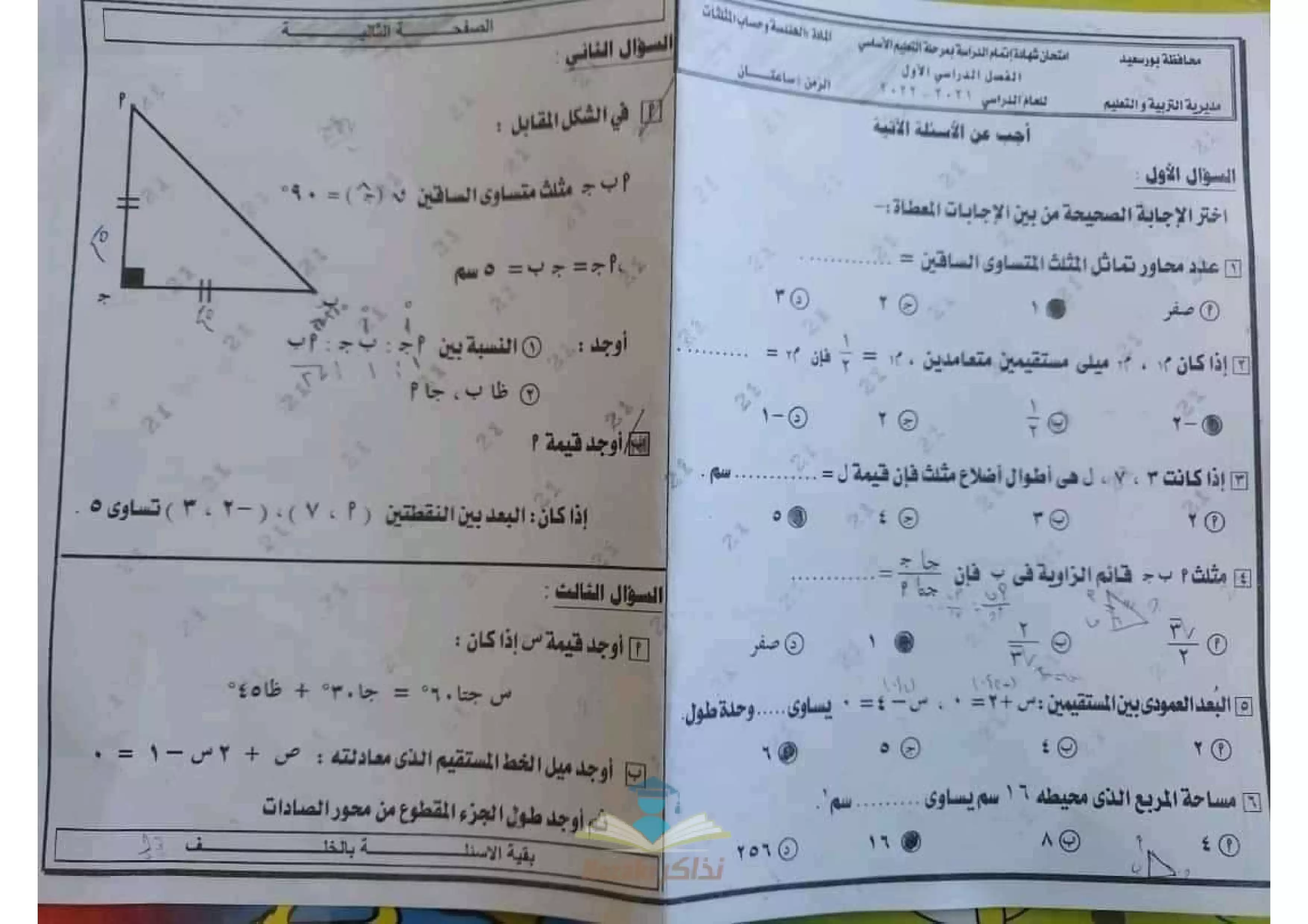 تجميع امتحانات الجبر والهندسة للشهادة الإعدادية للفصل الدراسي الأول 2022 بجميع المحافظات