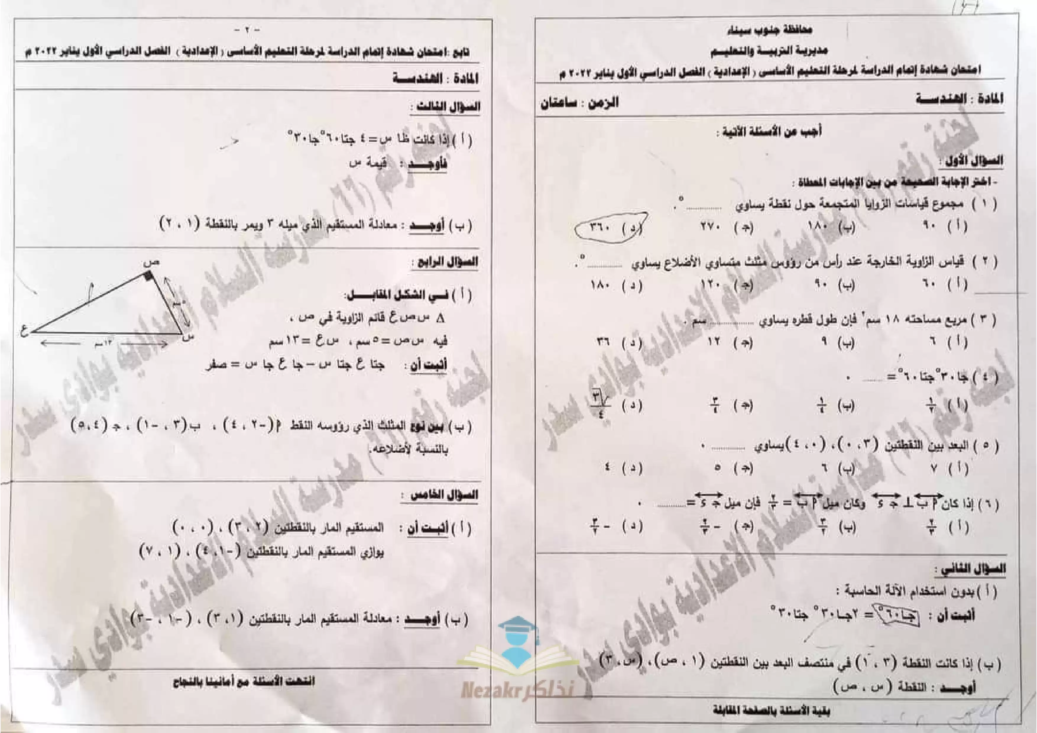 • امتحان الشهادة الإعدادية في الهندسة الترم الأول 2022 بجميع المحافظات