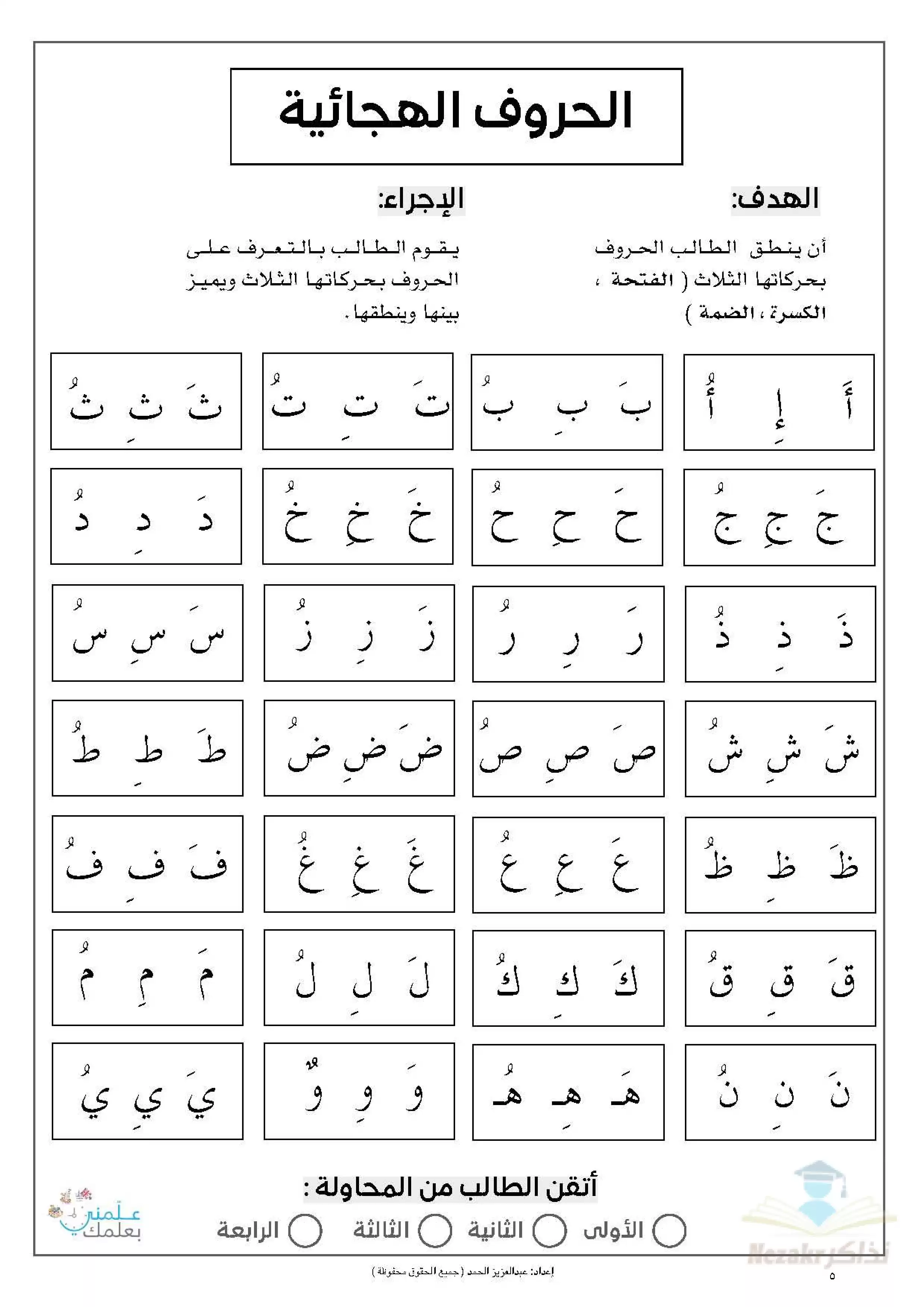 - علاج مشكلة عدم تفريق التلميذ بين الحروف المختلفة.