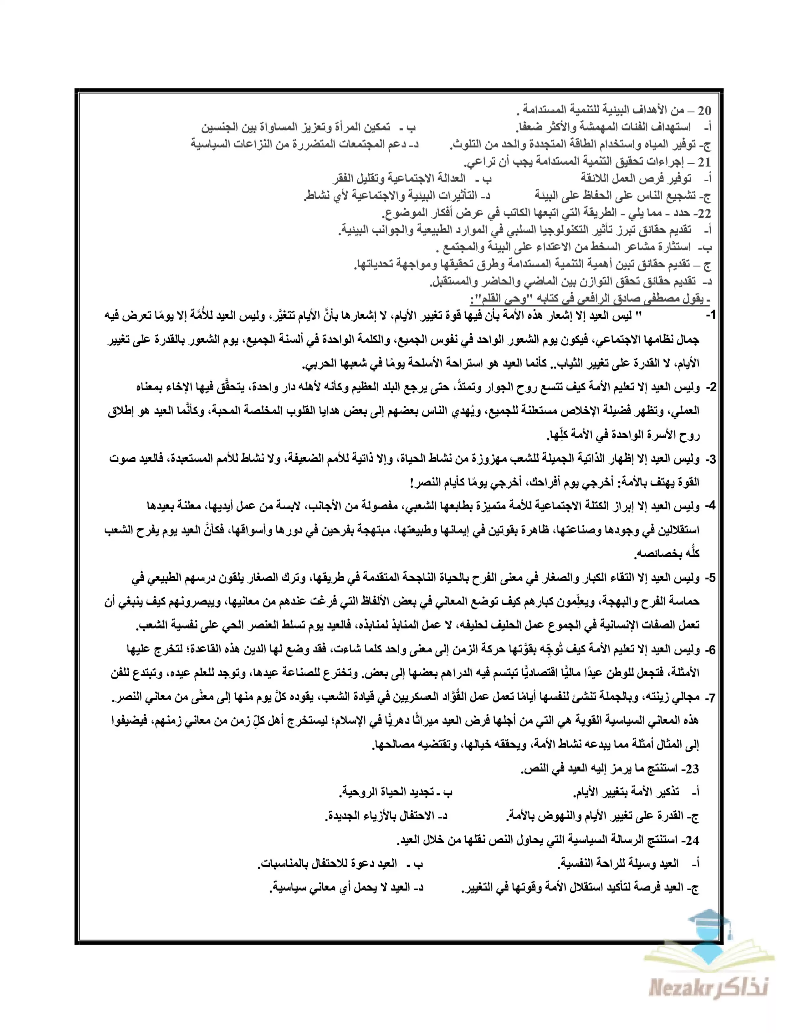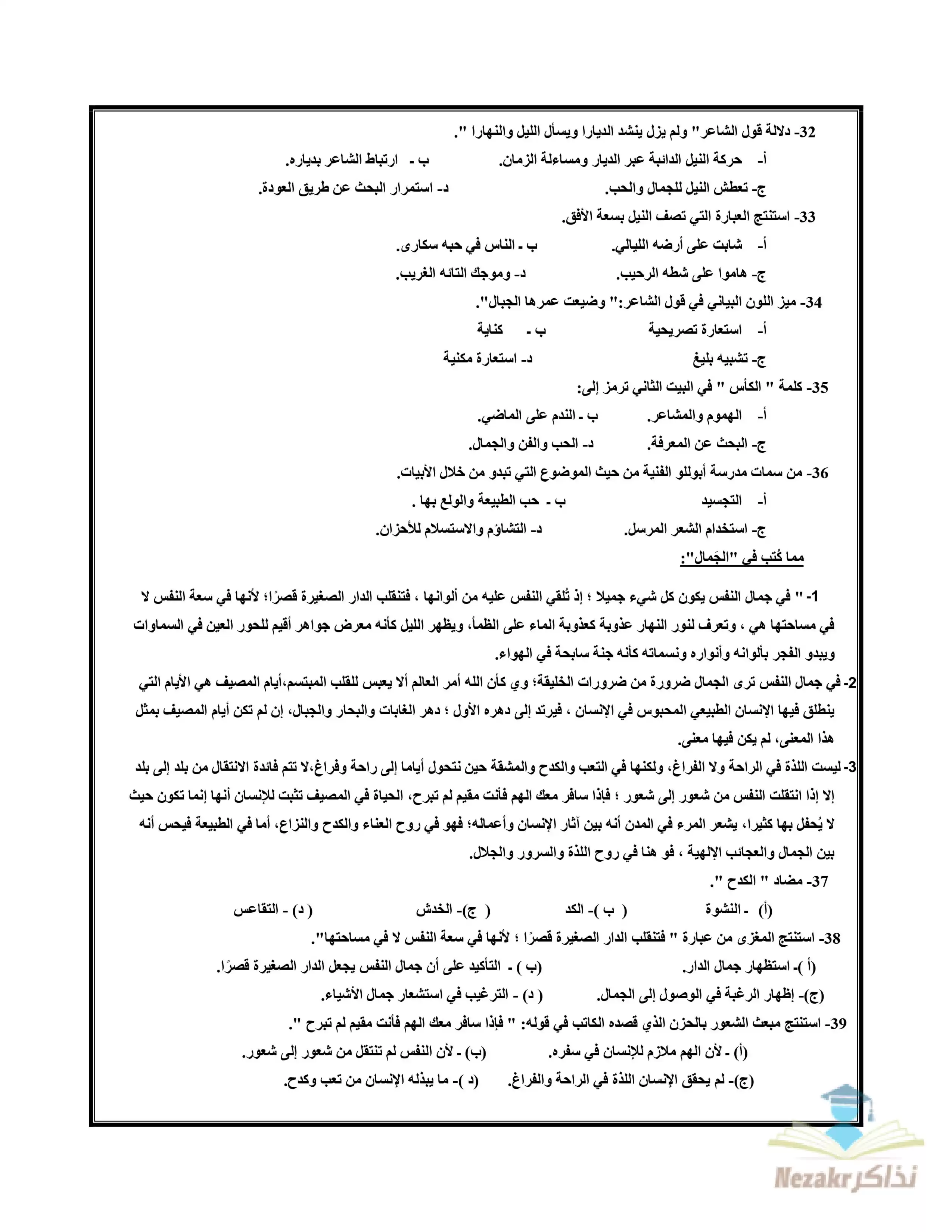 | بيانات الملف: (نماذج الوزارة الاسترشادية في امتحان اللغة العربية للصف الثالث الثانوي 2025 - Nezakr) | |