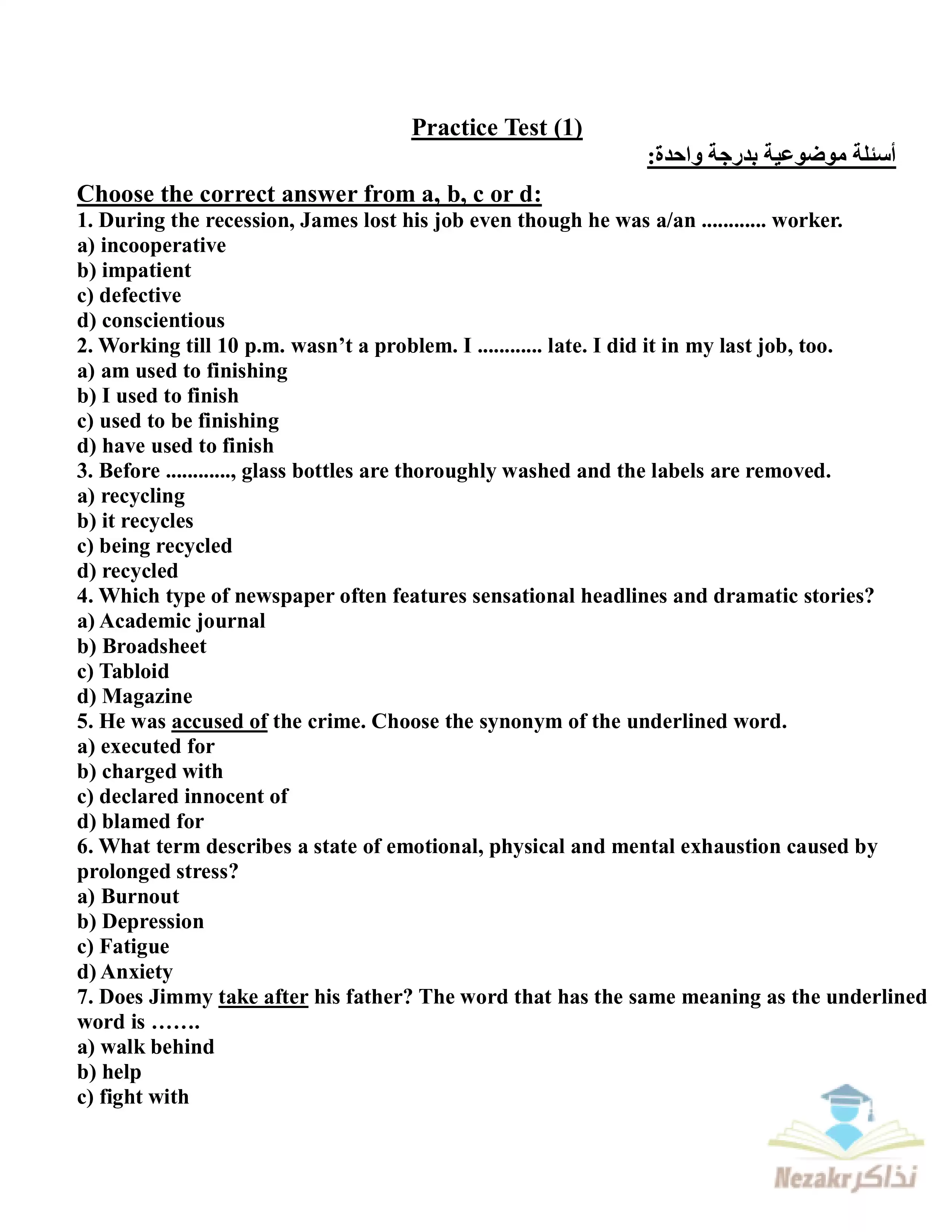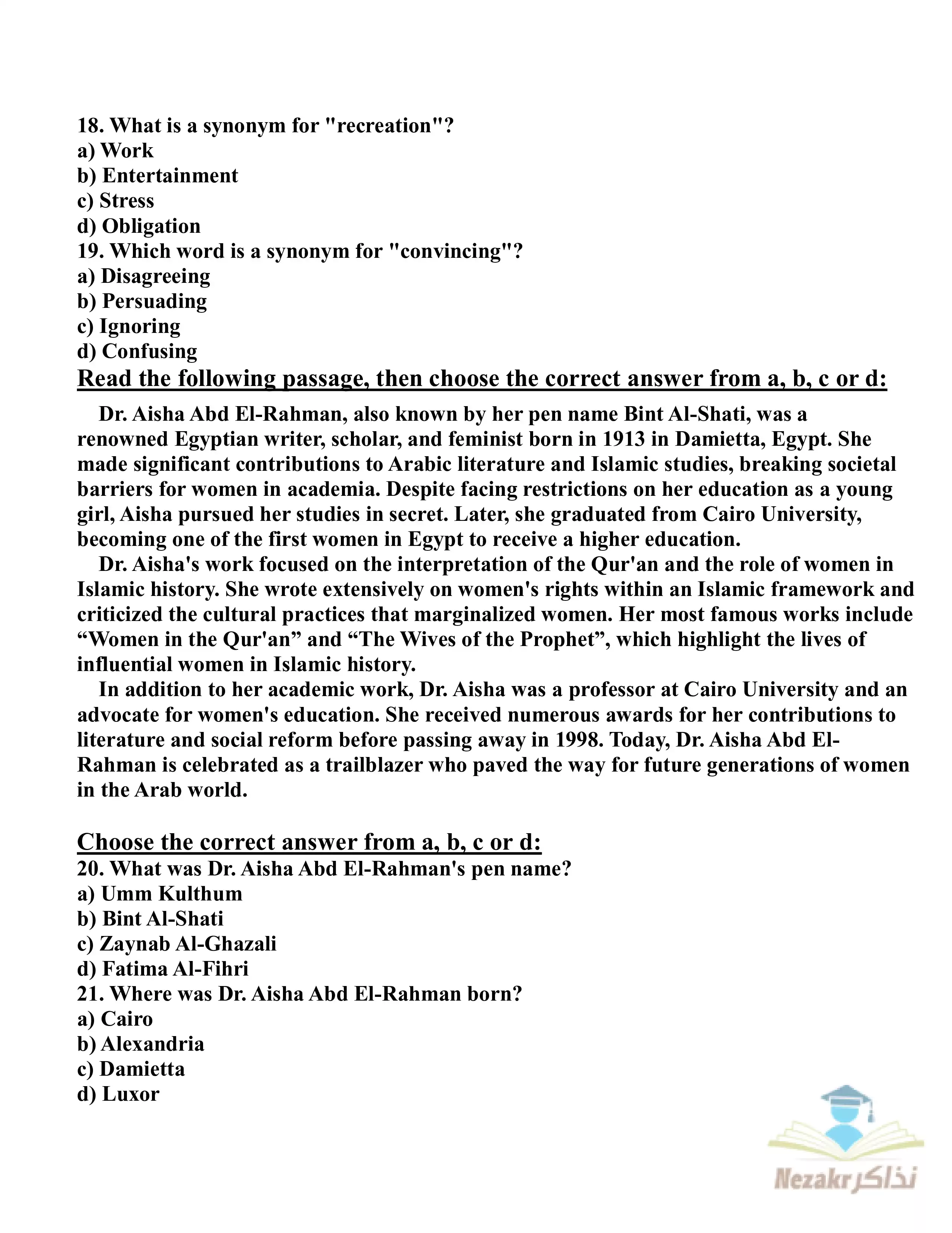 بيانات الملف: (نماذج الوزارة الاسترشادية في امتحان اللغة الإنجليزية للصف الثالث الثانوي 2025 - Nezakr)