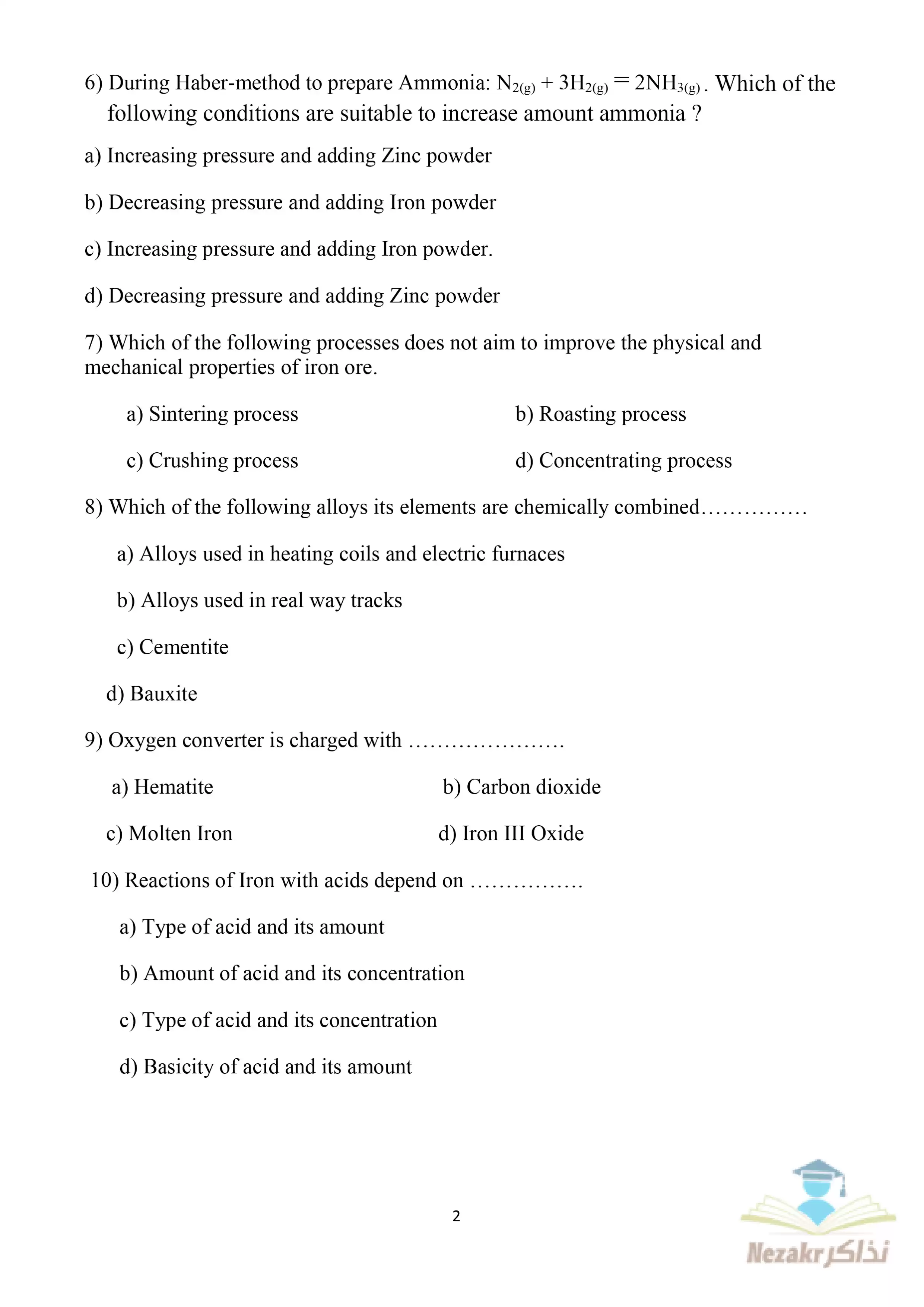 صفحة 2 من 10 صفحة من ملف: النموذج الاسترشادي الثاني في Chemistry الكيمياء باللغة الإنجليزية للصف الثالث الثانوي 2025 - Nezakr