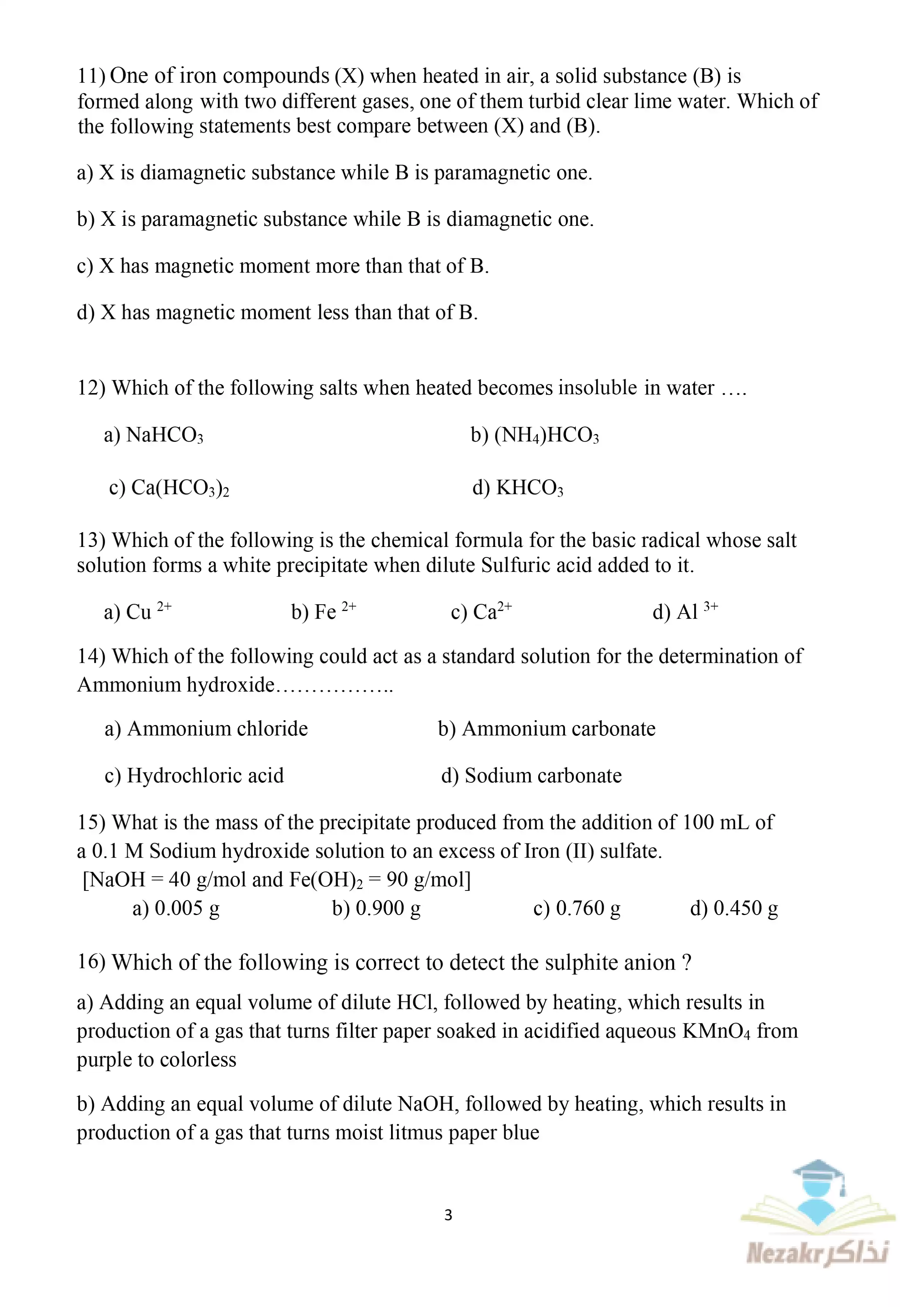 بيانات الملف: (النموذج الاسترشادي الثاني في Chemistry الكيمياء باللغة الإنجليزية للصف الثالث الثانوي 2025 - Nezakr)