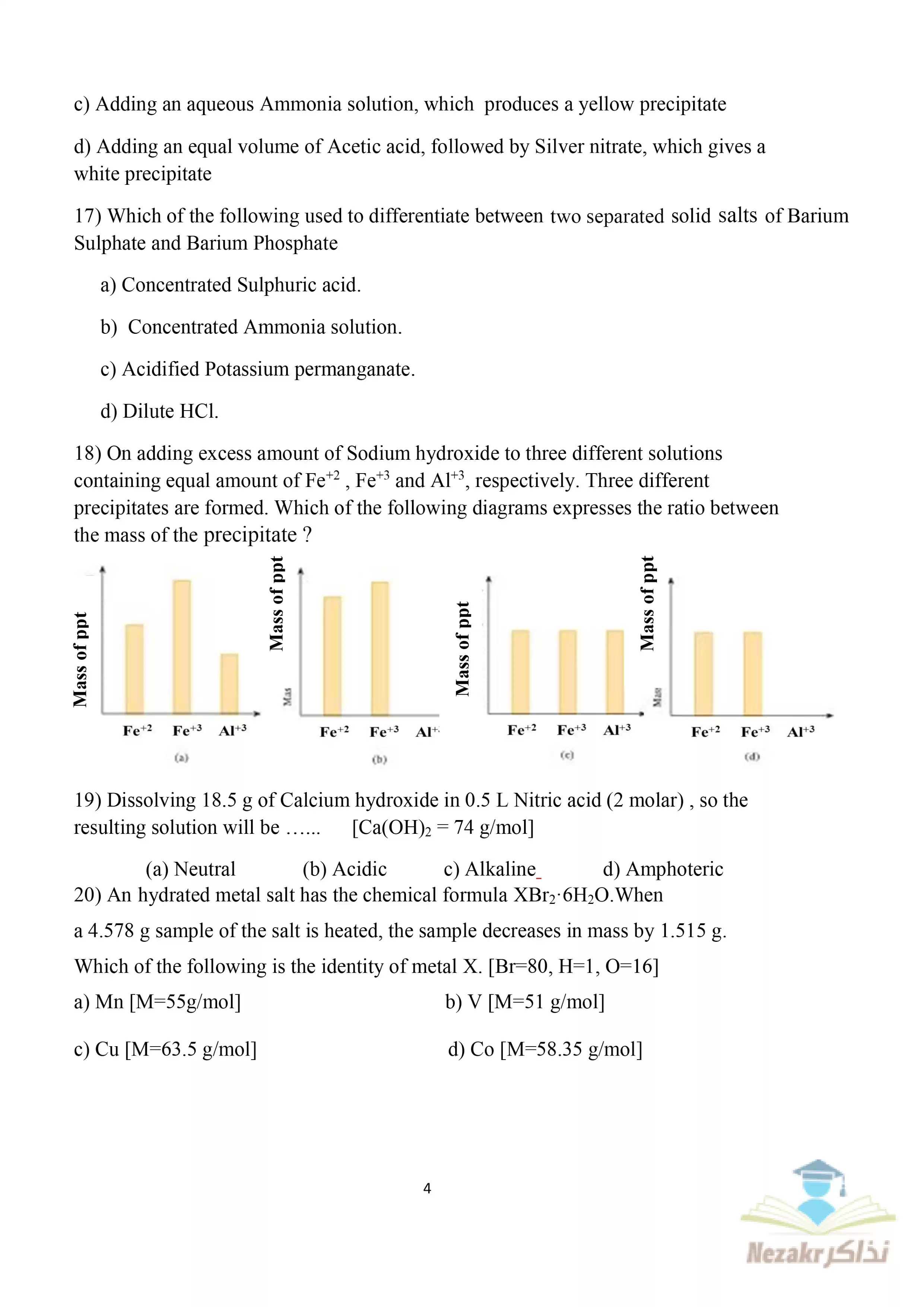 صفحة 4 من 10 صفحة من ملف: النموذج الاسترشادي الثاني في Chemistry الكيمياء باللغة الإنجليزية للصف الثالث الثانوي 2025 - Nezakr