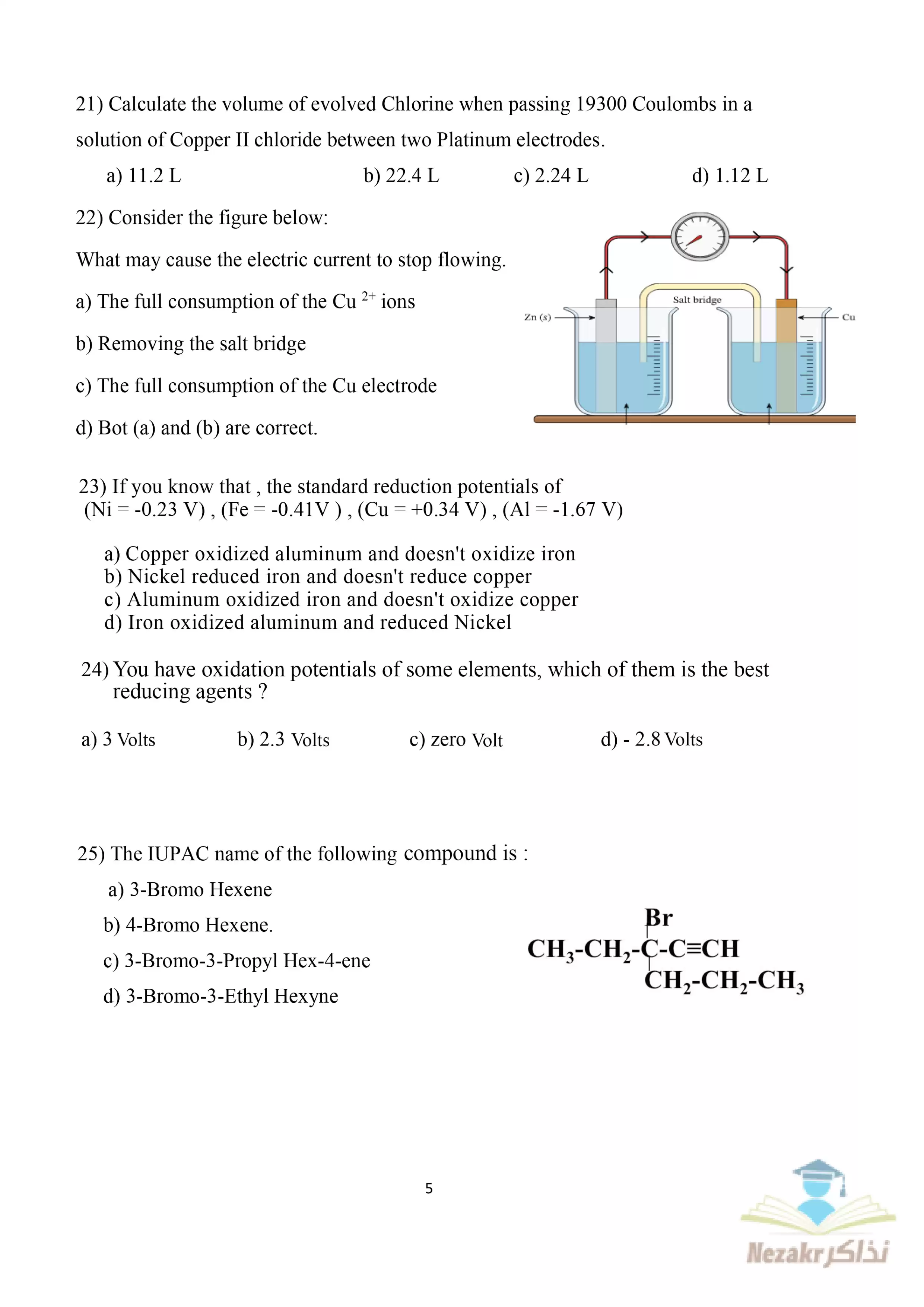 صفحة 5 من 10 صفحة من ملف: النموذج الاسترشادي الثاني في Chemistry الكيمياء باللغة الإنجليزية للصف الثالث الثانوي 2025 - Nezakr